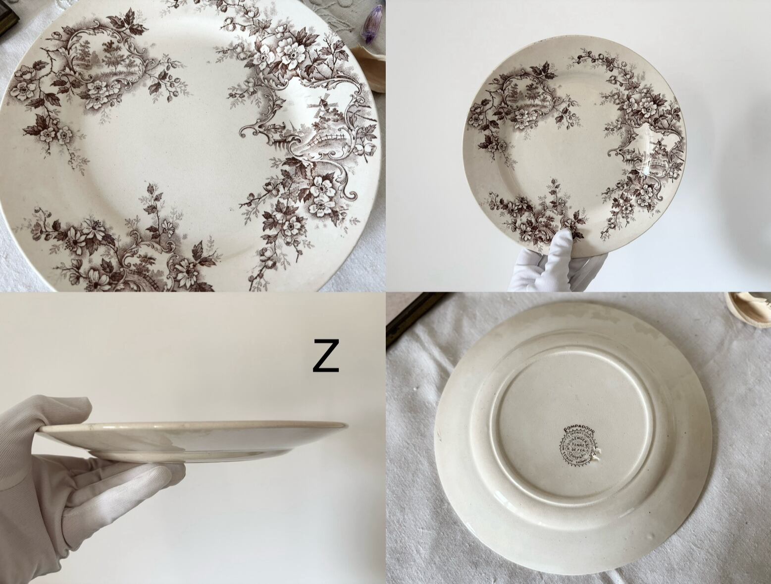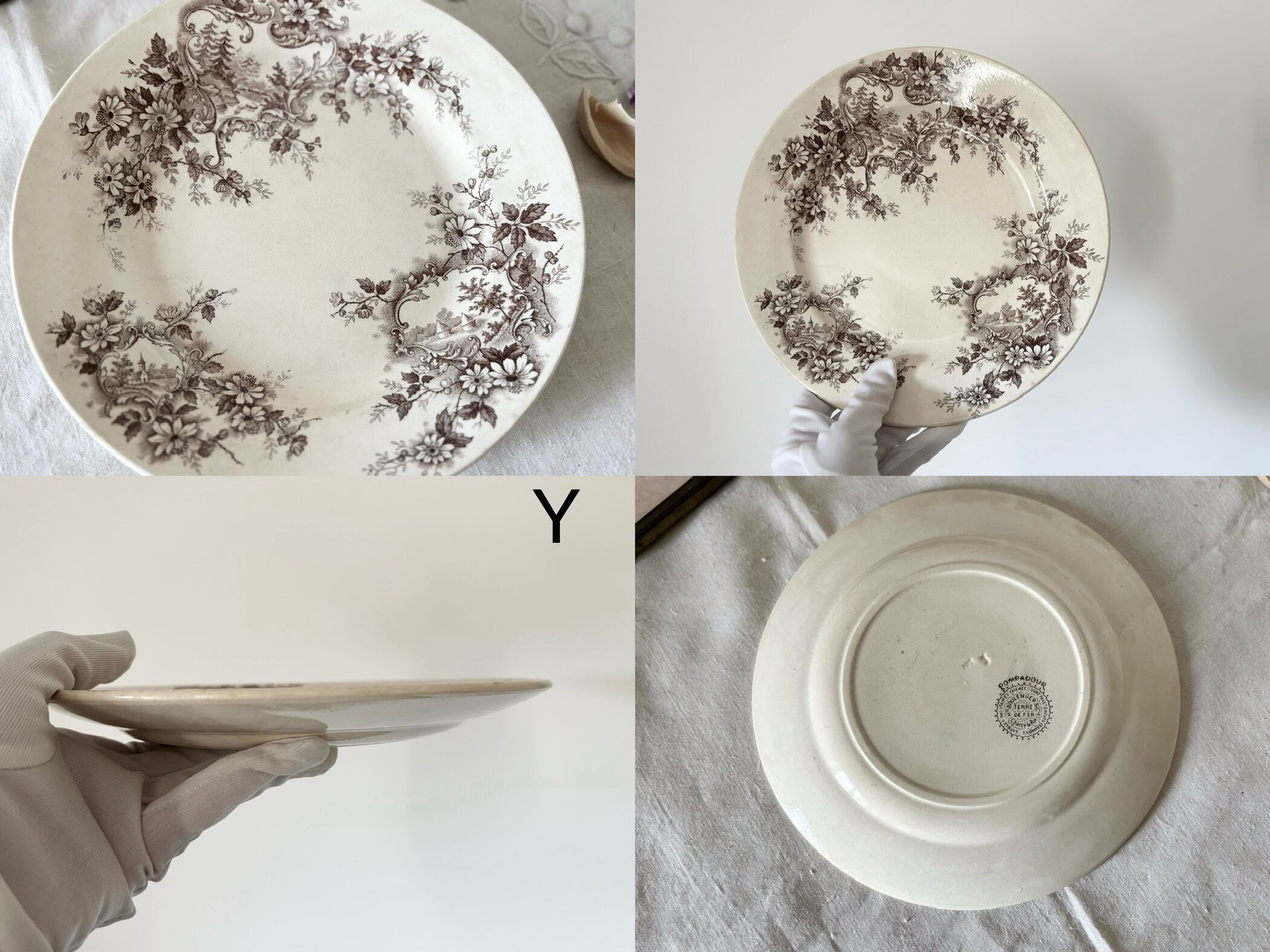 H Boulenger &Cie, Choisy le roiより、Terre de fer のブラウンのPompadour シリーズのディナープレート4枚セットをご紹介いたします。