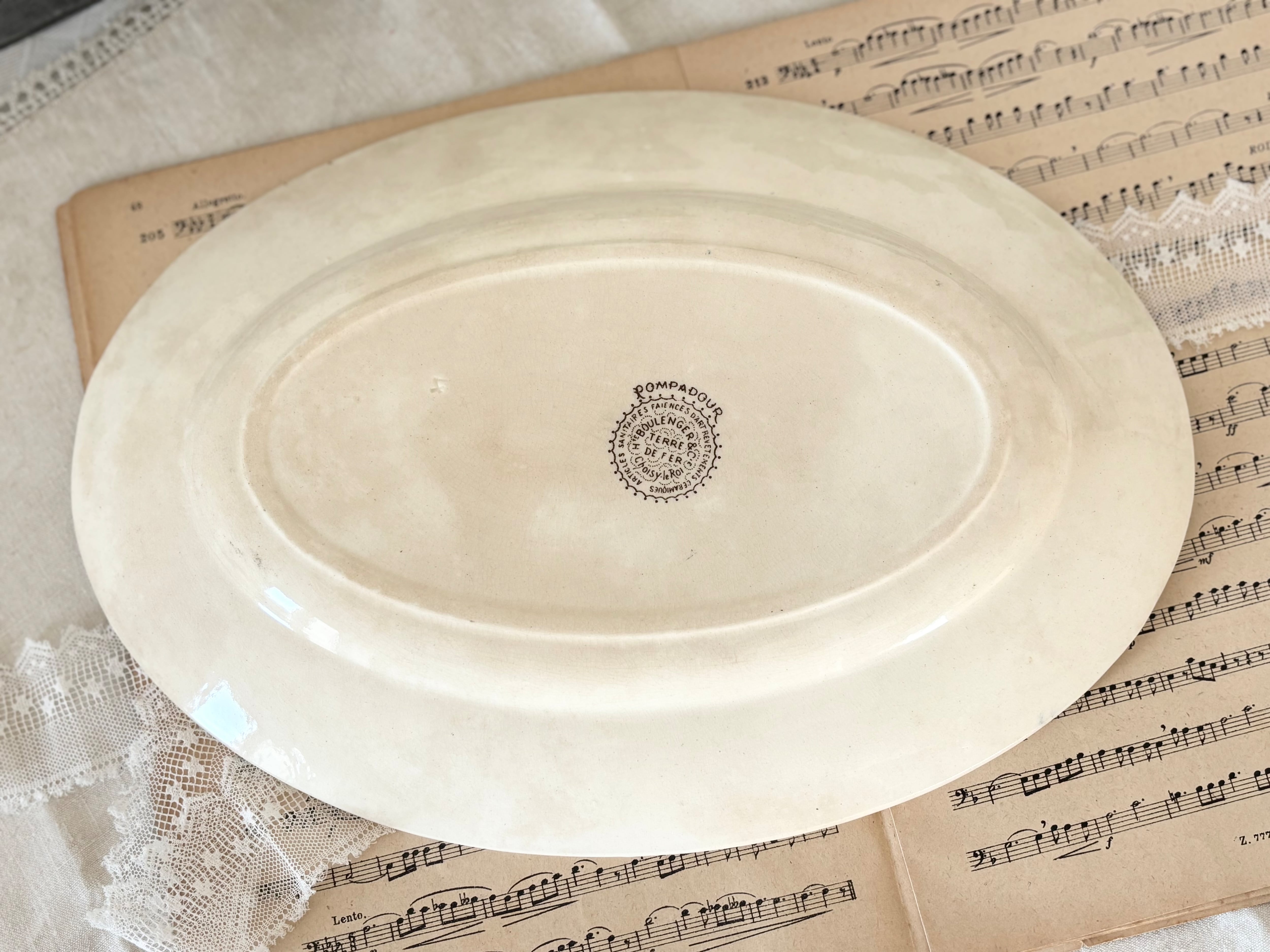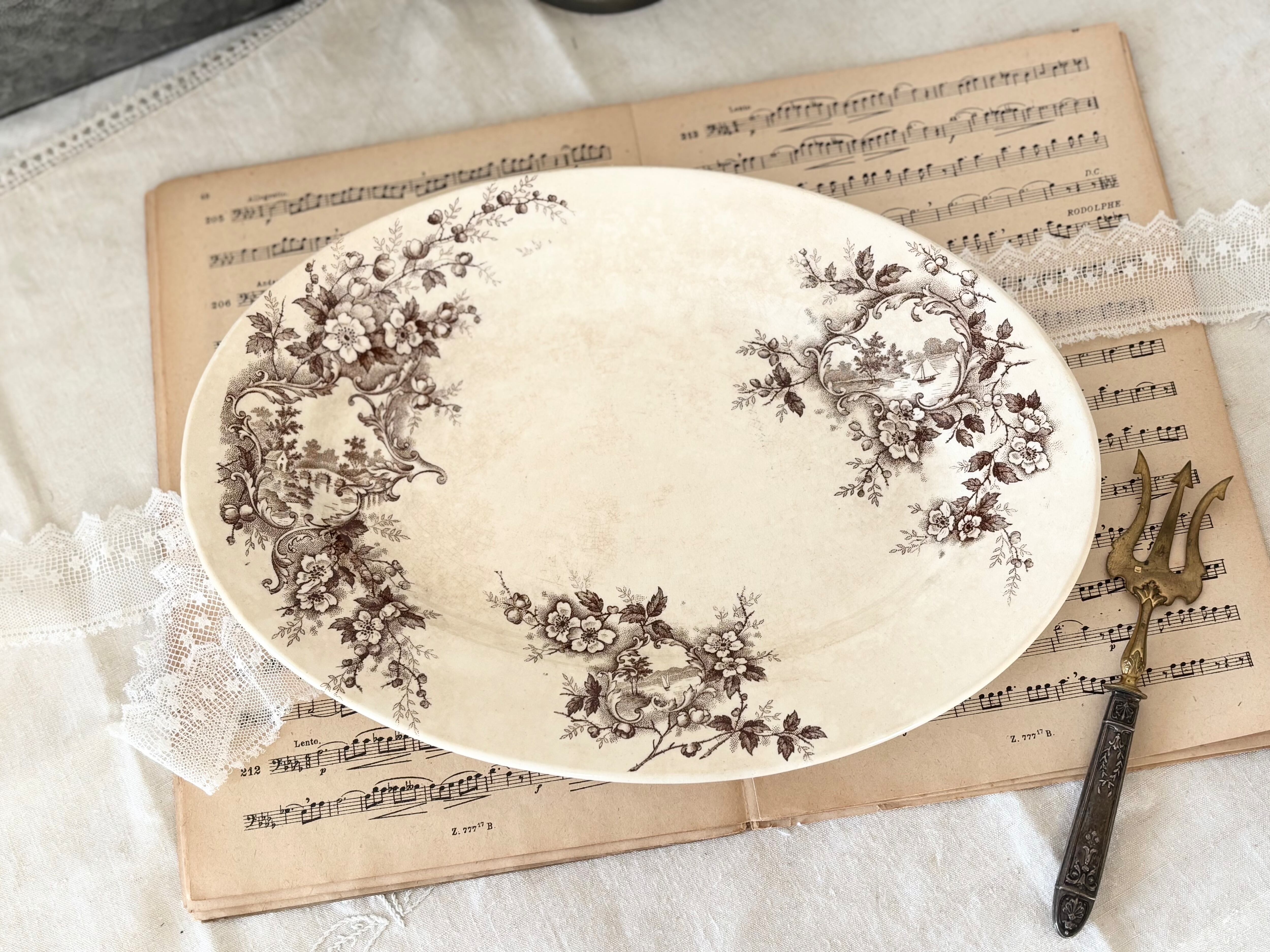 O様お取り置き/ 30.5cm オーバルプレート / H Boulenger &Cie , Choisy- le-roi / Terre de fer / Pompadour / 帆船 / France / Antique / vintage / ショワジールロワ / ブラウン/ フランス/ アンティーク