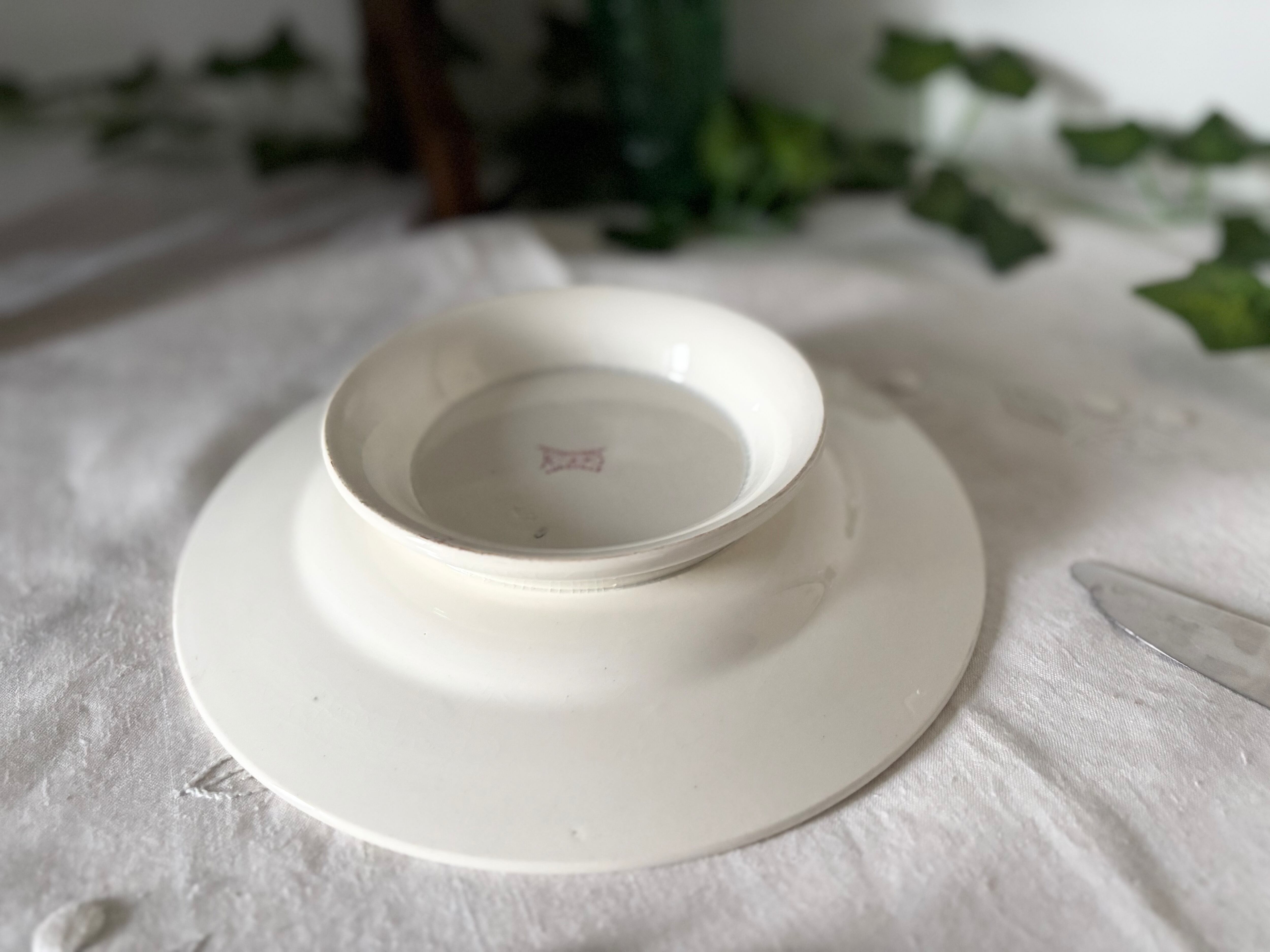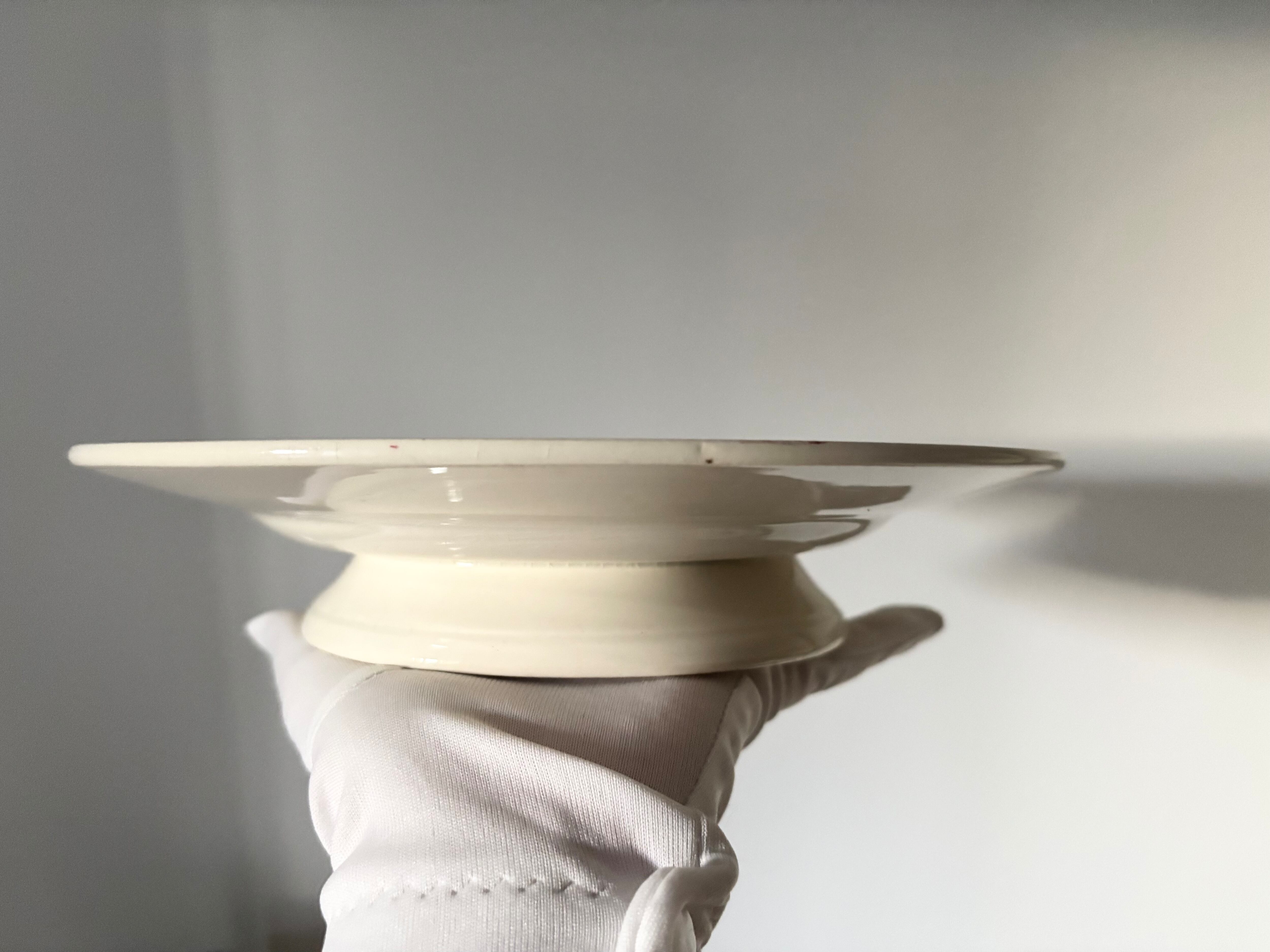 また、裏面にはごく小さな点状の汚れや焼成時の跡が見られますが、いずれも使用や鑑賞を大きく損なうものではなく、アンティーク品として自然な経年の範囲と判断しております。