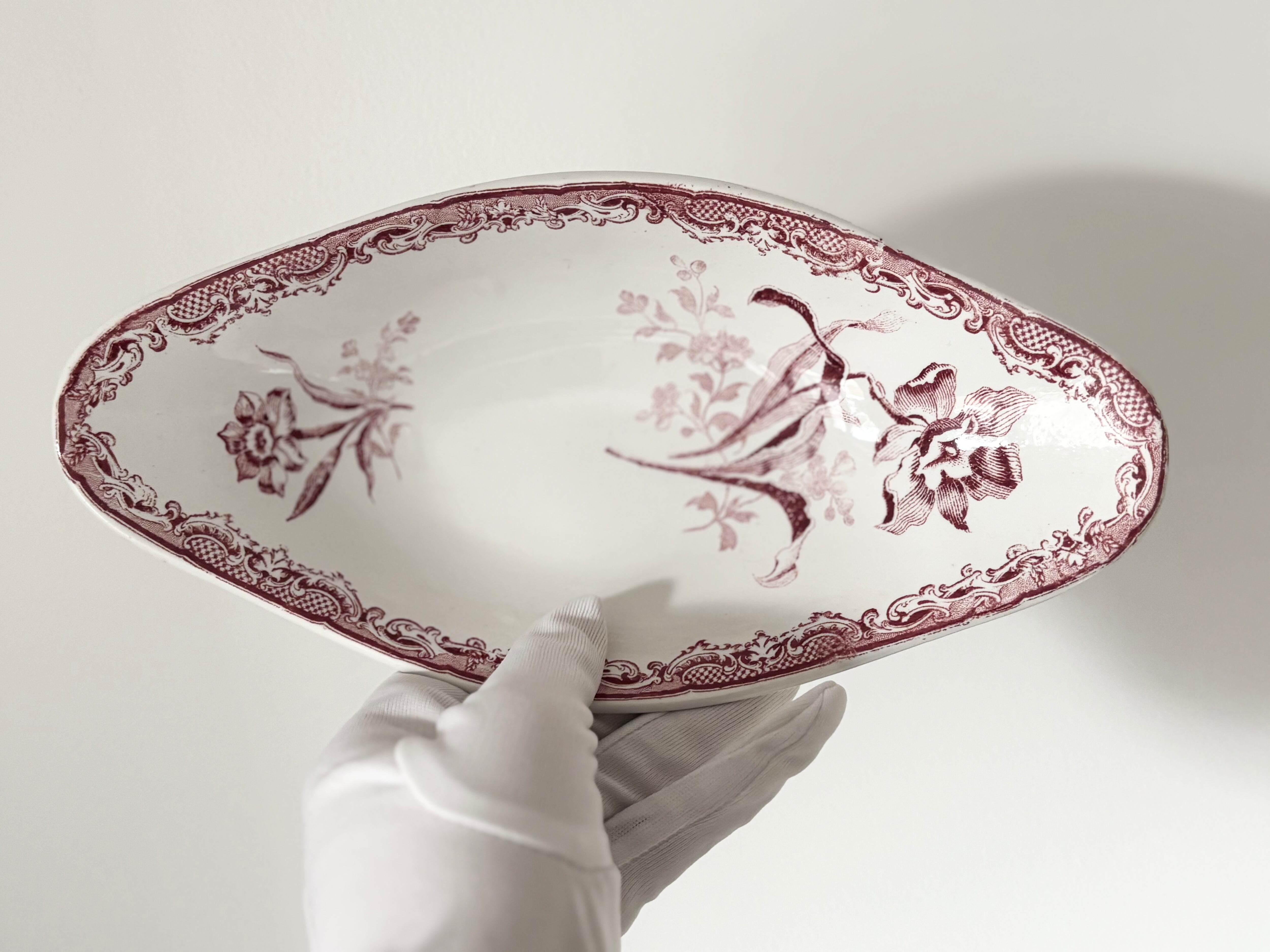 B: Sarreguemines サルグミンヌ/ Fontanges / ラヴィエ / フランス / 赤 水仙の花 ロココ