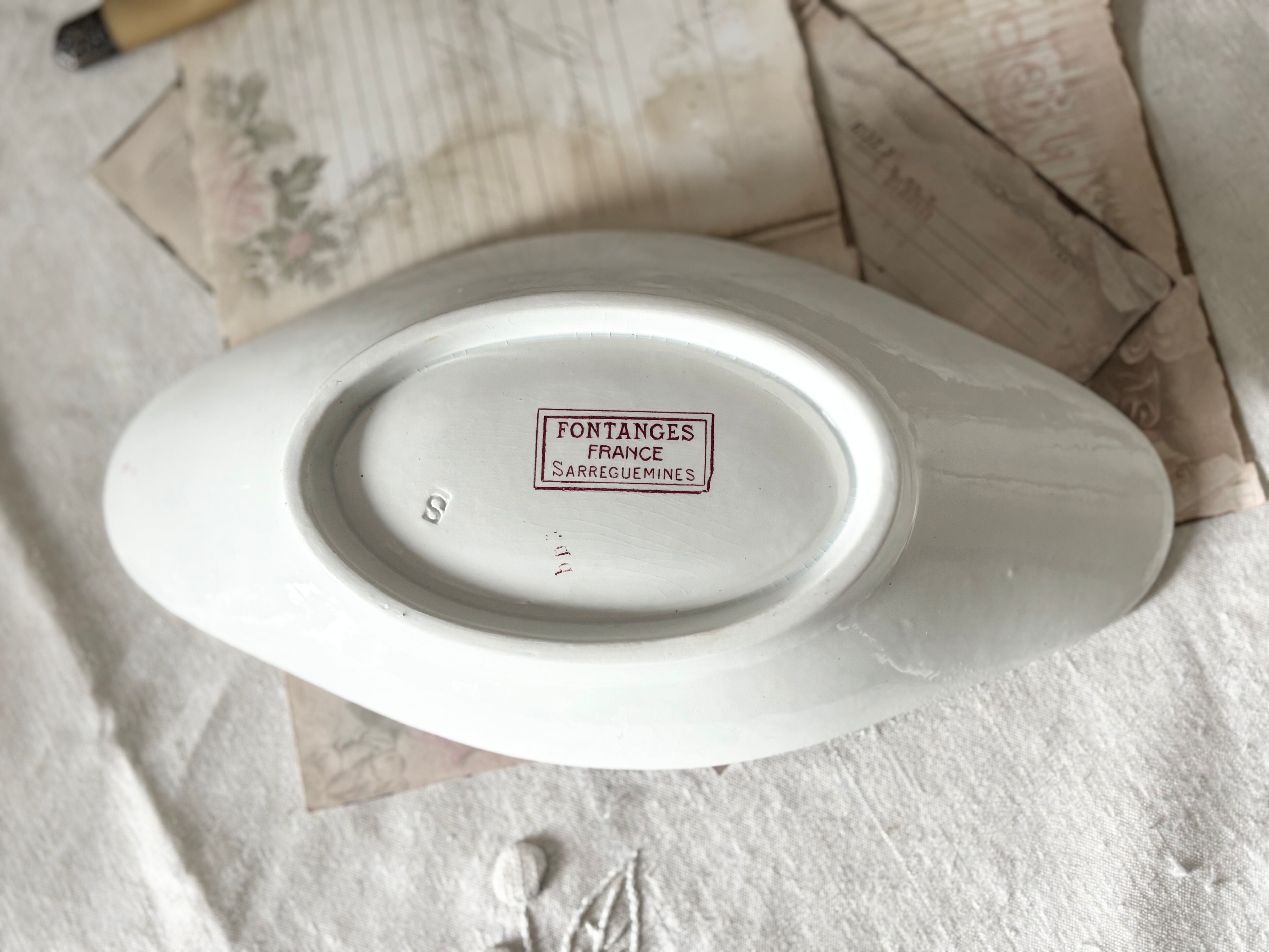 • 刻印部分:底面の「FONTANGES FRANCE SARREGUEMINES」の押印にごく軽いずれがあります。
