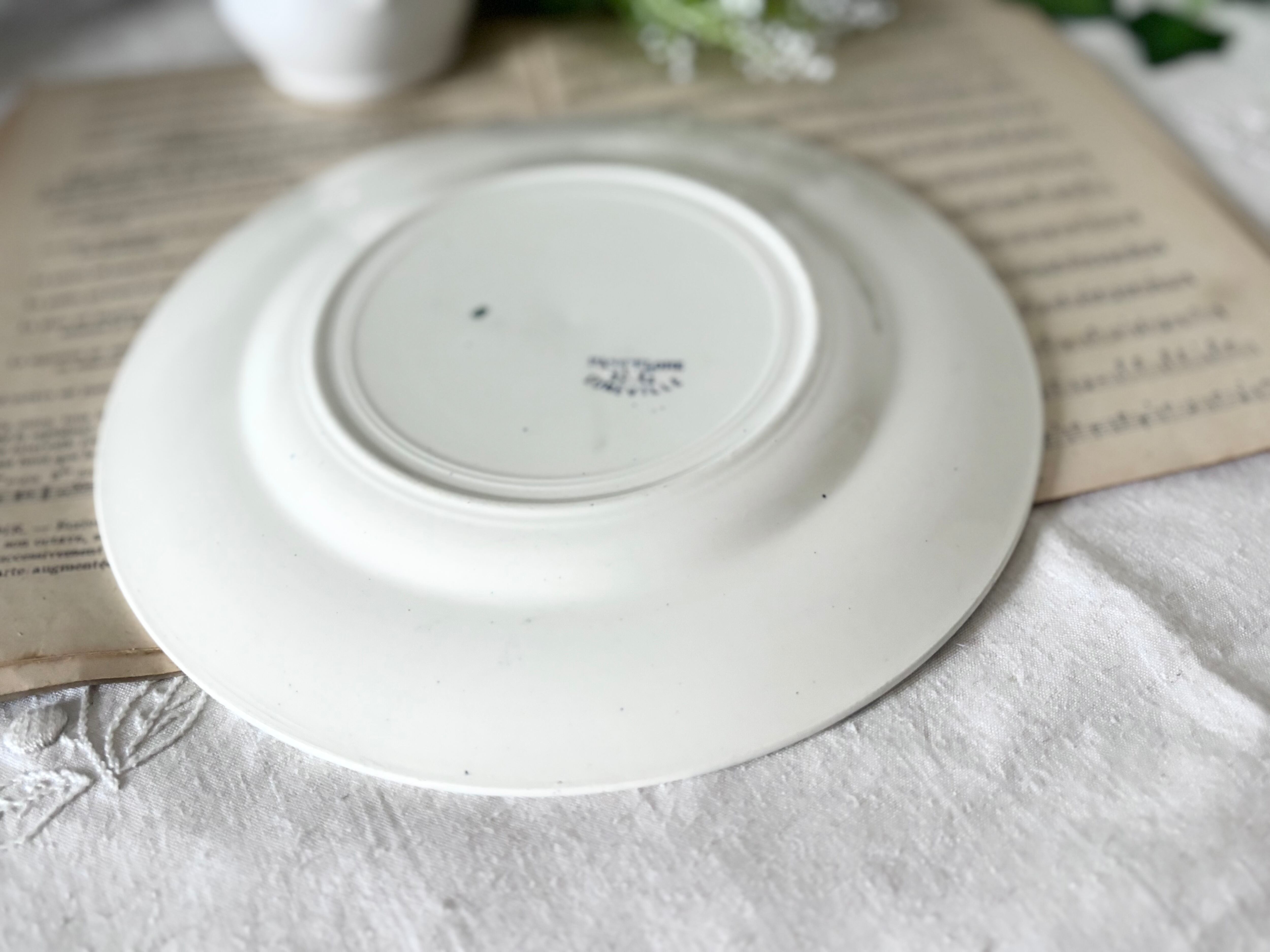 転写による絵柄には、アンティーク特有の軽いかすれや途切れ、わずかなにじみが見られますが、モチーフ全体ははっきりと残っており、印象を損なうものではありません。