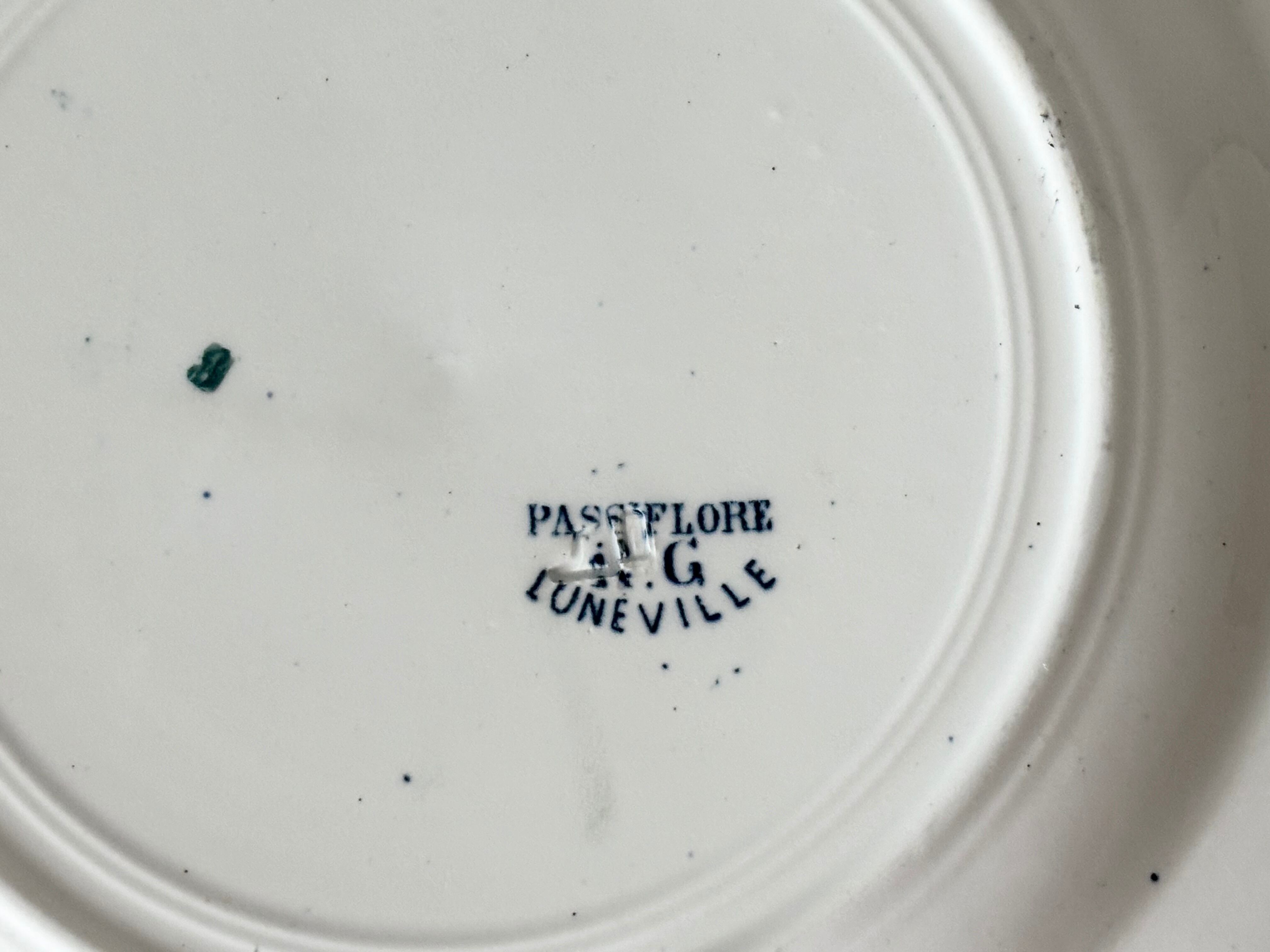A ディナープレート Luneville / Passiflore /フランス / アンティーク ビンテージ青