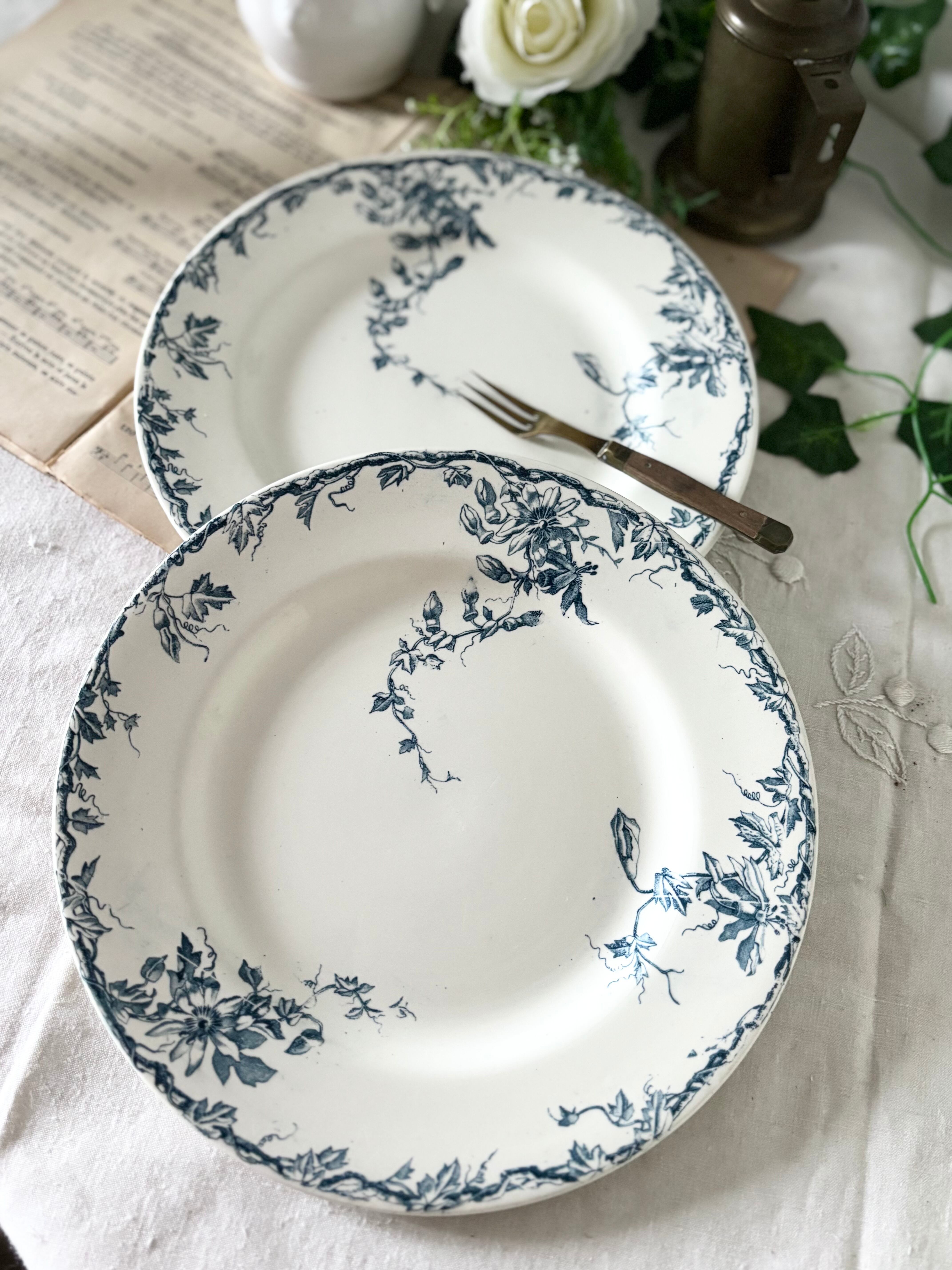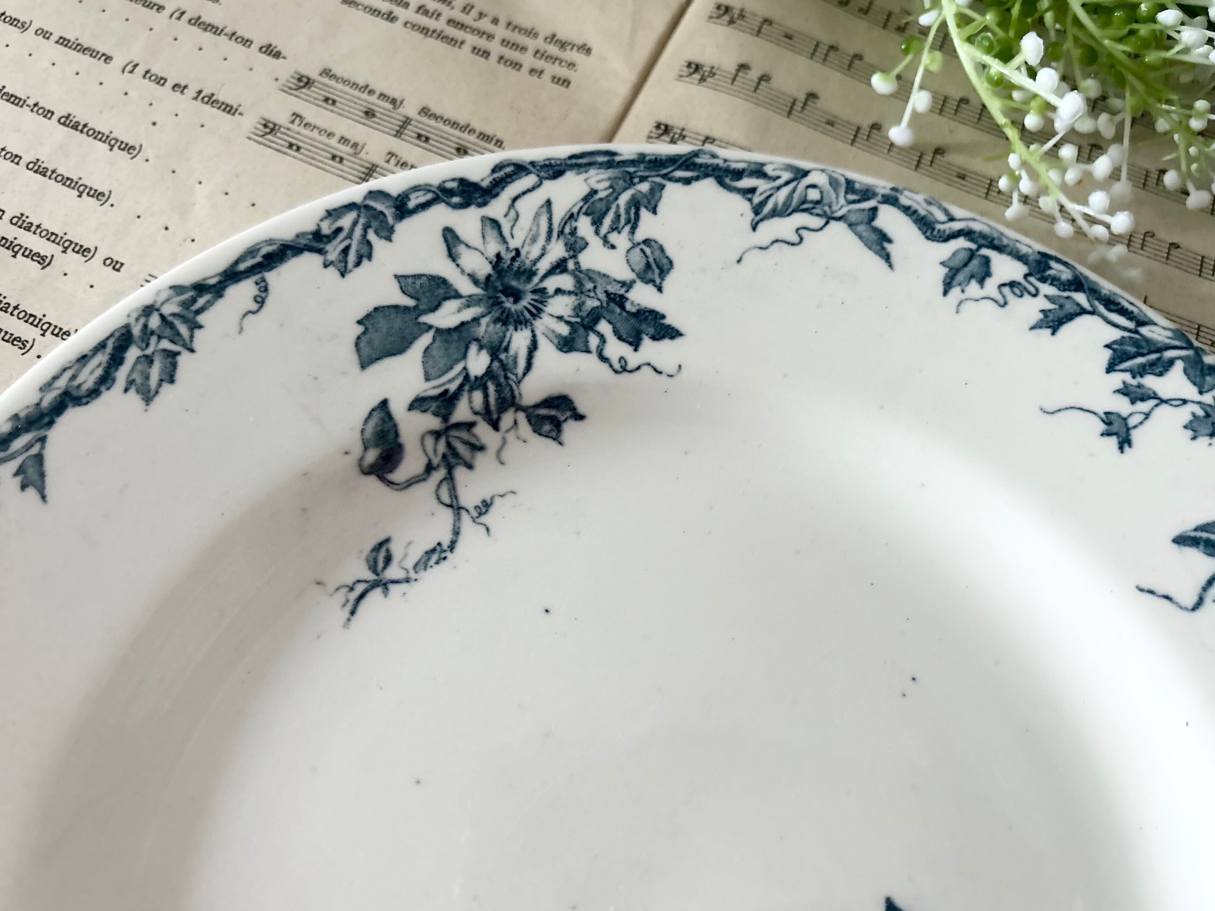 D: ディナープレート Luneville / Passiflore /フランス / アンティーク ビンテージ青