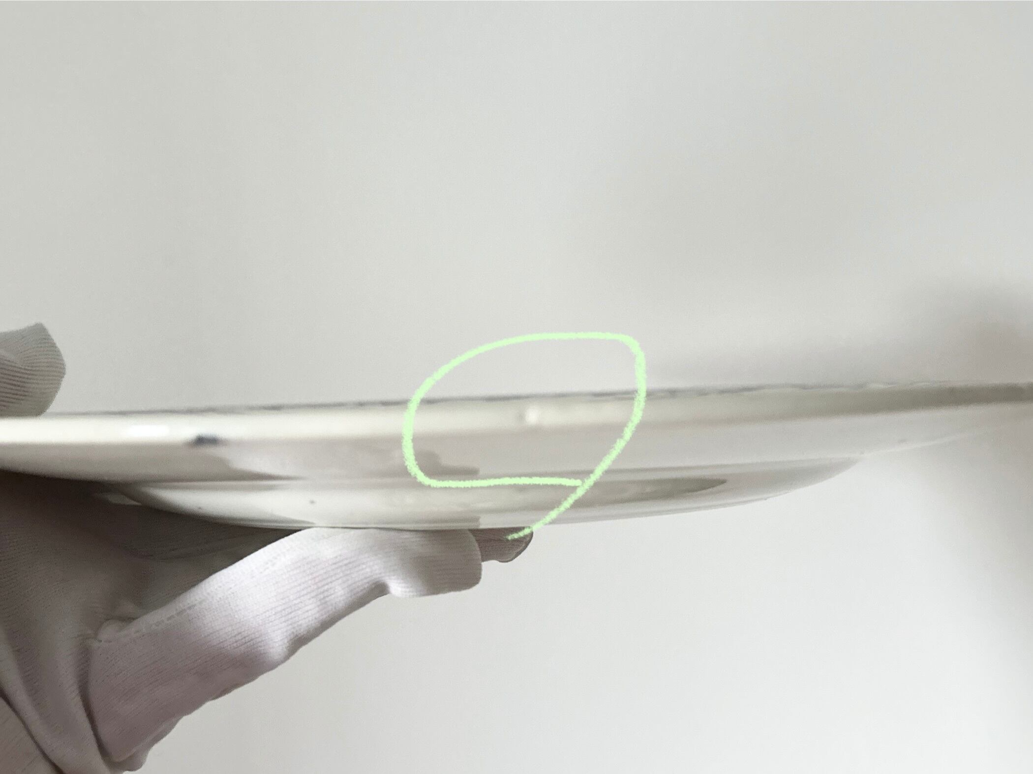 側面から見ると、お皿の縁に1カ所傷がございます(写真にて記載)。
