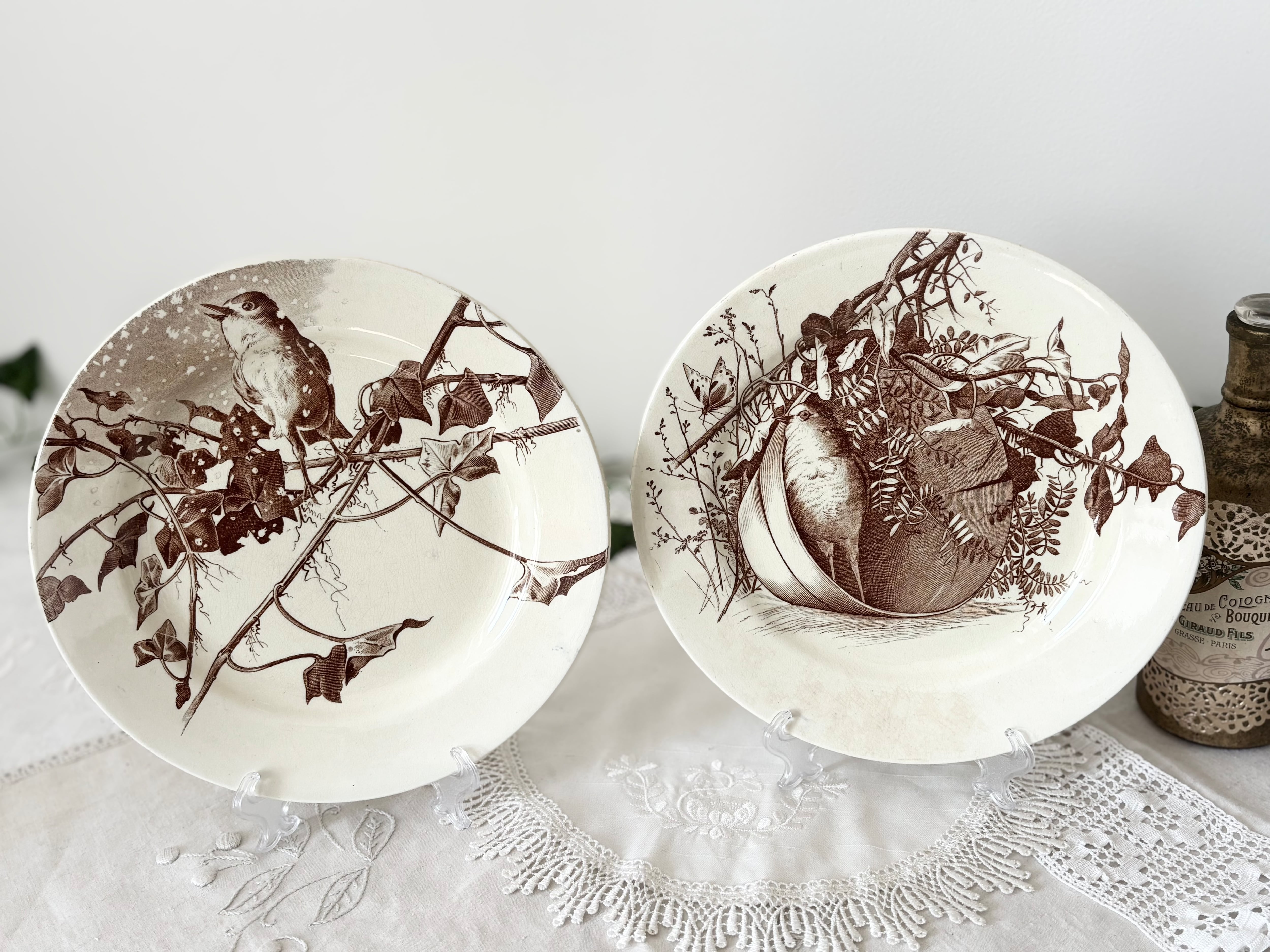2枚セット オランダ マーストリヒト 四季 鳥絵皿 Société Céramique アンティーク プレート 23.5cm