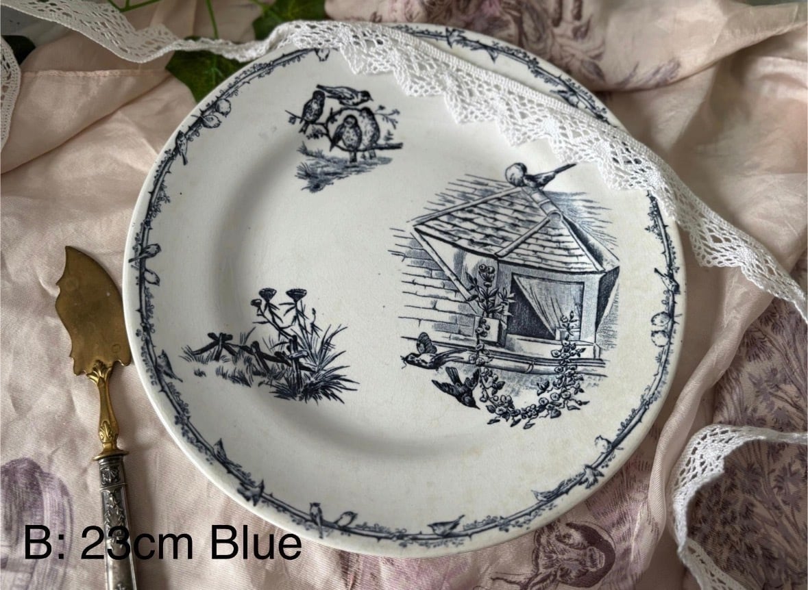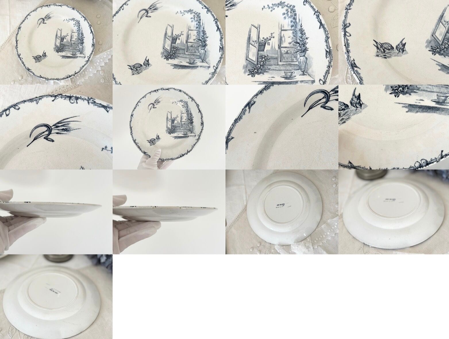 4:28.5cm Pexonne / Campagne / Picture plate cat and birds / French antique