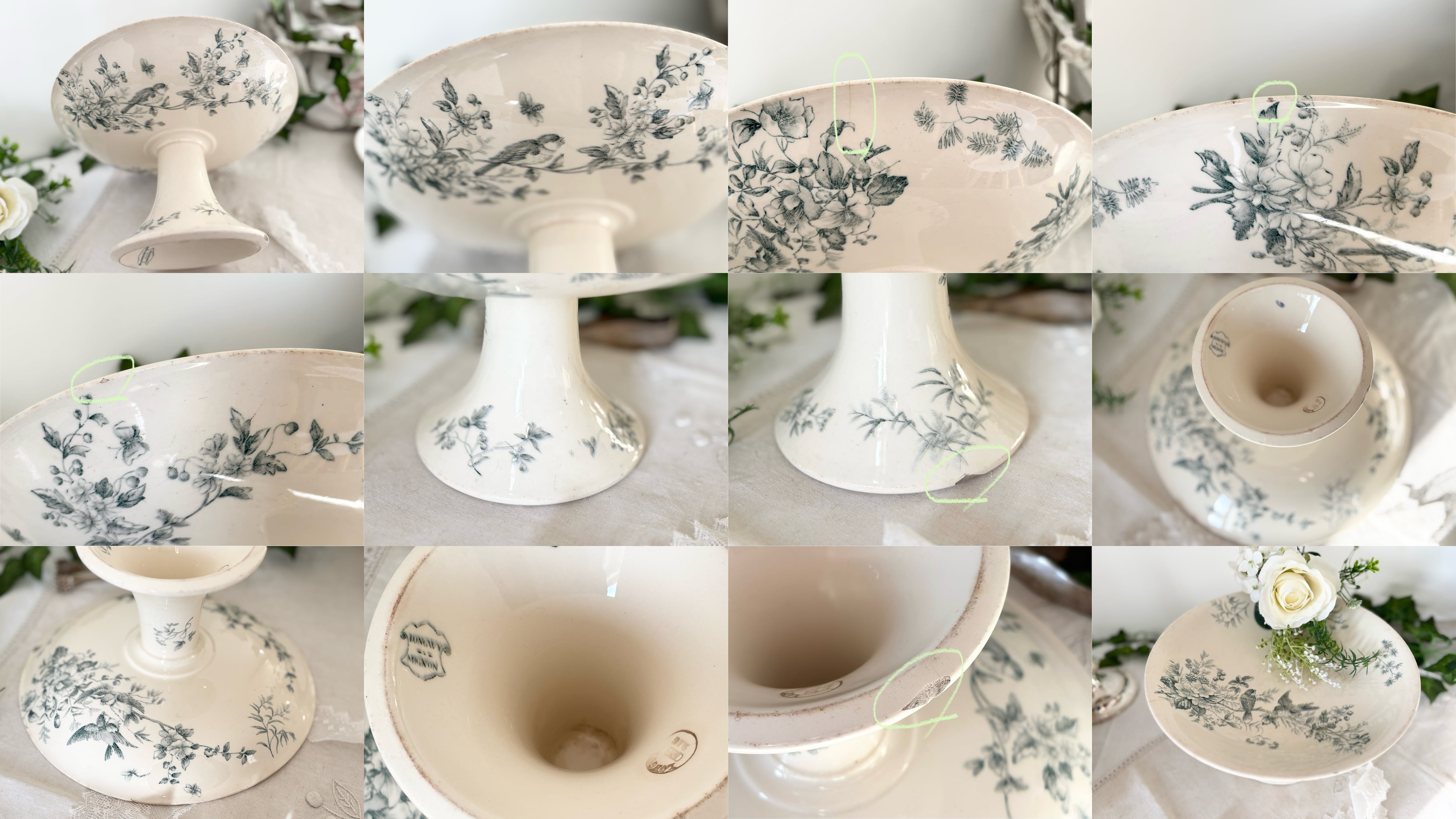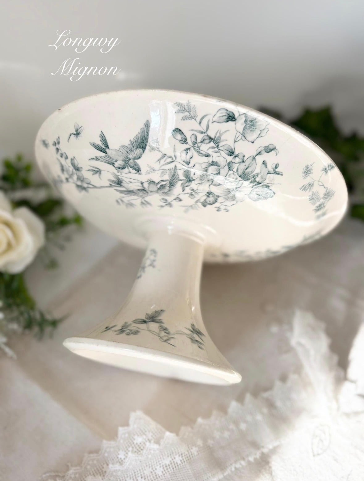 1: Longwy / Mignon Tall Compotier centrepiece French antique / birds / vintage / shabby chic / cake stand