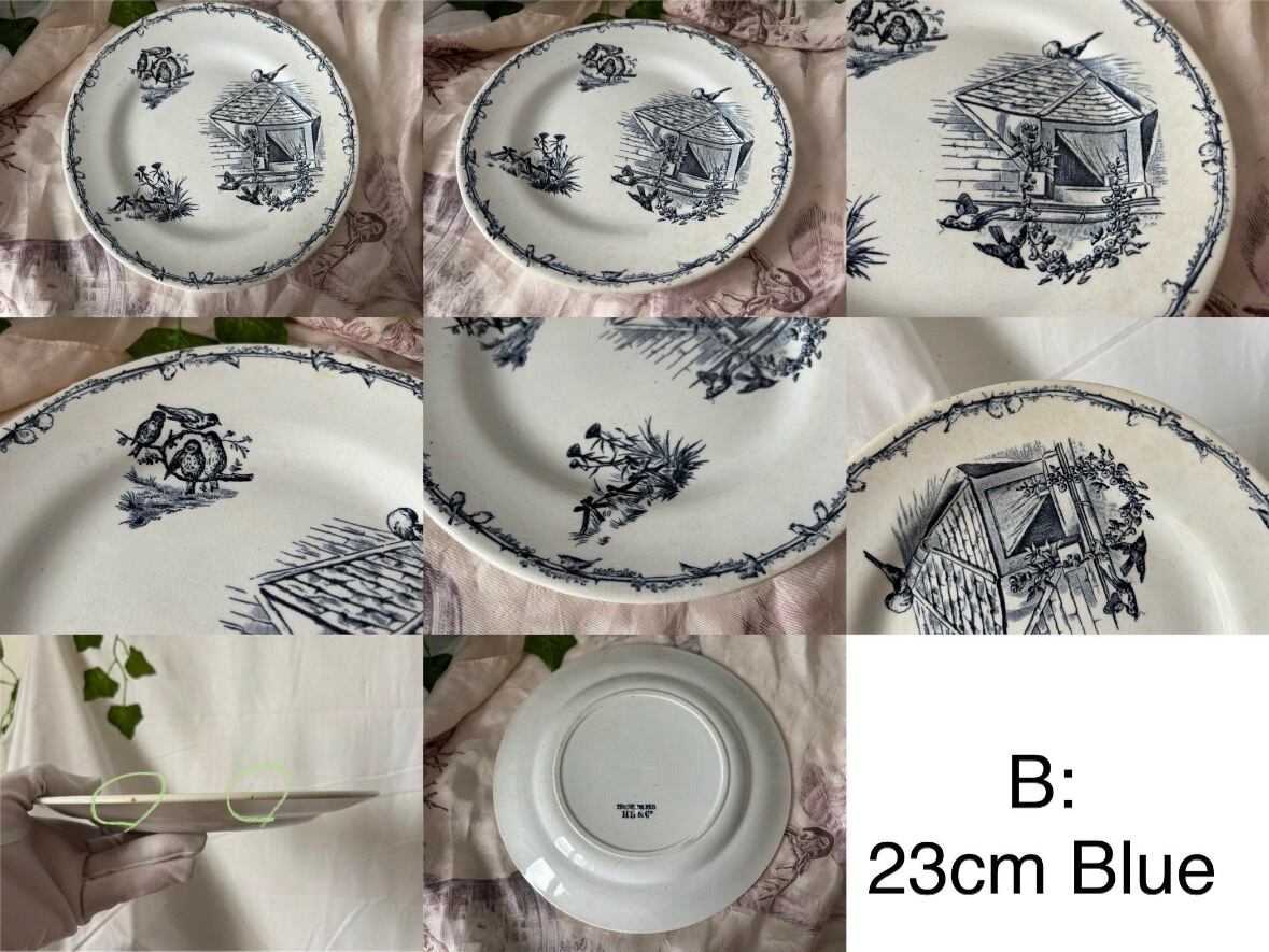 2: Lot 4 dessert plates / 21.5cm / Luneville / navy / birds & Cherry trees / France / antique