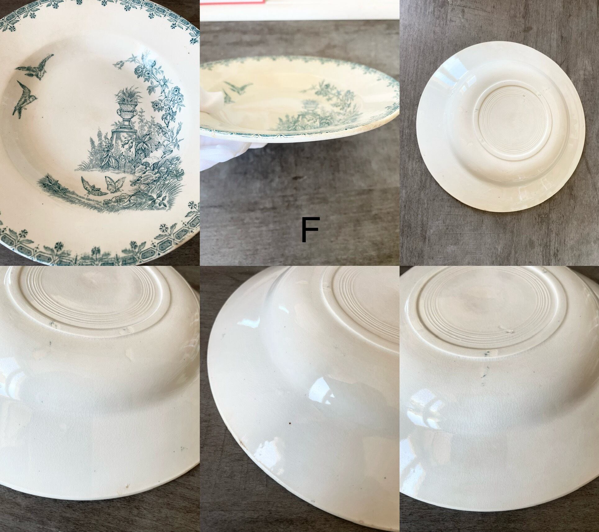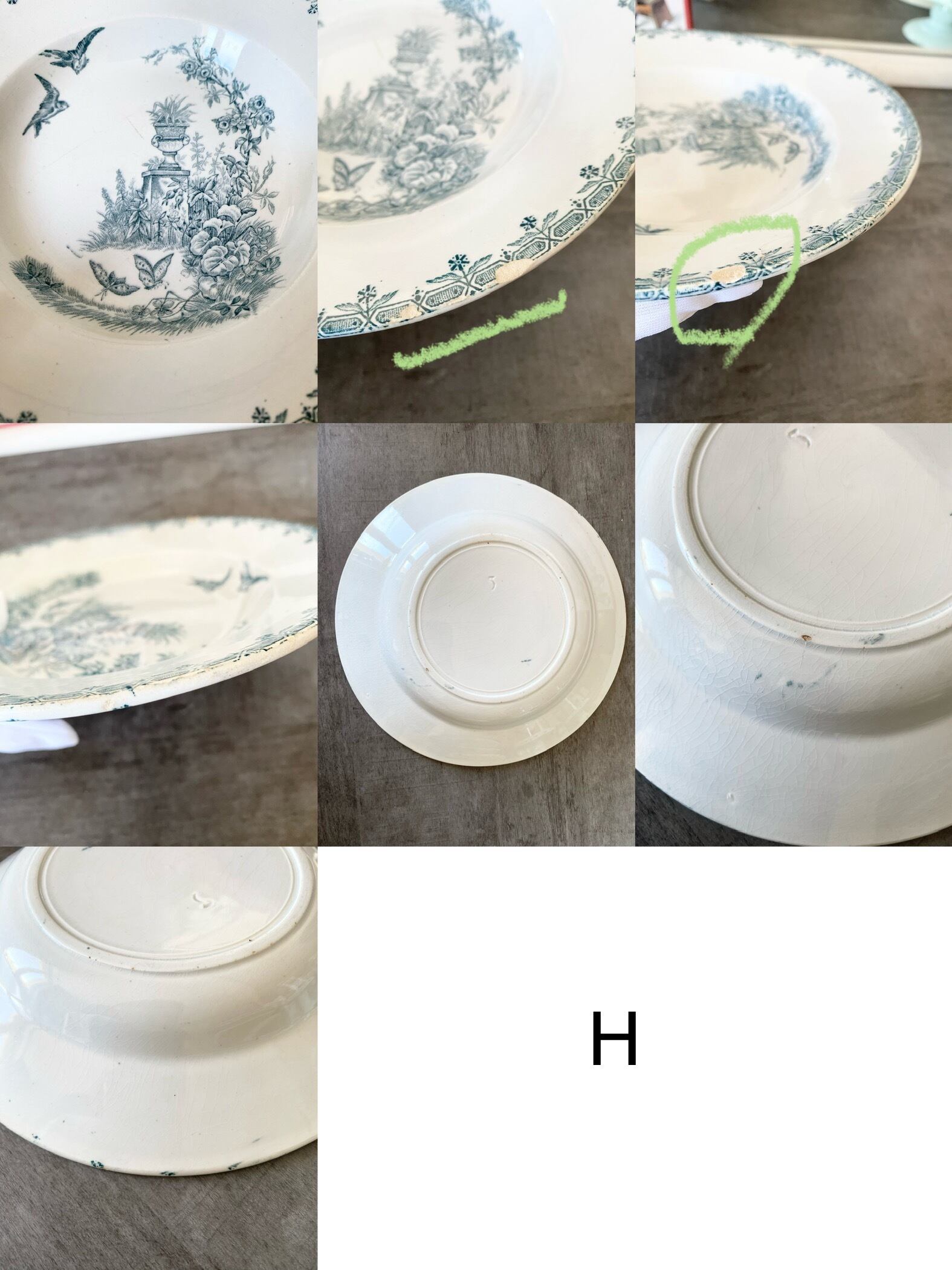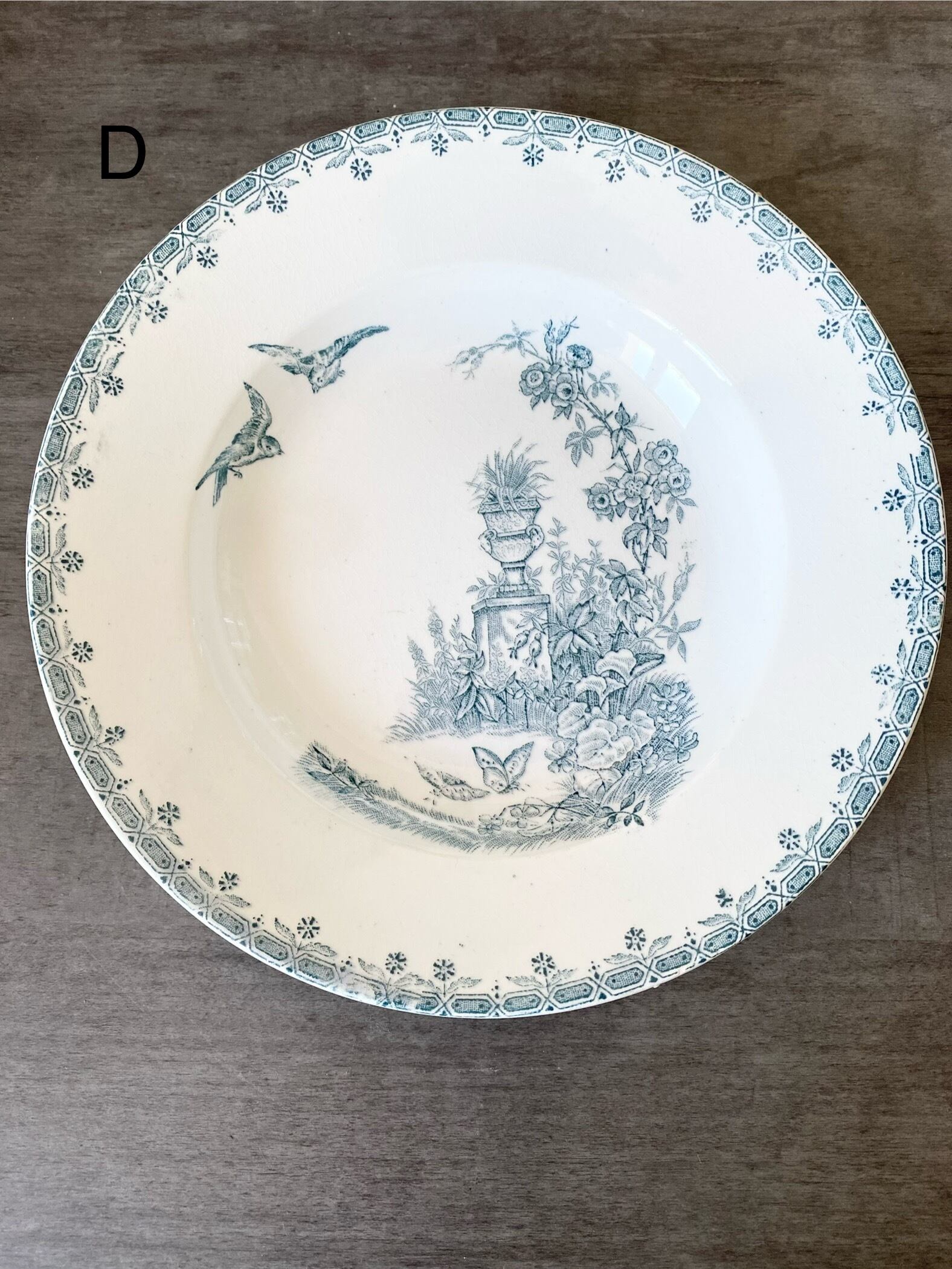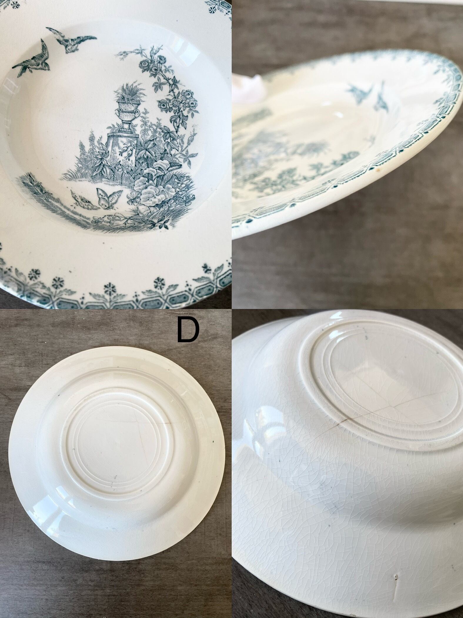Lot 7 Terre de fer Deep plates / Rosalia / Vintage e / No back mark / France / Antique / Shabby chic / bird / テールドフェール / 刻印無し / 鳥 / フランス / アンティーク
