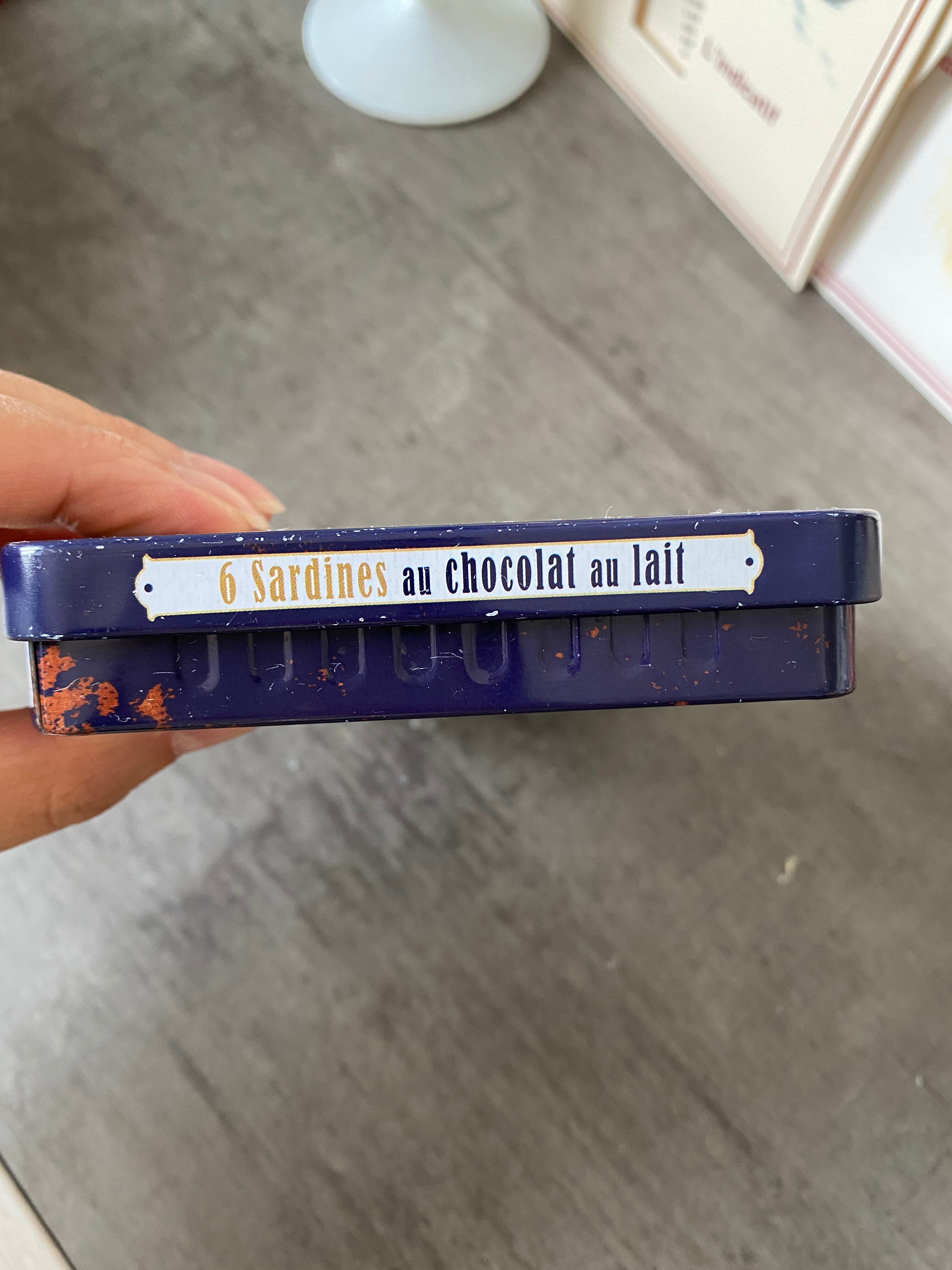 SARDINES à la Fleur de sel chocolatとは、サルディーン型のチョコレートです。赤サビのようなデザインがされていますが、実際にはとても綺麗な状態です。