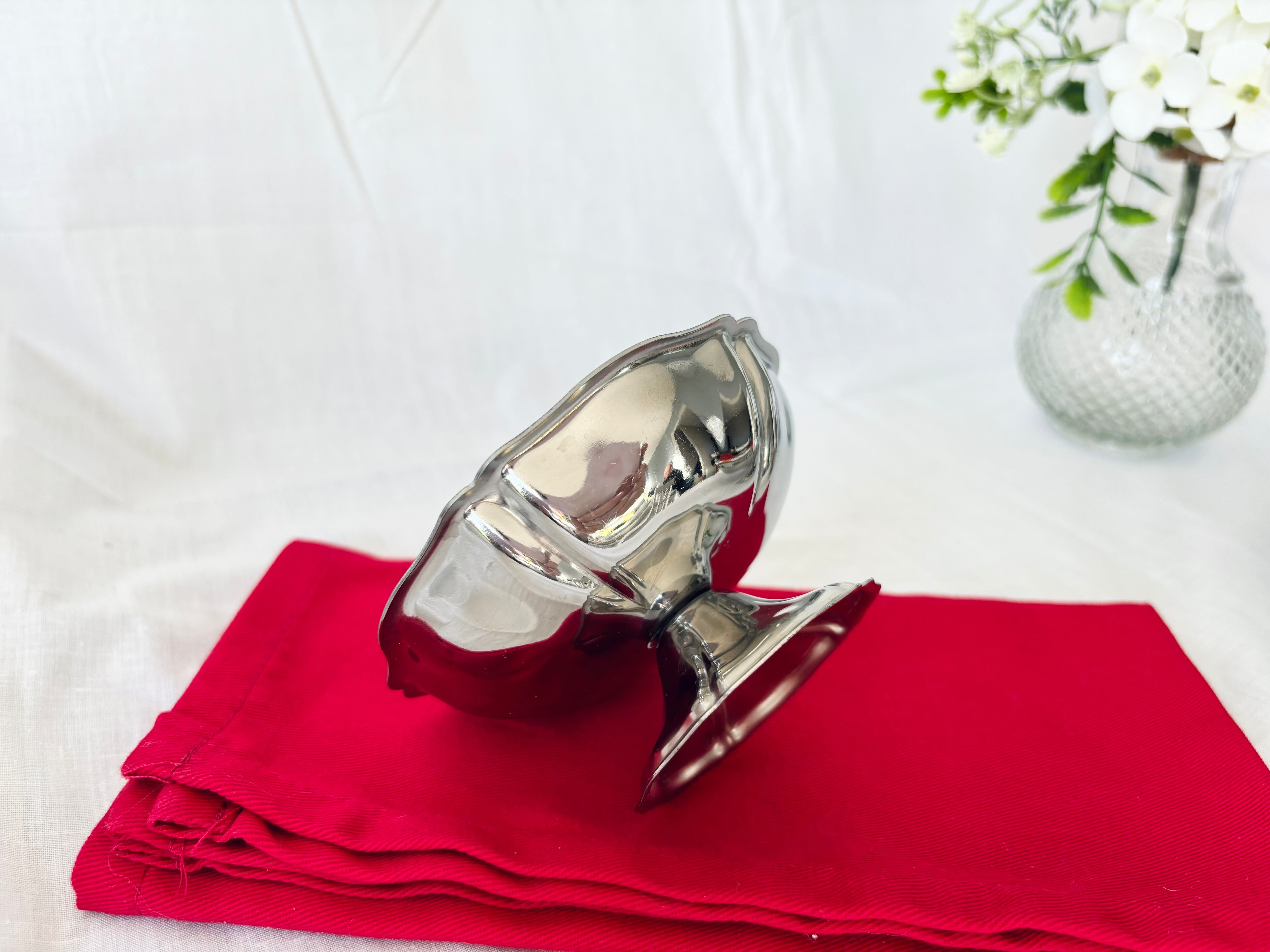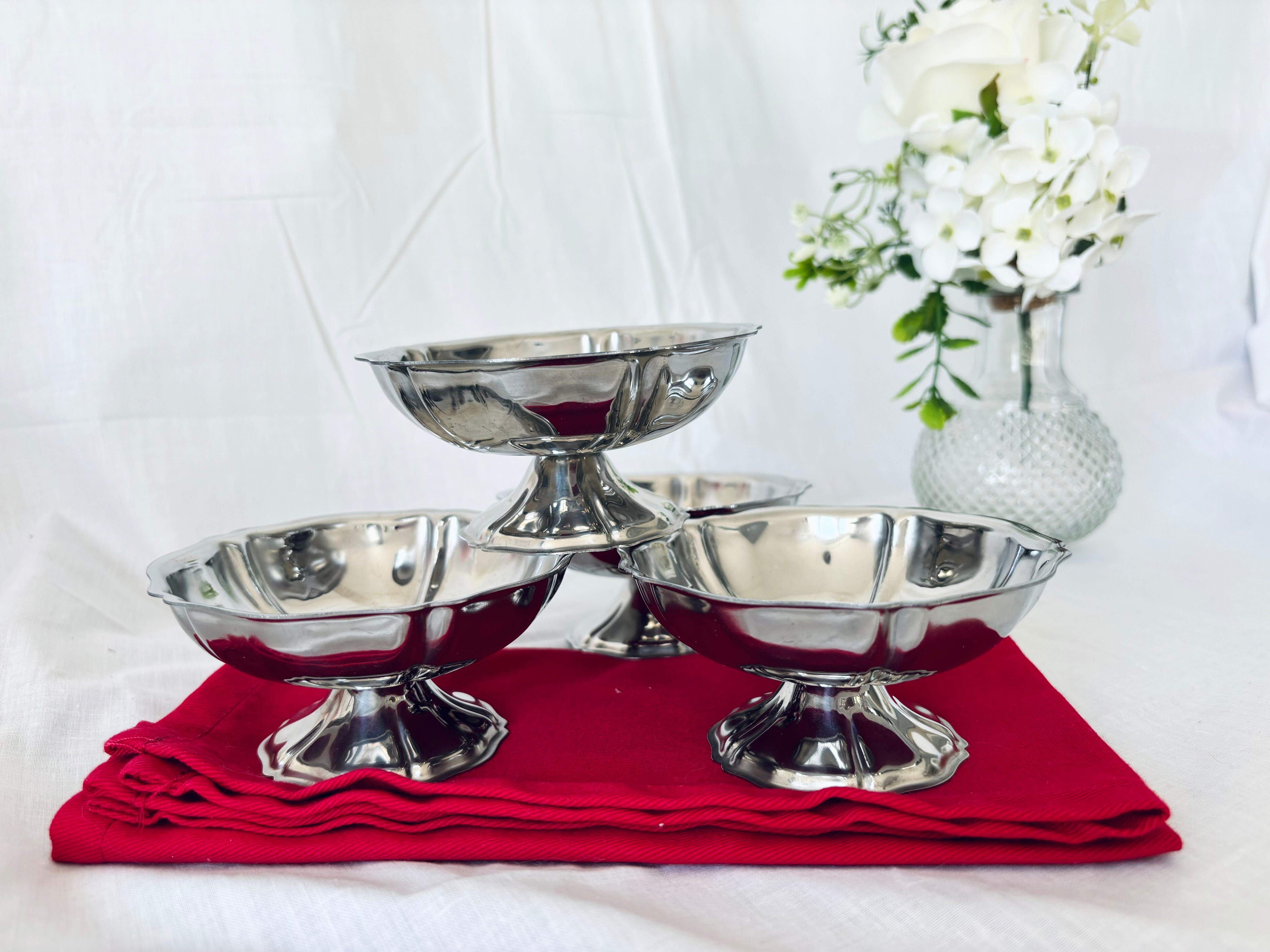 ステンレススチール/INOX製のアイスクリームボウル4個セットをご紹介いたします。1970年代のフランスのビストロで使用された、華やかなスタイル。こちらのType E は、背が低く、安定性が抜群です。テーブルの上にセットすれば、野原に花が咲いたように明るい雰囲気に。