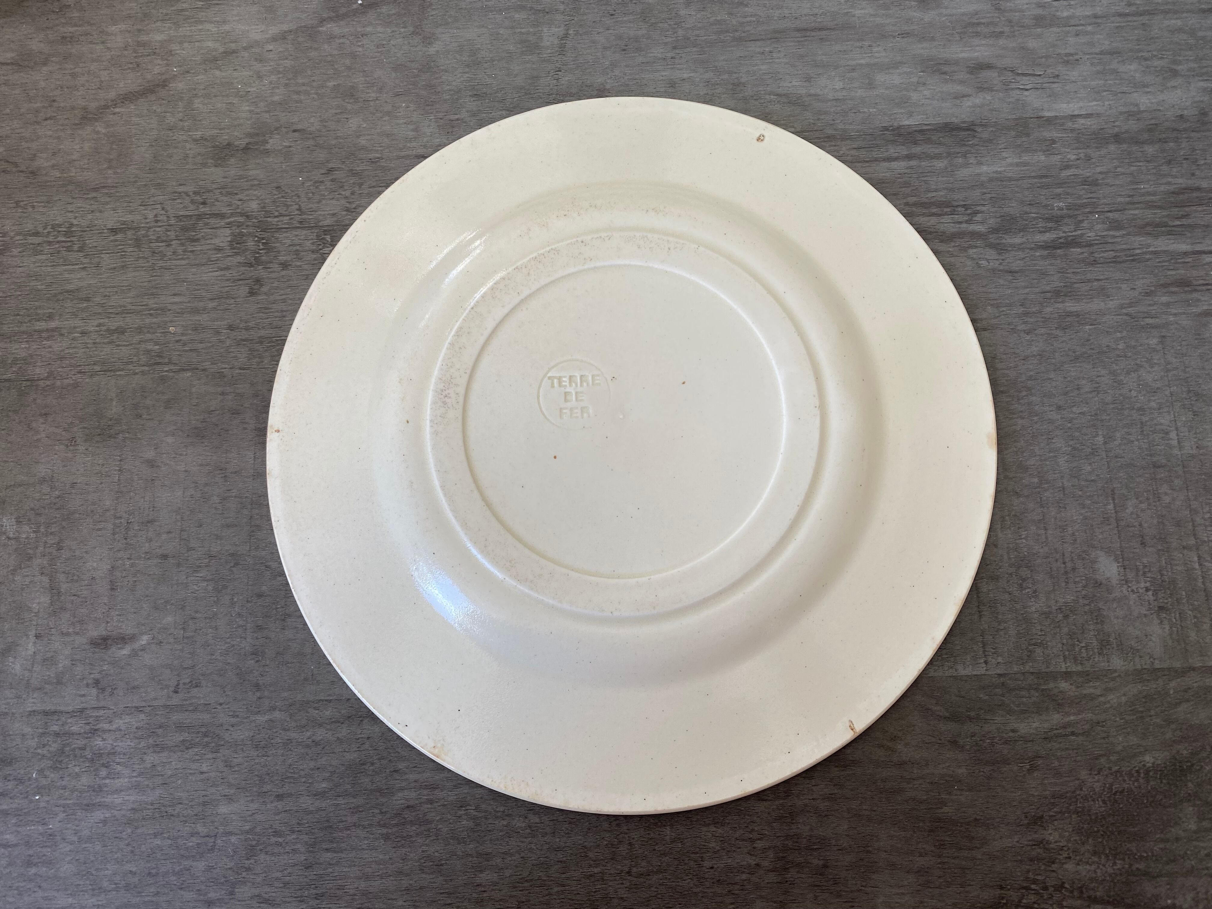 ロカイユ調のゴージャスな装飾の奥には、静かな湖に水車小屋、鳥の一群が羽ばたいています。絵柄からClairefontaine の Louis XVと思われますが、お皿の裏には、Terre de ferの刻印のみがあります。