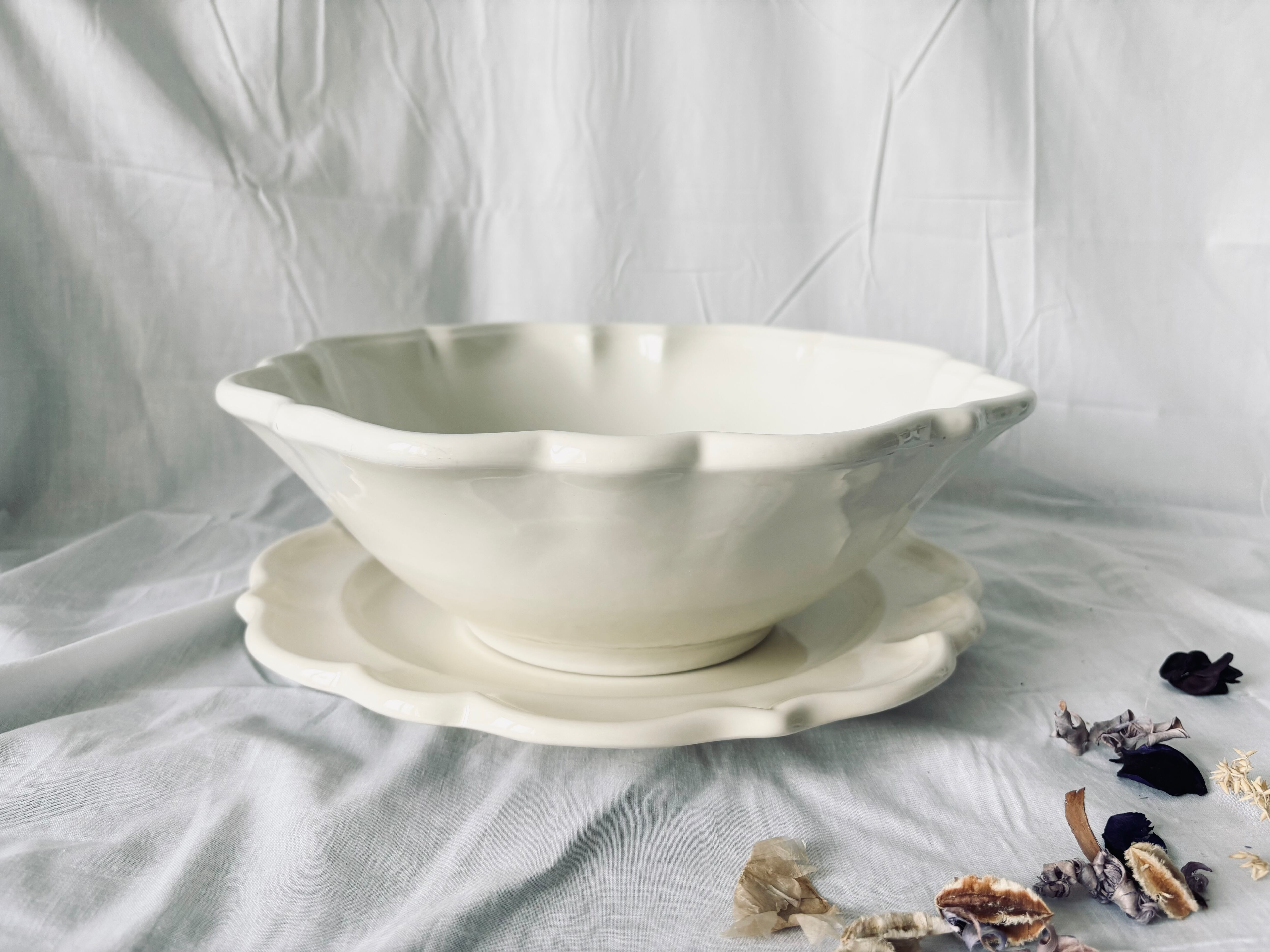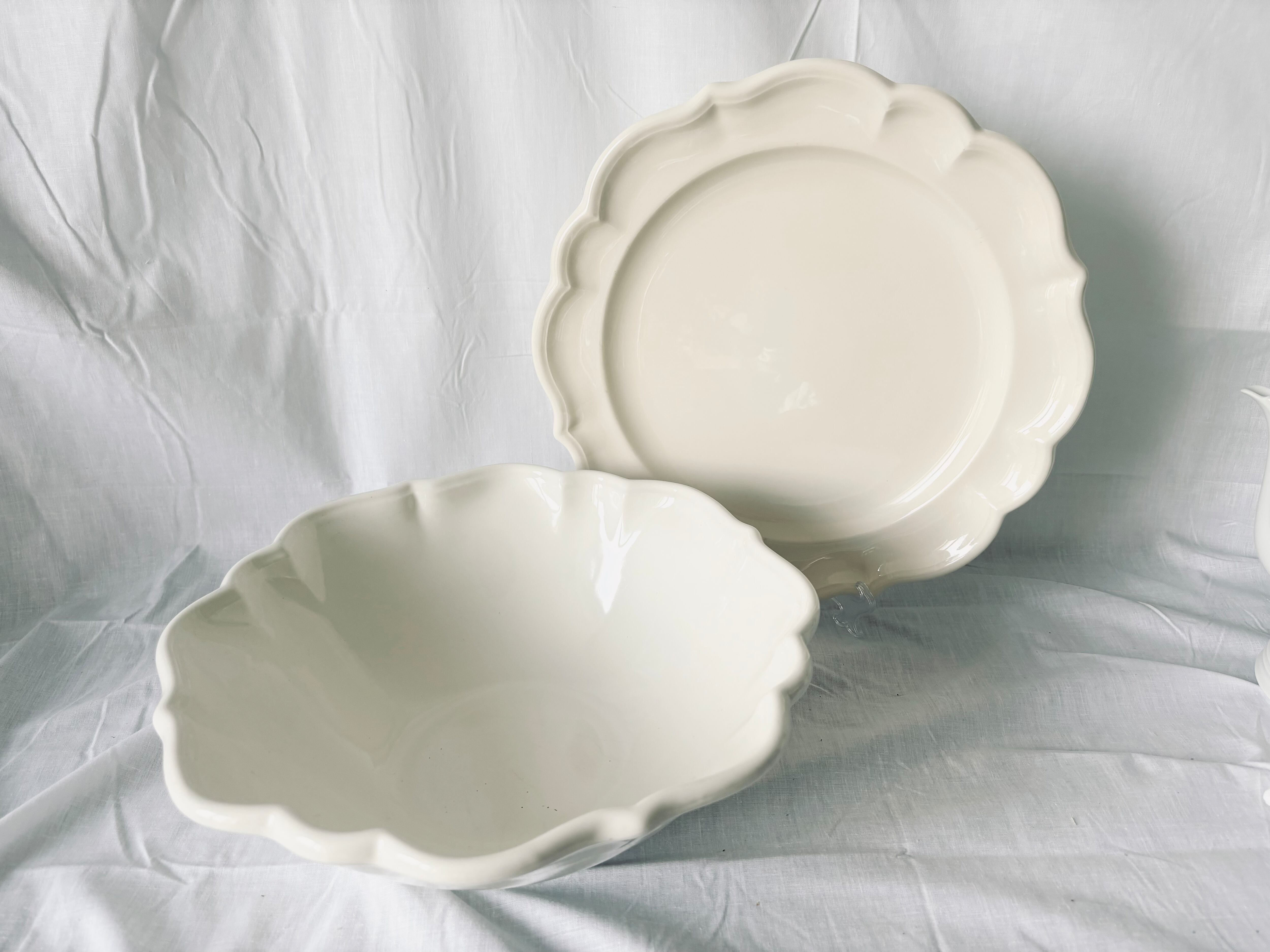 ジュヌヴィエーヴ・レテュのお皿は、通常鮮やかな色やデザインがメインですが、こちらのAnjouシリーズ、2000(ミレニアム・エディション)は、優しいクリーム色に、程よい厚みがあり、温もりを感じさせ、他のシリーズとは一線を引く、特別感があります。