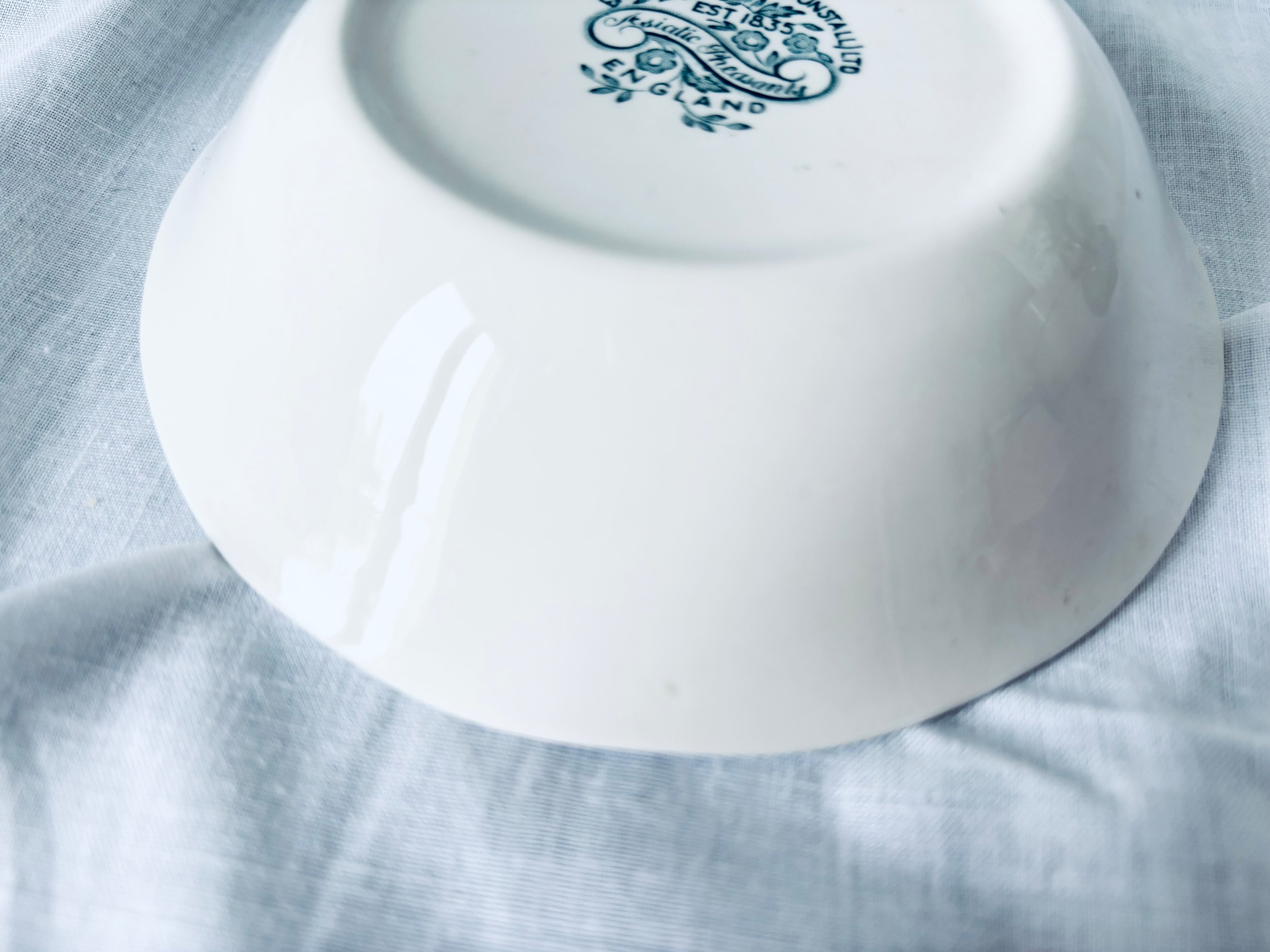 絵柄が掠れている部分があります。片方のお皿の縁に小さな傷があります。また、裏側にはどちらのお皿にも、極小さな傷や色移りと見られる青っぽい色が付いている箇所があります。