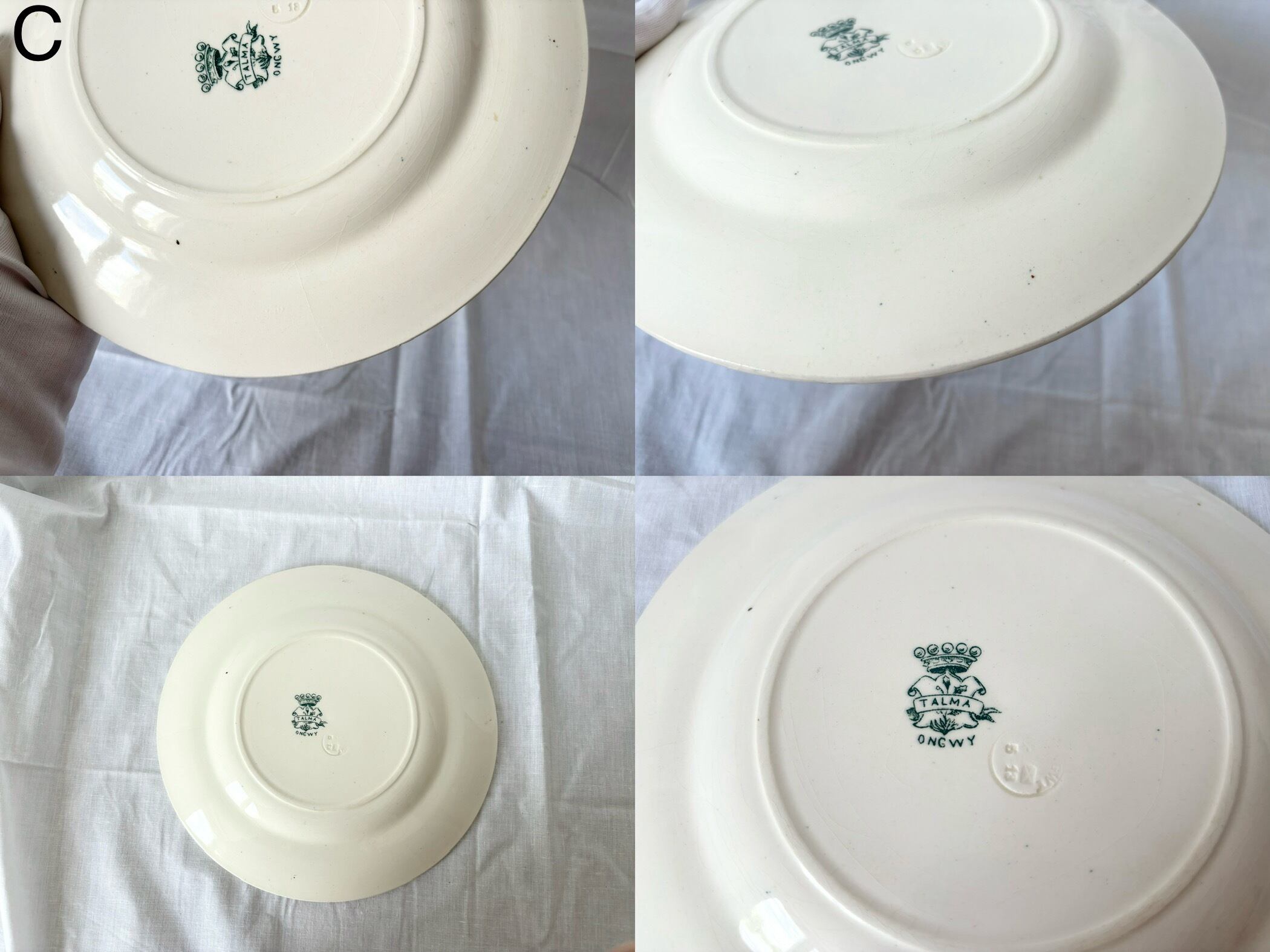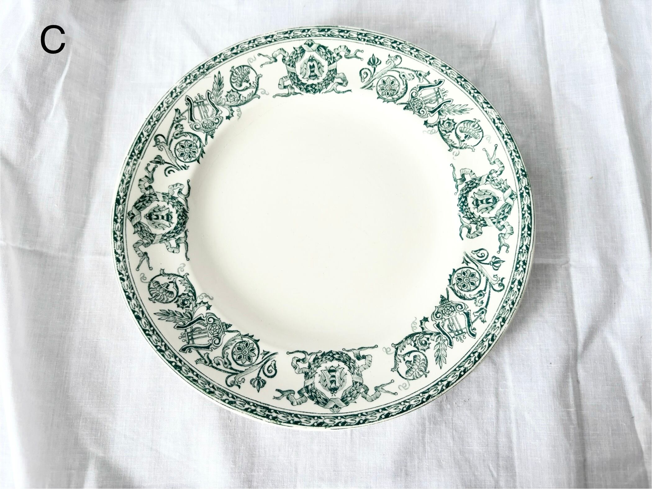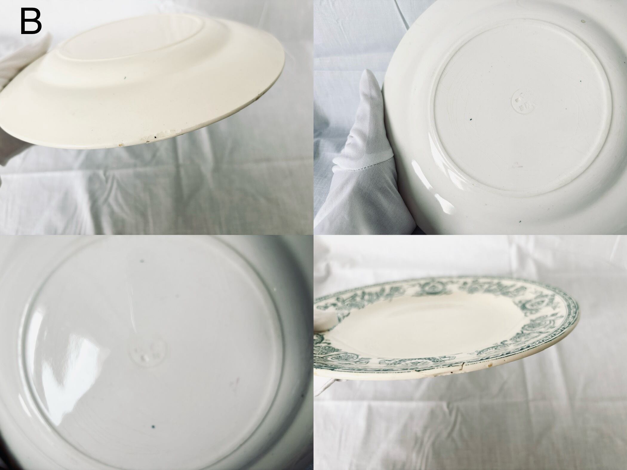 こちらの商品はどのプレートにも、経年劣化の色褪せ、小さなシミや傷がございます。これらを含めて、アンティークの味わいとしてお楽しみいただける、方向けの商品です。