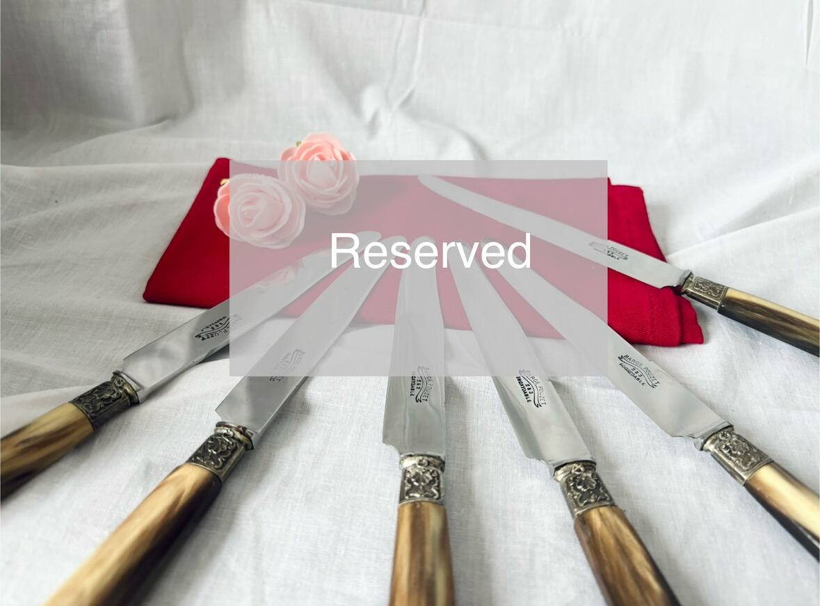 アイテムの状態として、サンプル写真に印をつけたように、ステンレスの刃先に所々劣化が見られます。また、持ち手の装飾部分は銀メッキで、個体により、劣化の度合いが異なります。完璧な状態をお求めの方にはお勧めできません。