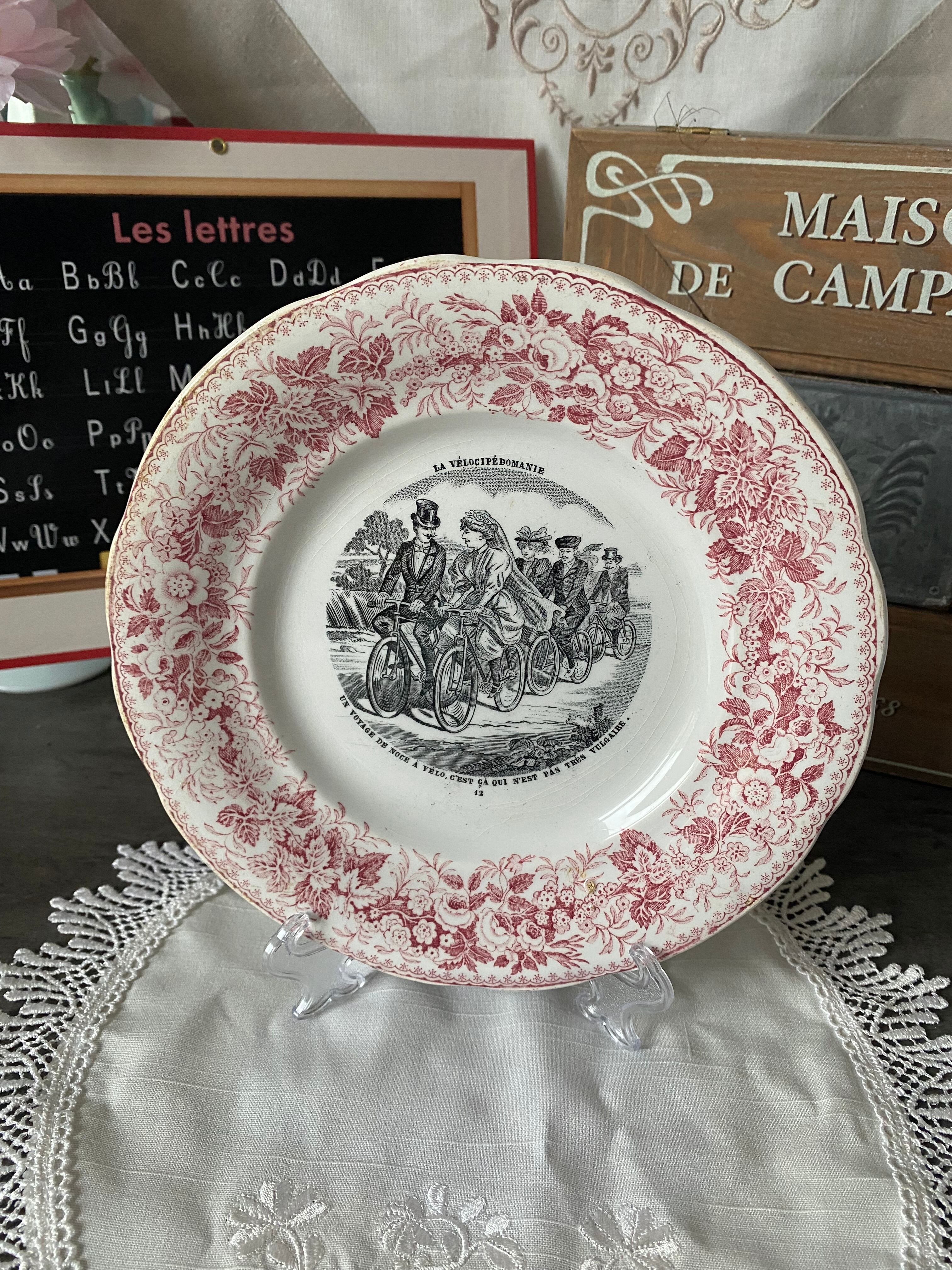 T様お取り置き / Creil et Montereau / picture plate / La Vélocipédomanie / honeymoon by bike / Antique / vintage / Decorative Plate / クレイユエモントロー / 絵皿