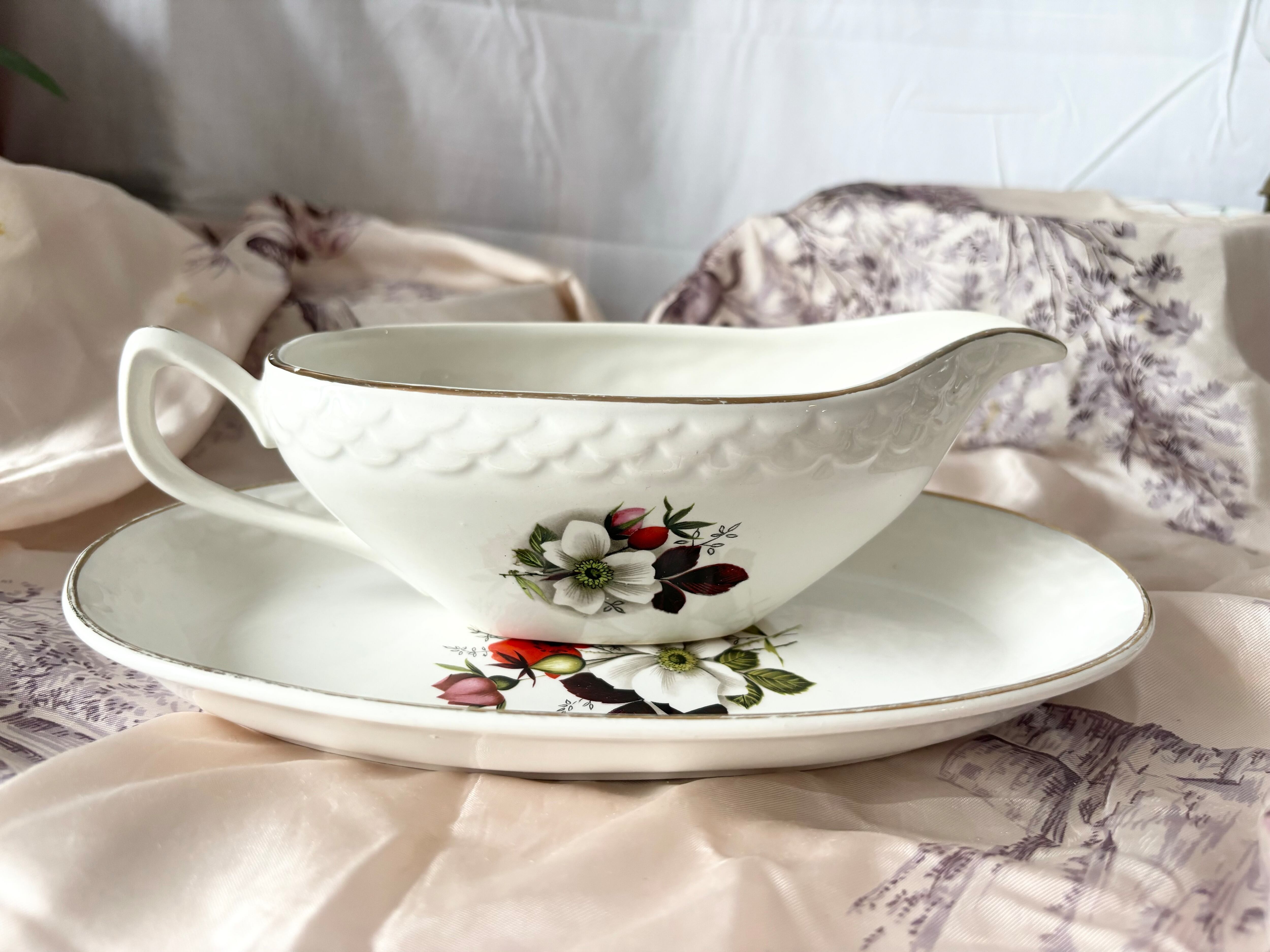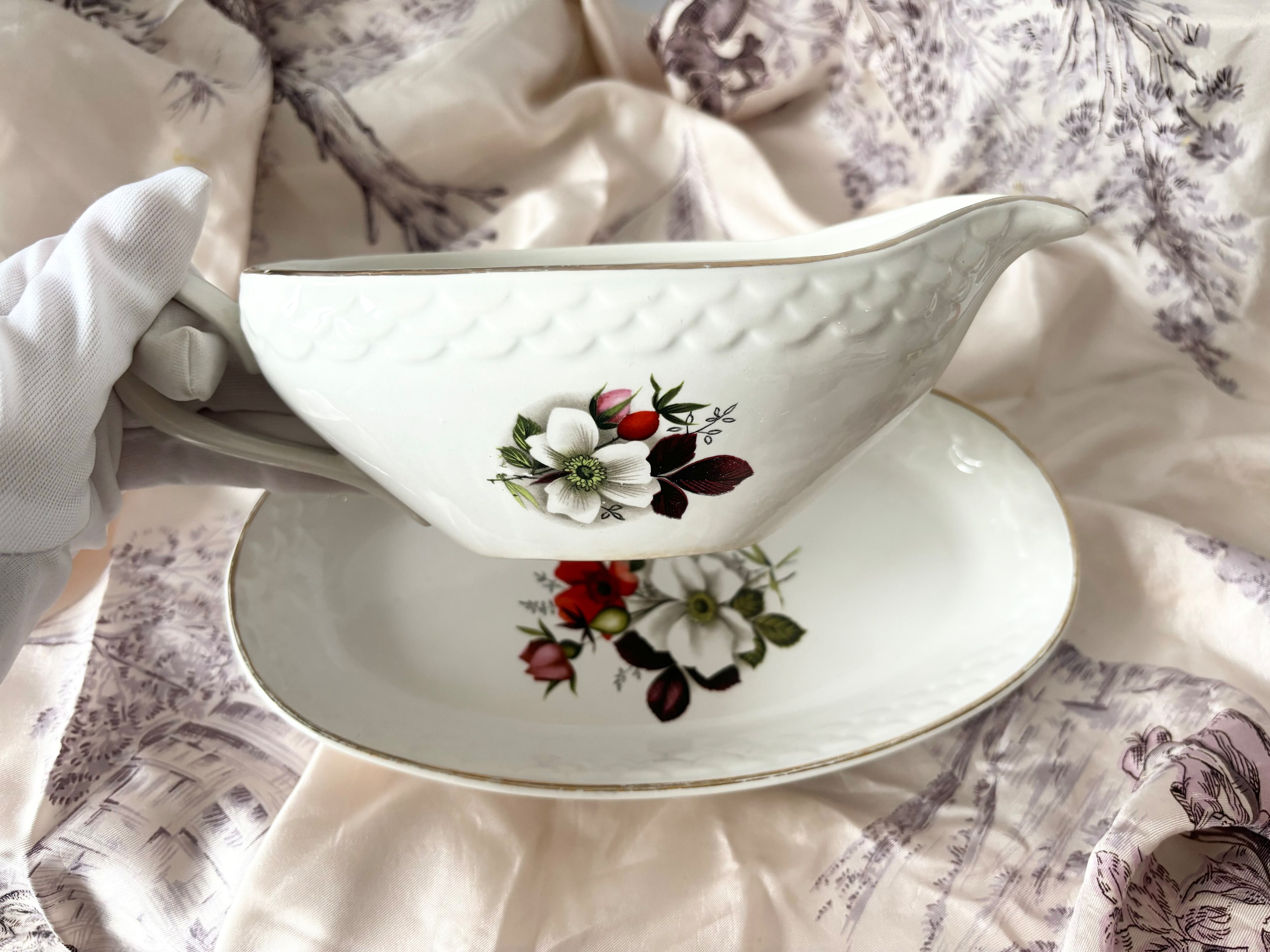 このセットには、サルグミンヌソーシエールとラヴィエの二つのデザインが含まれています。小さな花柄と繊細な波模様が特徴の、可愛いらしいデザインです。