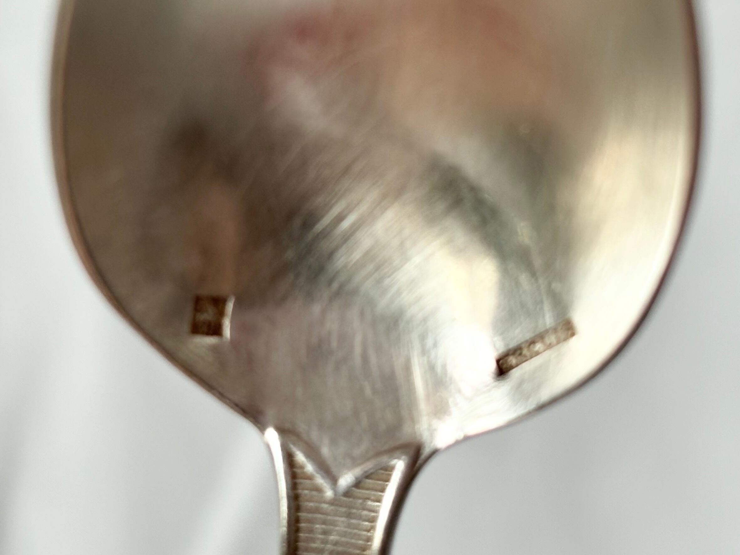 本アイテムは、持ち手の部分が細く、先端からスプーン裏までの装飾が見事なお品です。素材は銀メッキで、磨き上げると、ゴールドみのある、美しい光沢を放ちます。