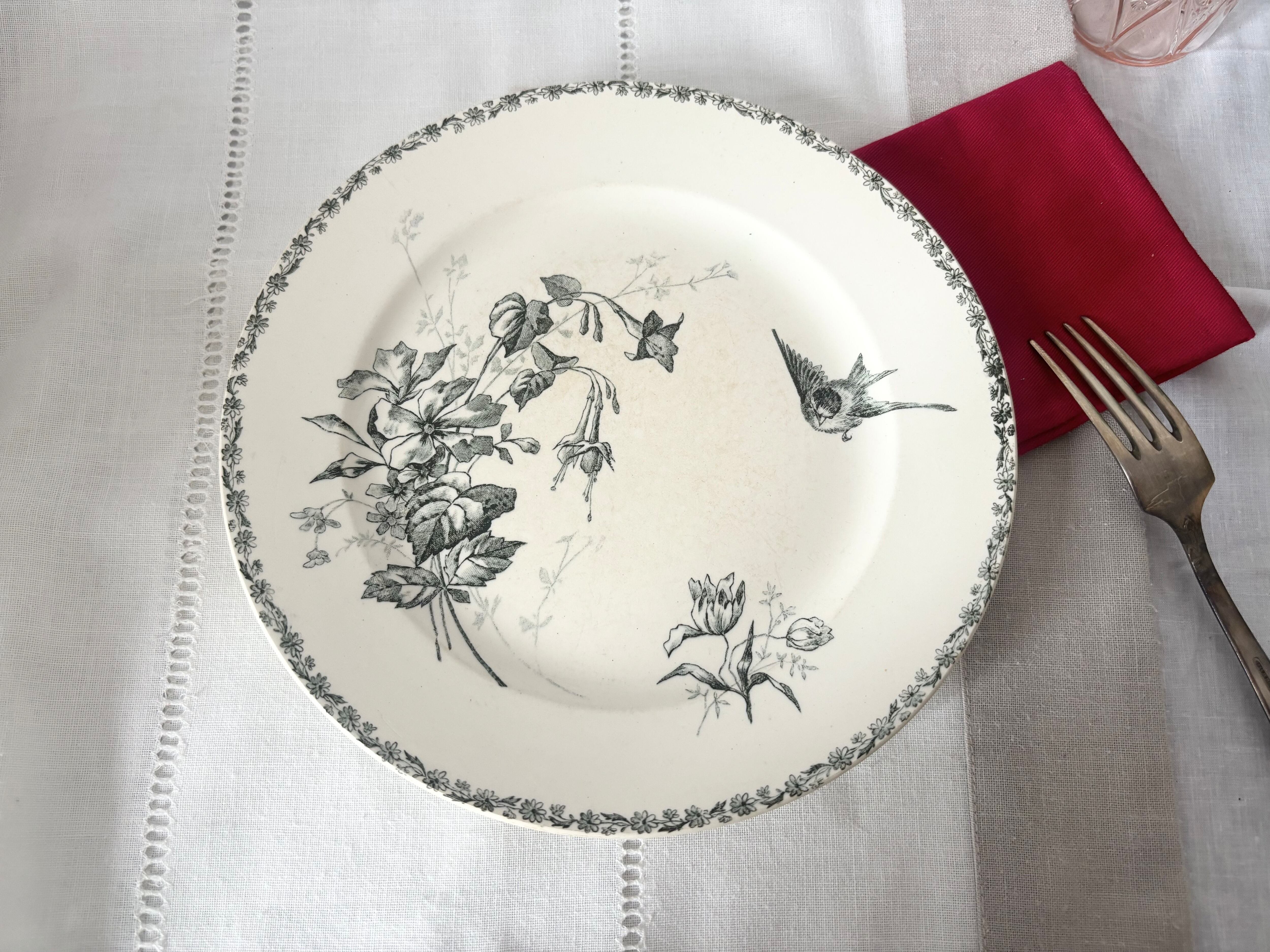 Grand Dépôt E. BOURGEOIS / France / 19 Century / フランス / アンティーク / 絵皿 / 鳥 / ディナープレート