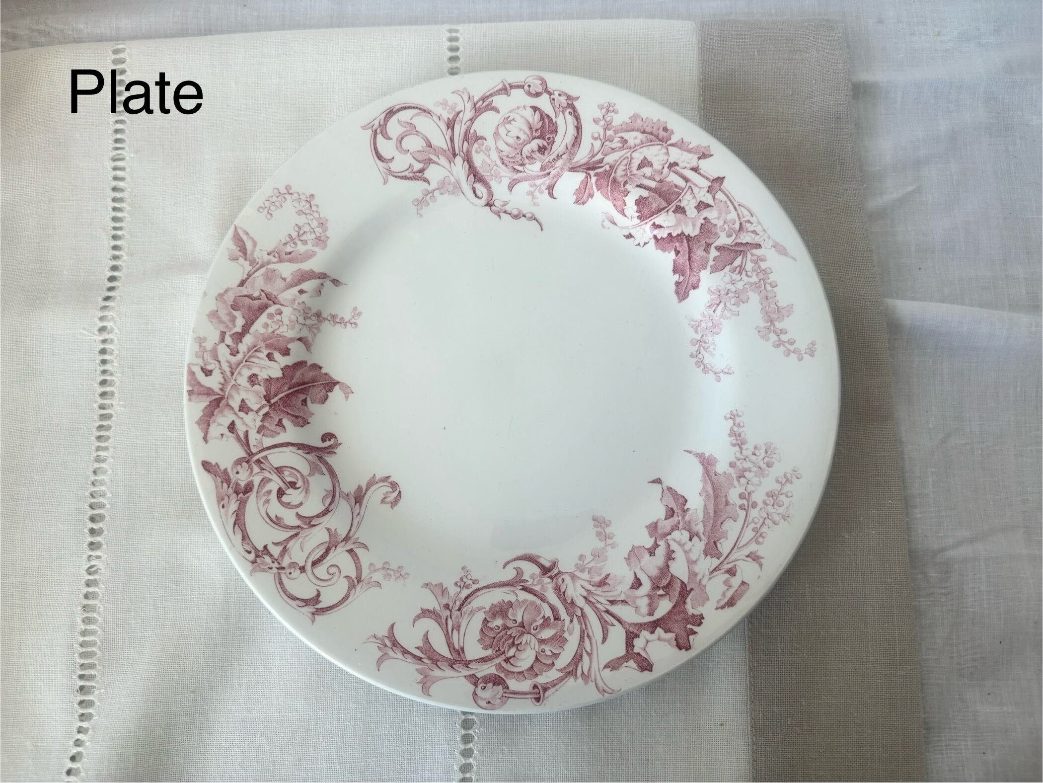 両アイテムとも、絵柄に掠れがあり、シャビーシックで、アンティーク感たっぷりのアイテムです。刻印はプレートにのみついています。
