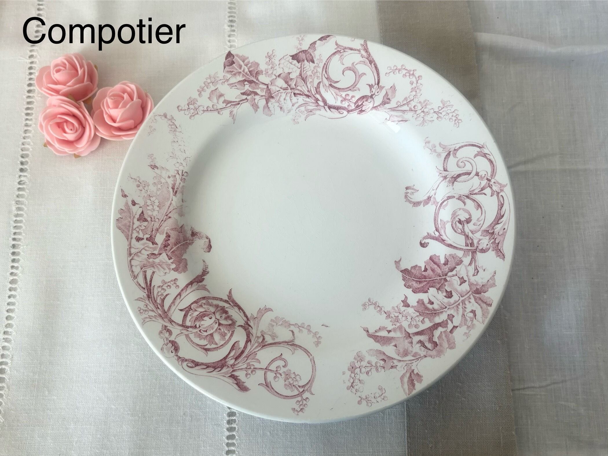 セット リュネヴィル コンポティエ&ディナープレート / Versailles / ヴェルサイユ / 赤 / フランス / アンティーク