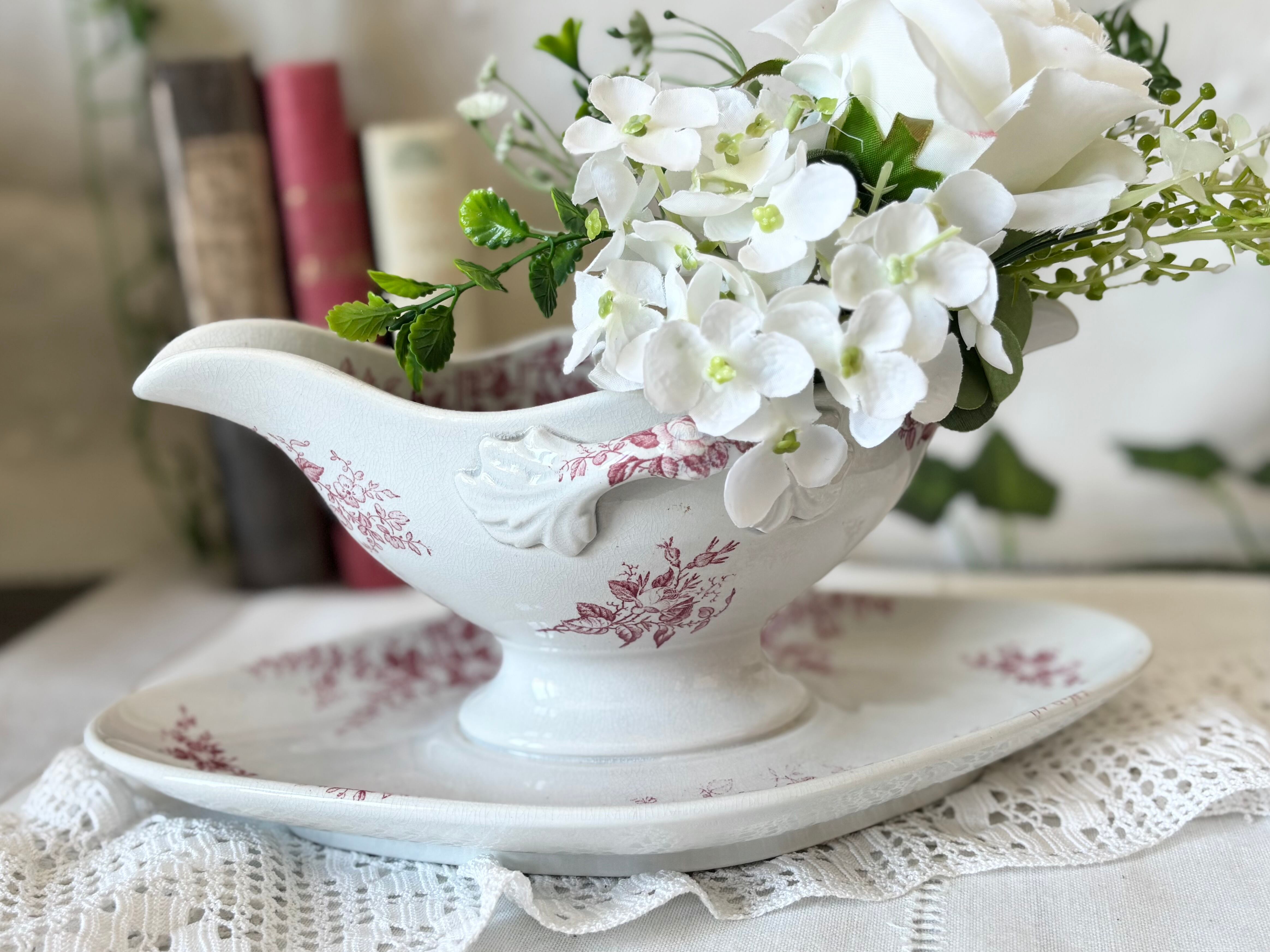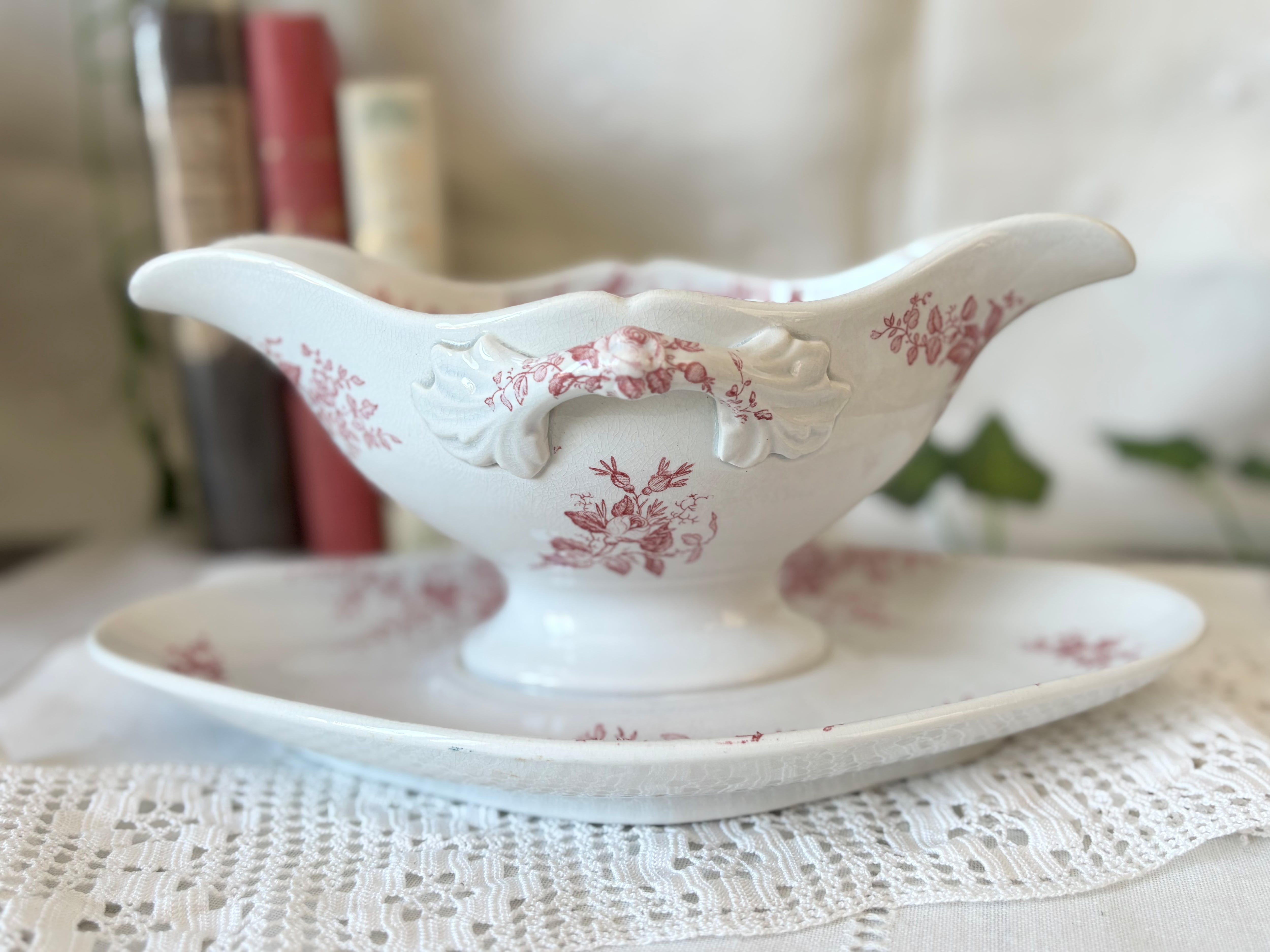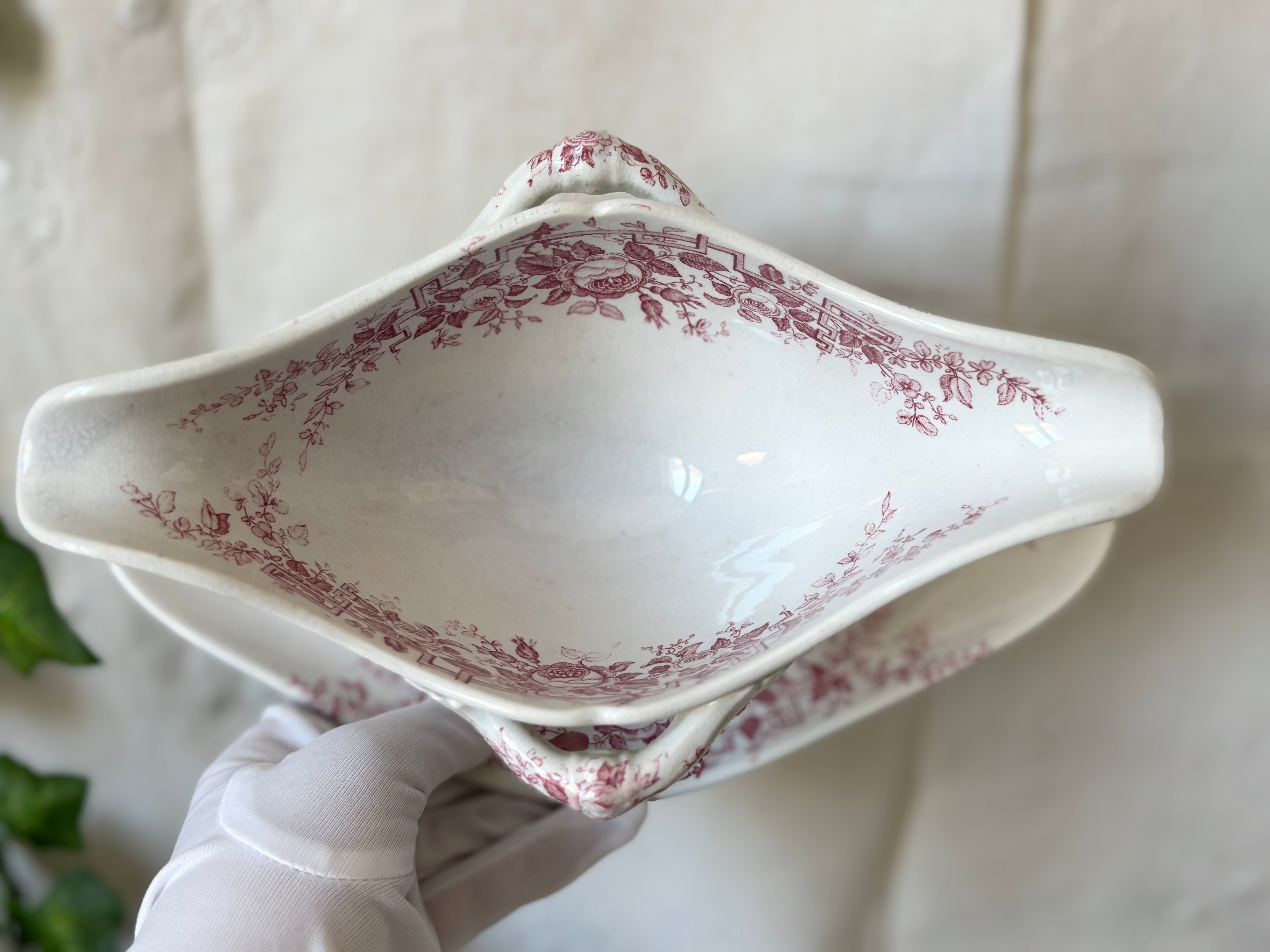 T. F. BADONVILLER / Roses / saucier / gravy boat / French antique / バドンヴィレ / ソーシエール / 赤 / フランス / アンティーク