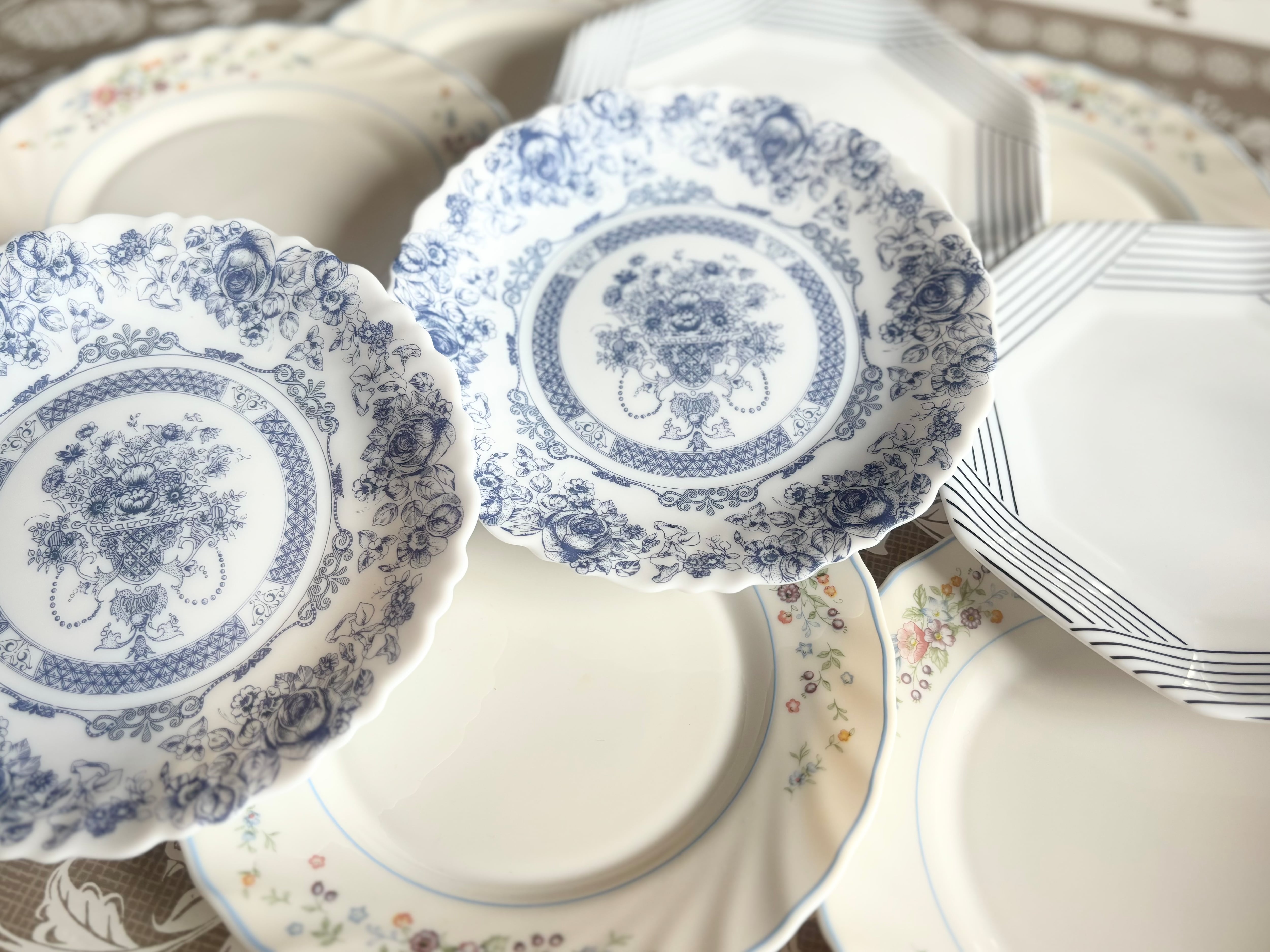 H様お取り置きA: 2枚セット / Arcopal(アルコパル) / 青いガーランド 花リム / デザートプレート / 70年代 / フランス