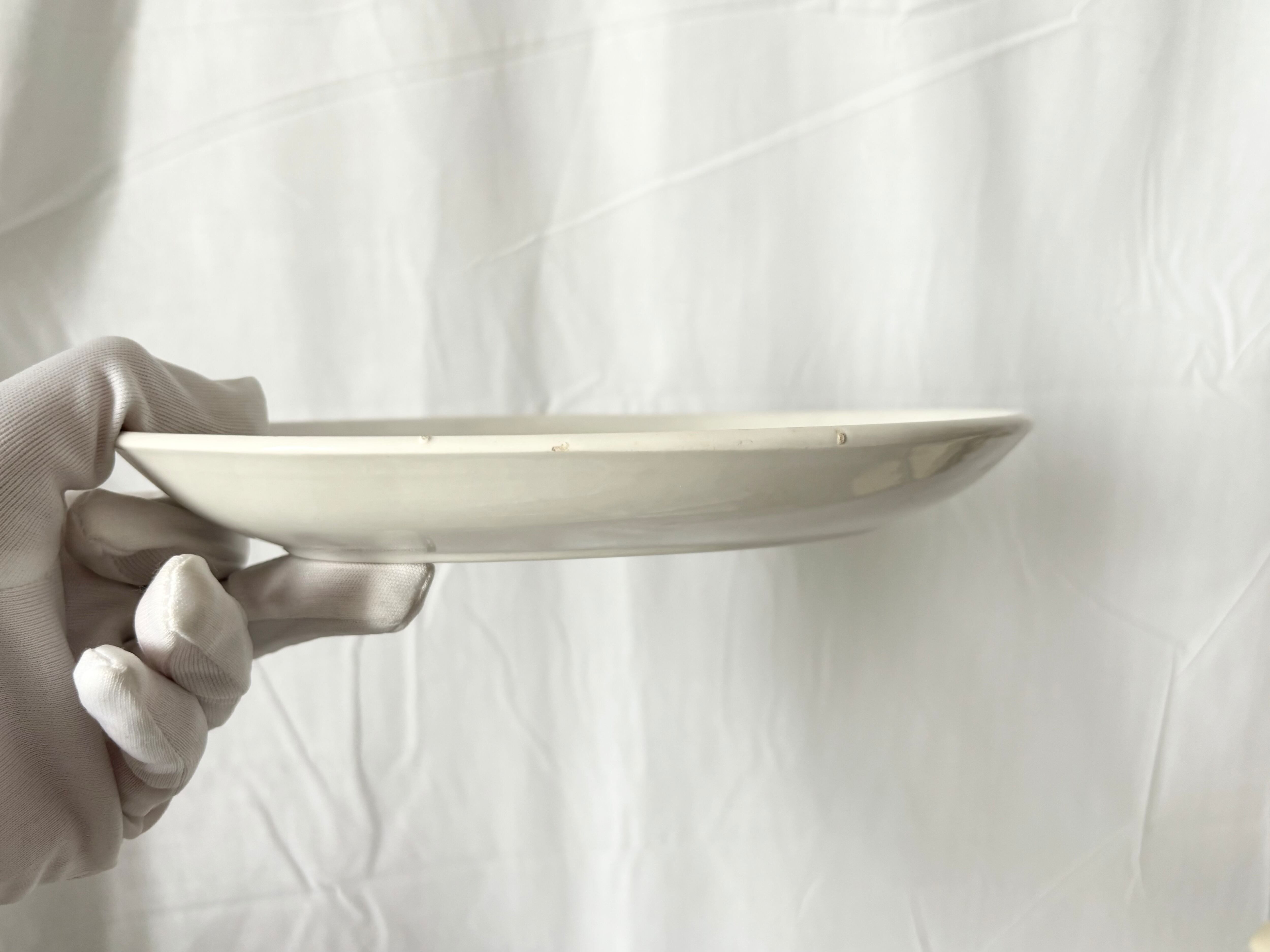 アイテムのコンディションとして、お皿の縁近くに短い貫入が幾つか見当たります。横からみた時に、制作時に出来たと思われる突起が幾つかあり、刻印が少し掠れていますが、大変艶やかで、良い状態のお品です