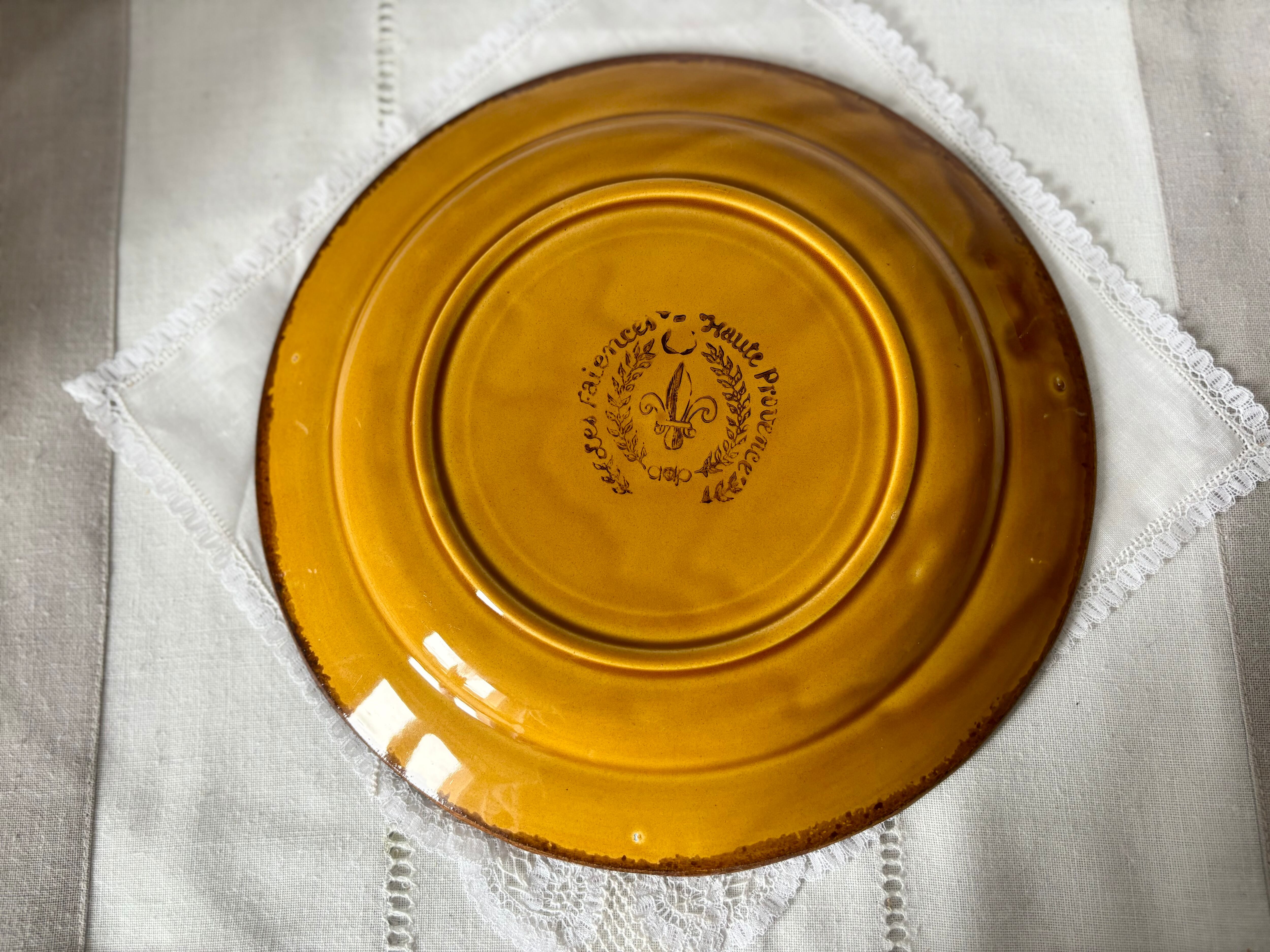 カトラリー傷が少しございます。横から見ると、お皿の淵に、擦れたような白い傷が幾つかございますが、かけ、ヒビ、シミの無い美品と言えます。裏にFaïence Haute Provence, Adp の刻印がございます。