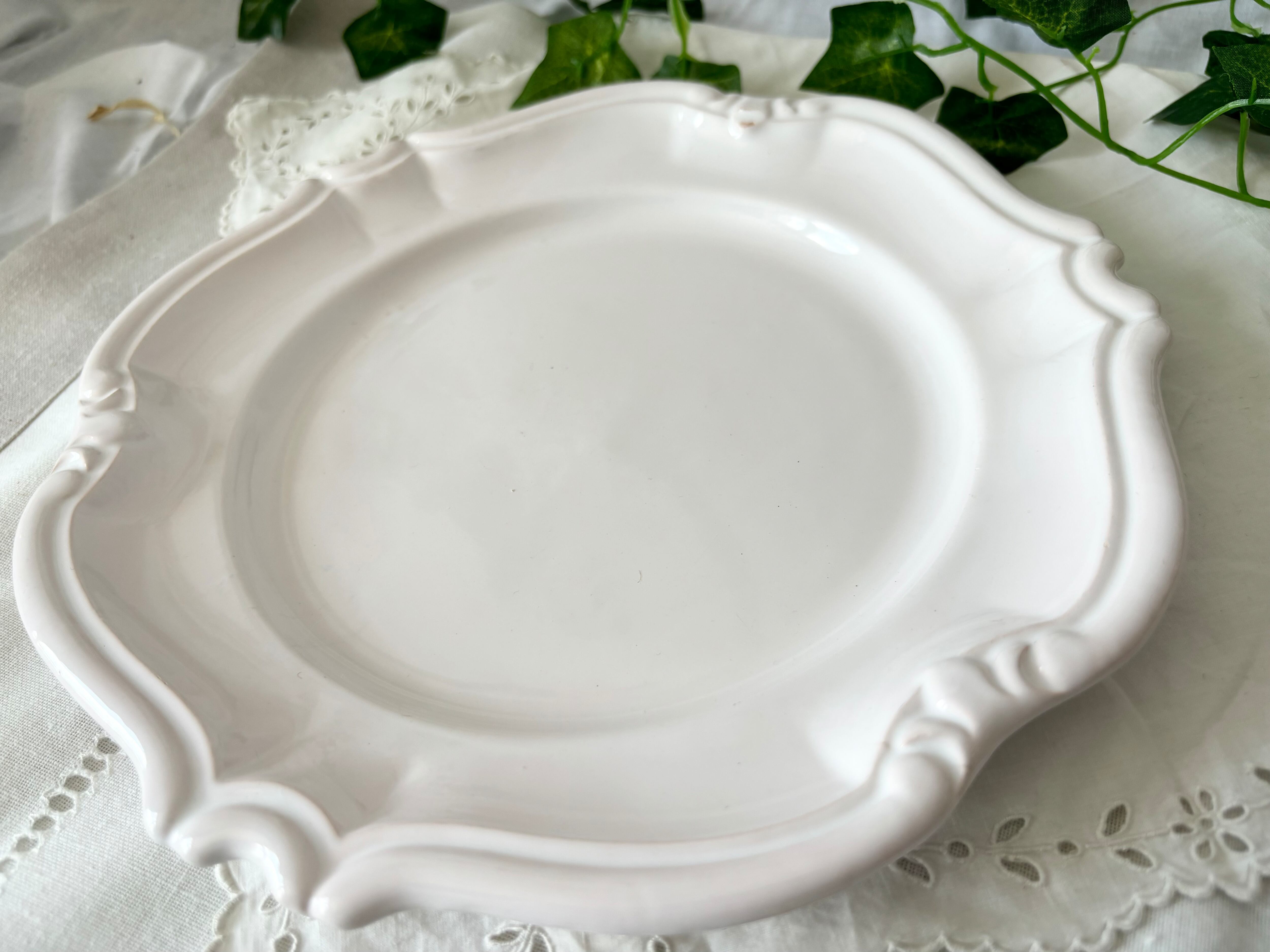 Moustiers(ムスティエ)/ ディナープレート / 花リム / 白 / ほんのりピンク / フランス / アンティーク
