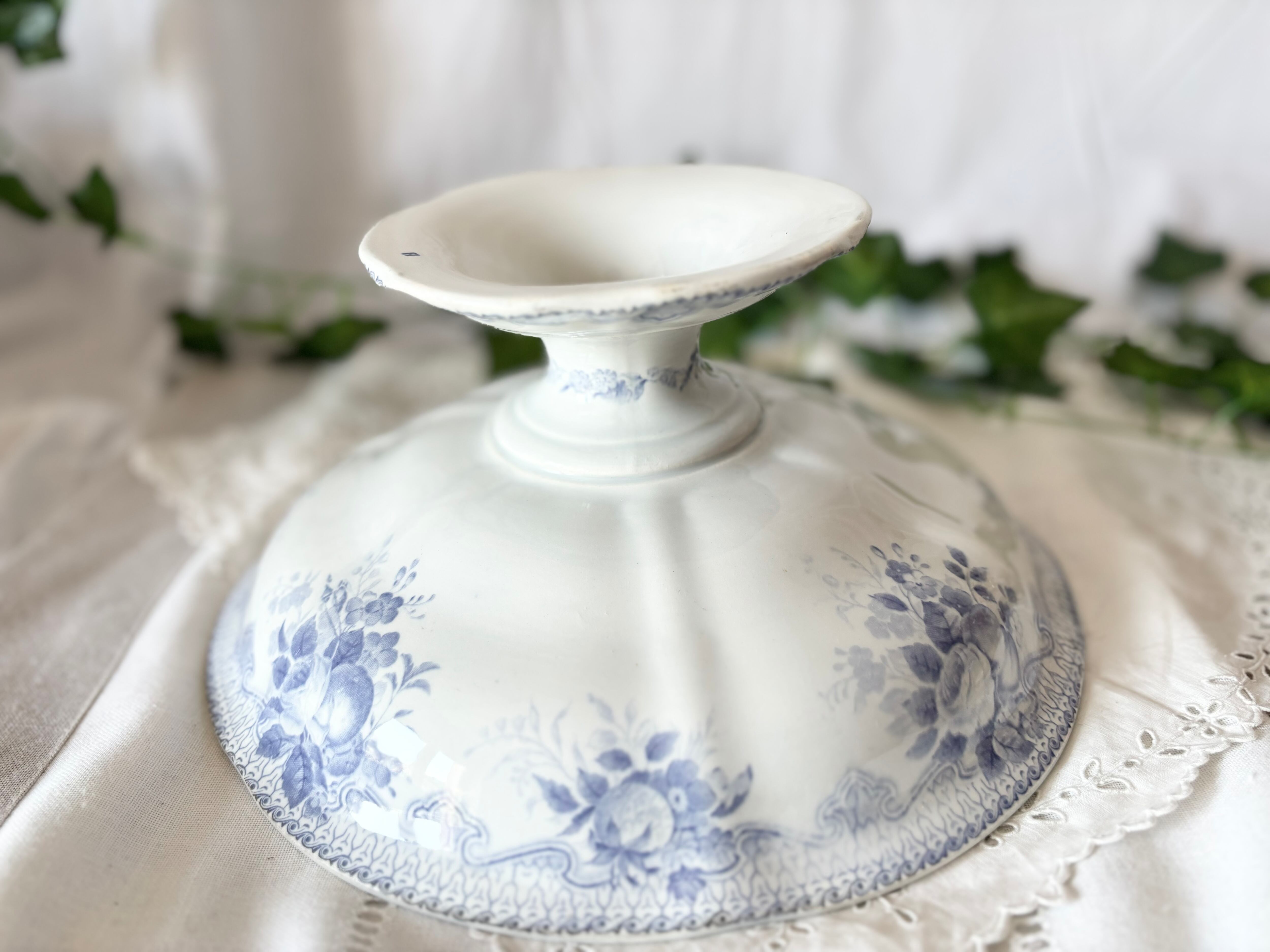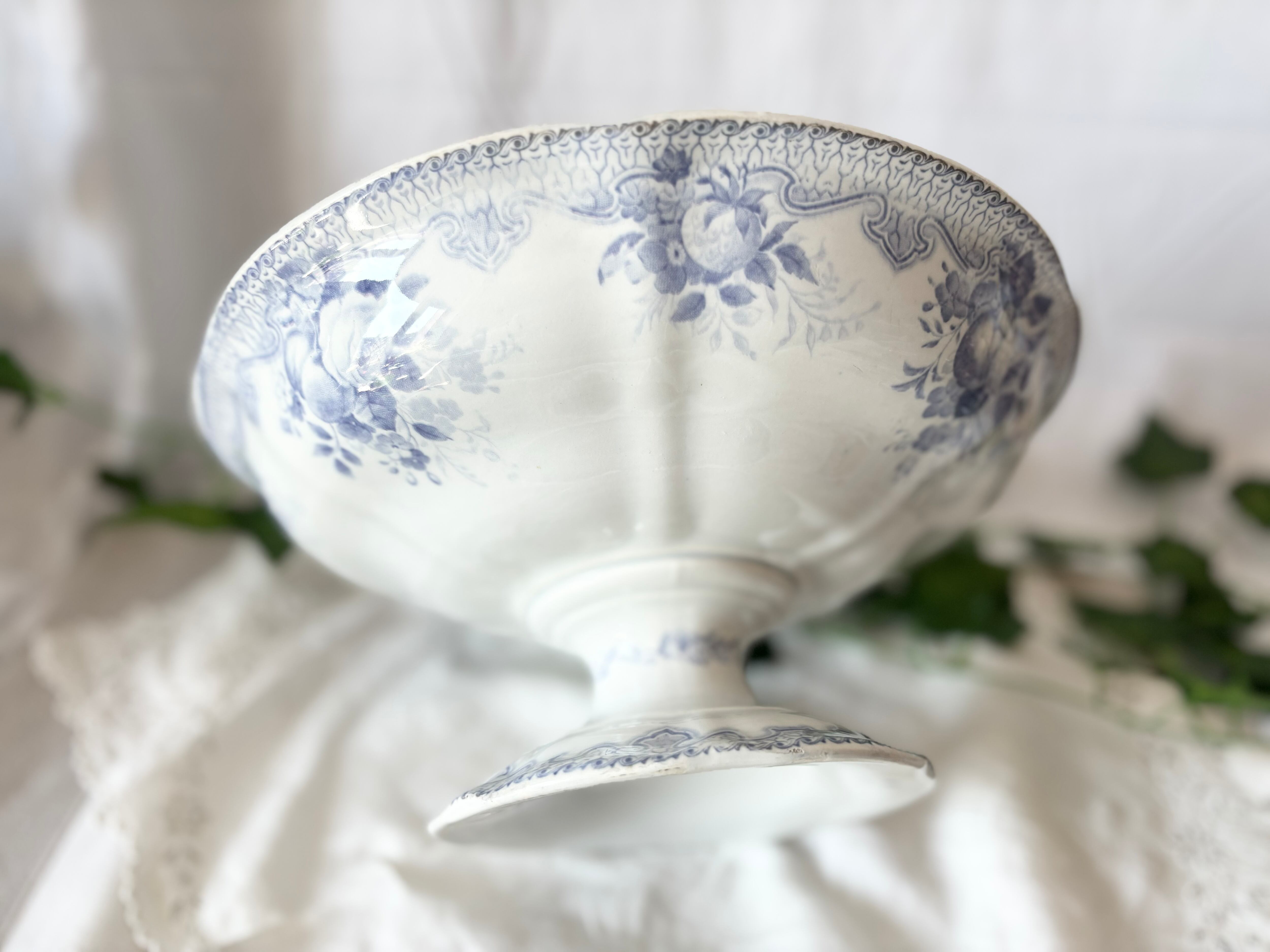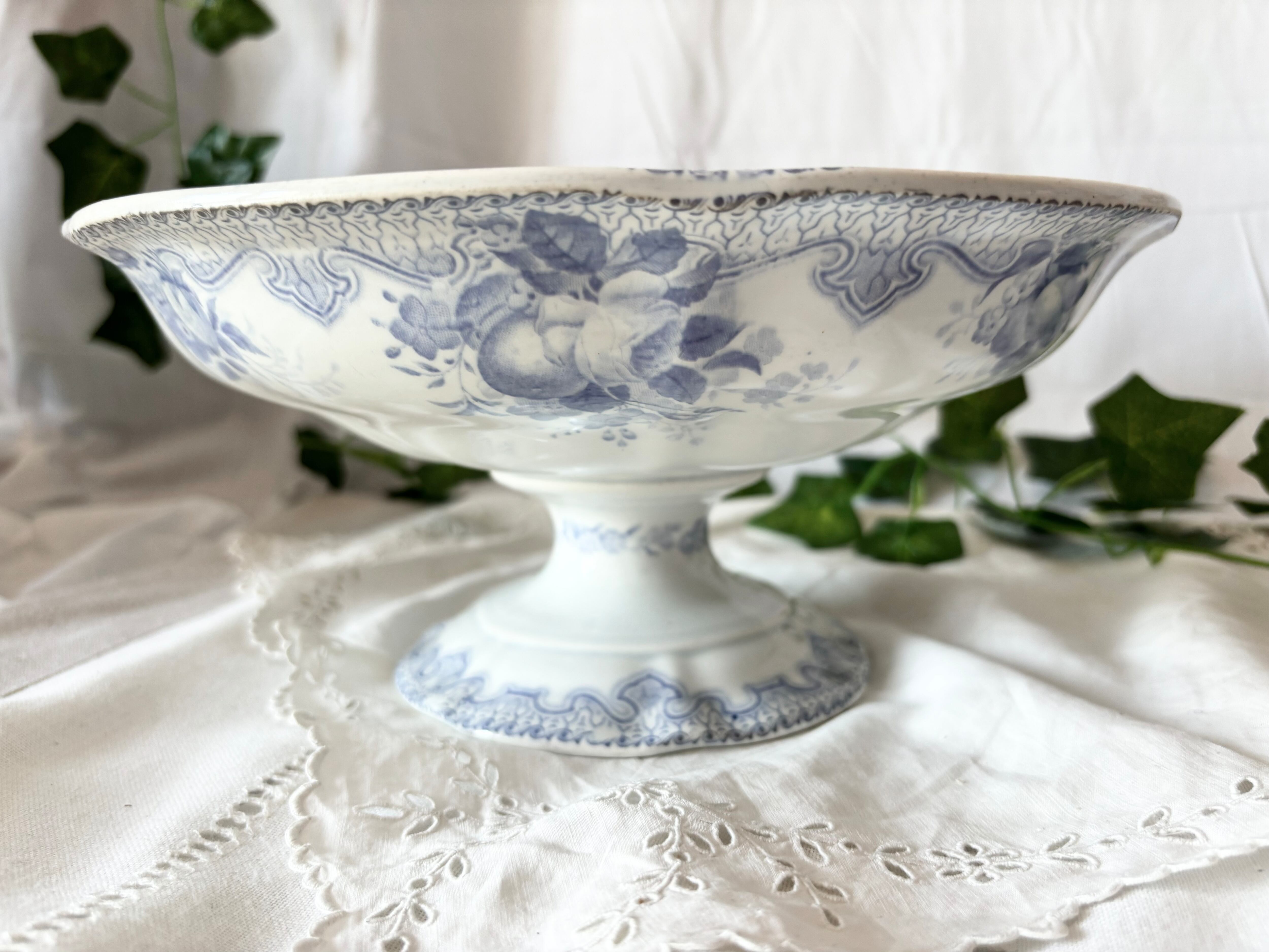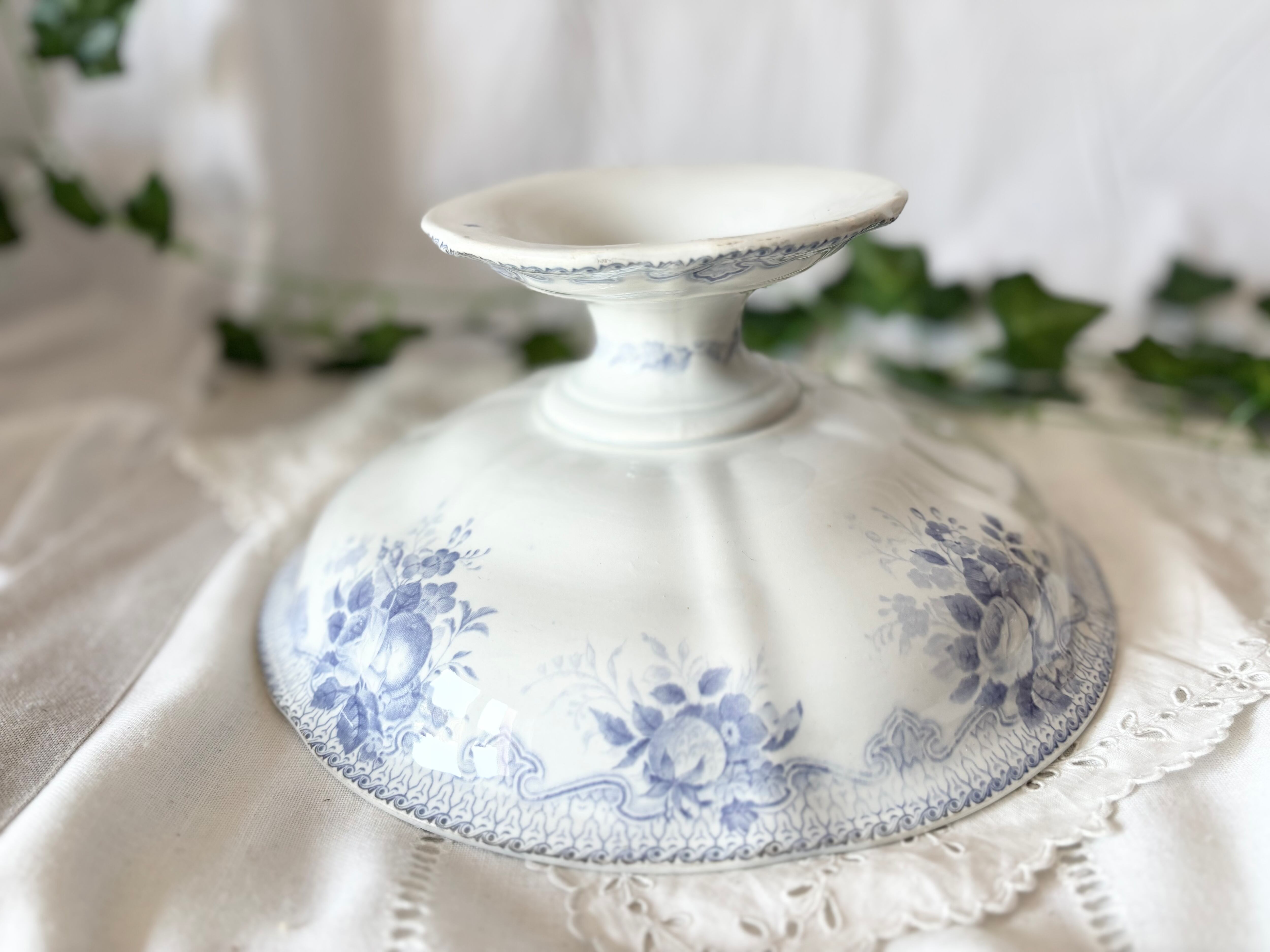 Creil Montereau(クレイユ・エ・モントロー) / コンポティエ / FB L.M & Cie / 花とフルーツ / 青紫 / フランス / アンティーク