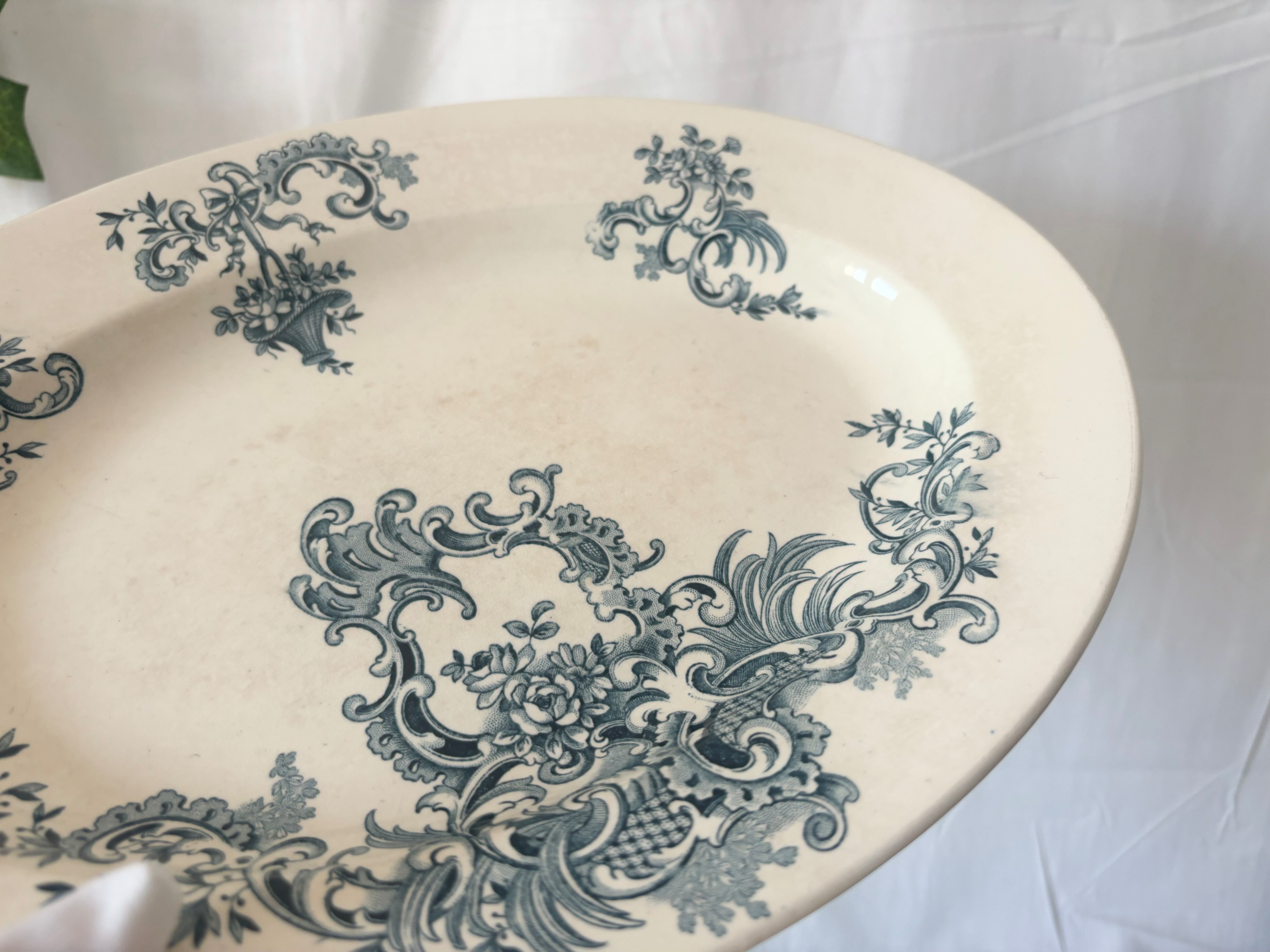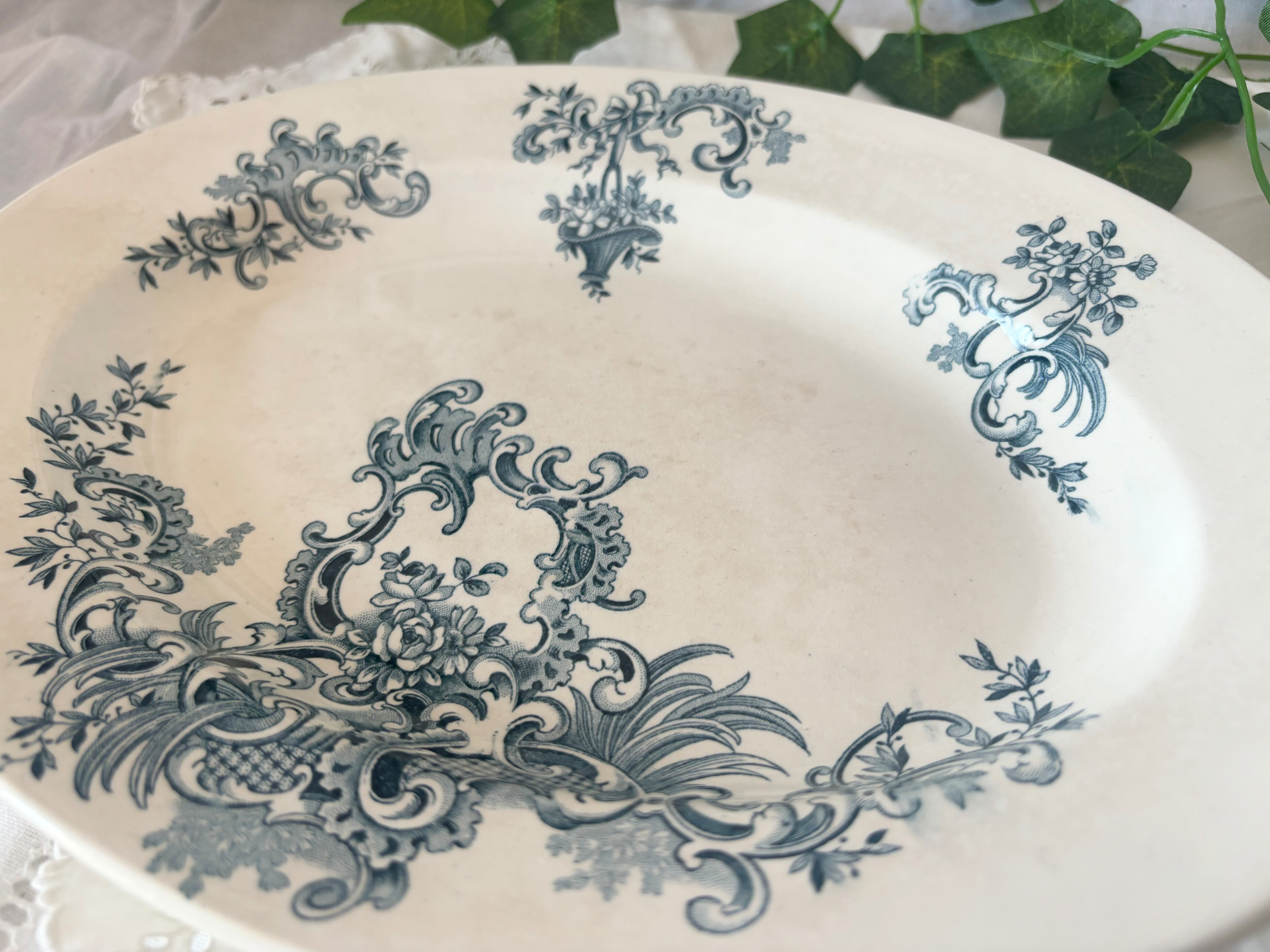 オーバルプレートの刻印より、ボッホのベルギー時代、1880-1920年頃のお品と判別できます。ラヴィエに刻印はございませんが、スタイルより、2点とも同時代のお品物と推定されます。