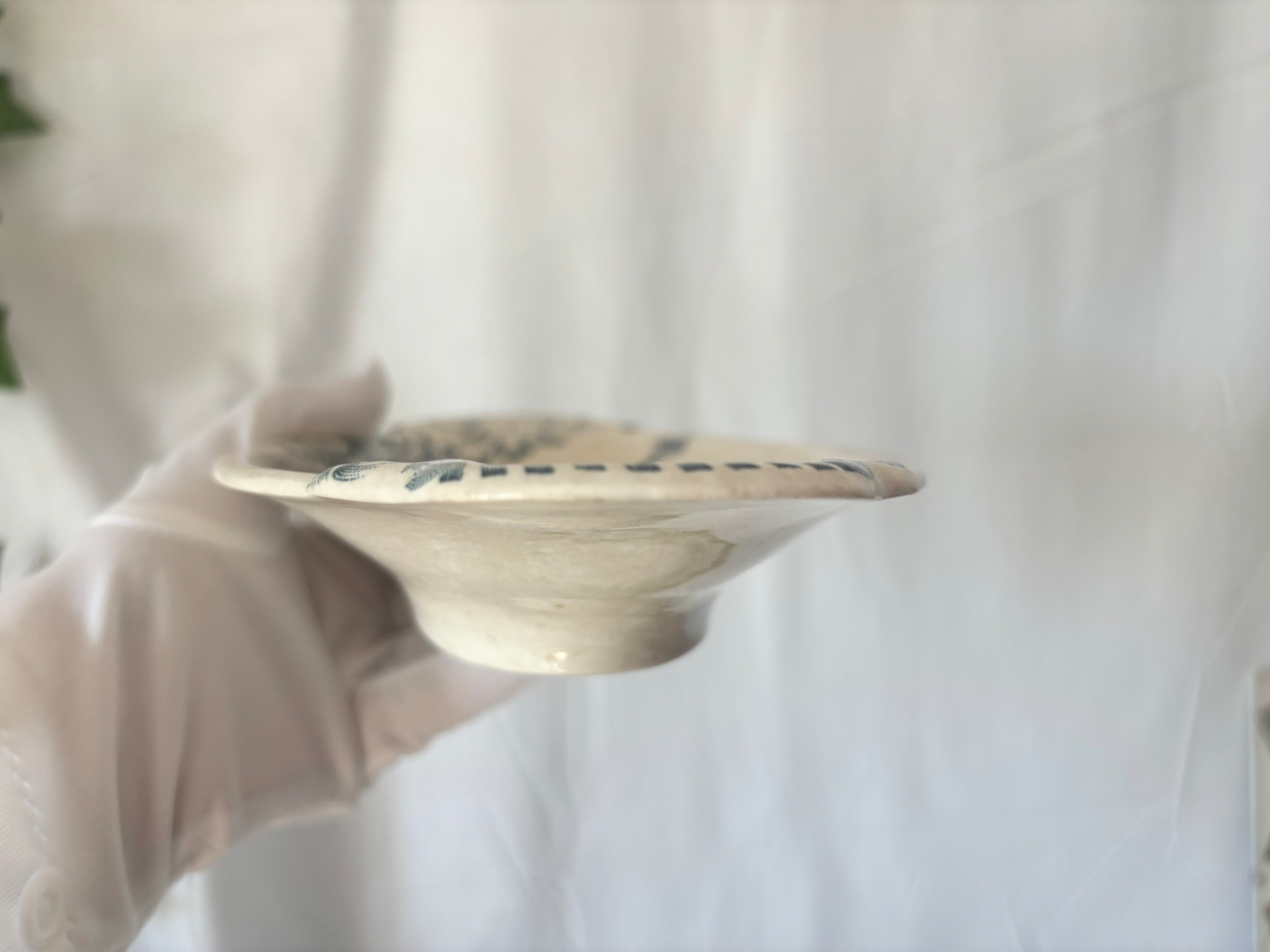 器全体に経年劣化の変色がございます。また、クレイジングが特に裏側で顕著で、茶色く変色しています。絵柄に掠れもございますが、欠けやひびも無く、大変艶やかで、アンティークとしてとても良い状態のお品と言えます。