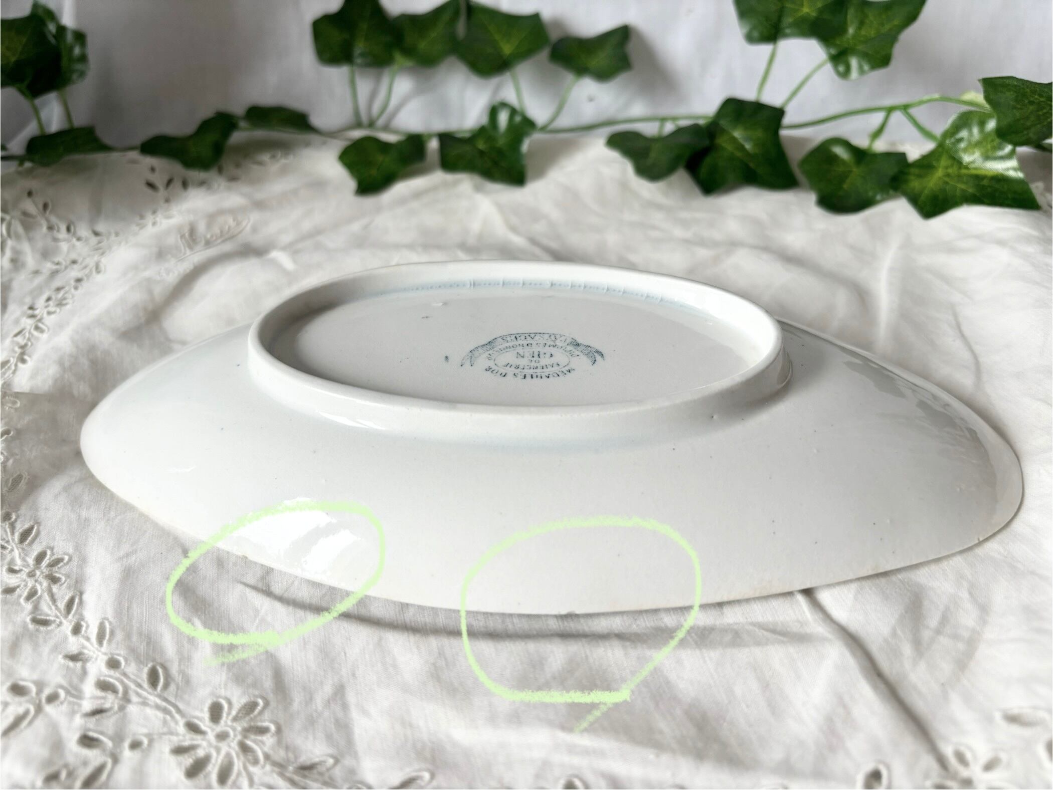 表面のに極小さな茶色がかった傷、絵柄の掠れがございます。器の縁に小さな欠けと、へこみ傷が見当たります。裏側の端がぼんやりと変色し、刻印が薄れていますが、大変艶やかで、良い状態のお品といえます。