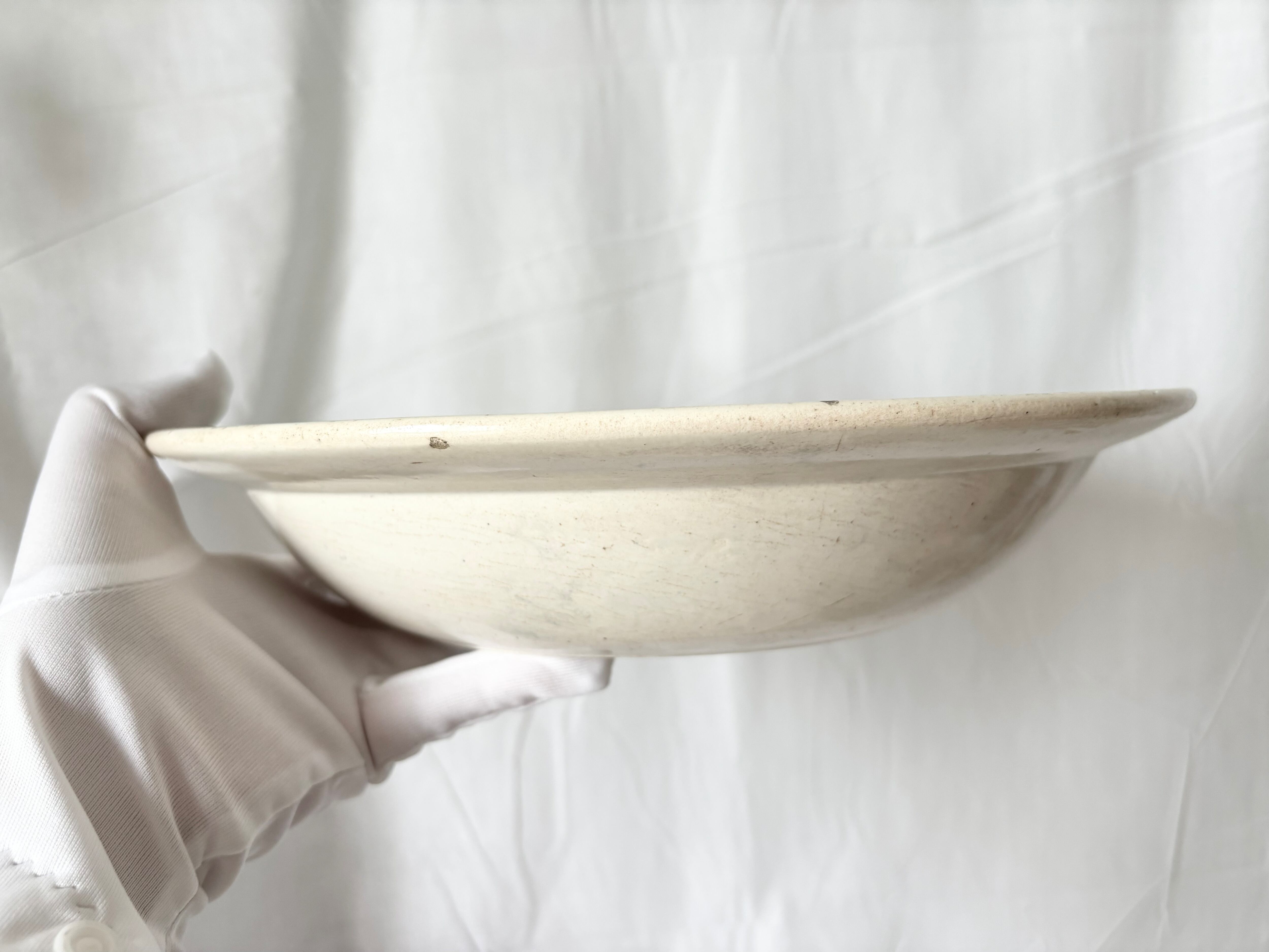 ボウルの縁にいくつかキズがございます。裏側には掠れた刻印があり、小傷が多くございます。また、裏側に薄い色飛びと、恐らく製作時のエナメルのムラにより、白く膨らんでいる箇所がいくつかございます。