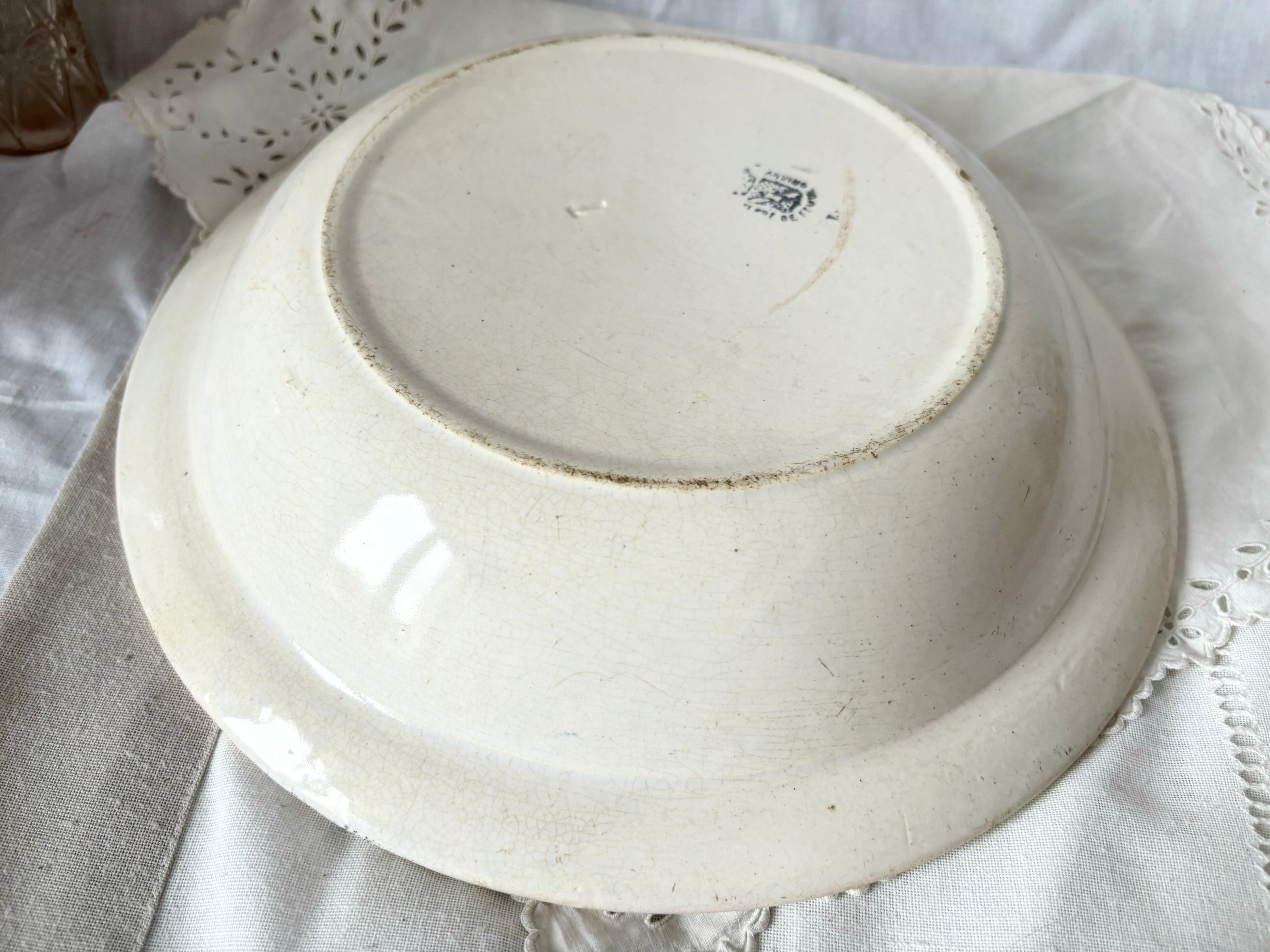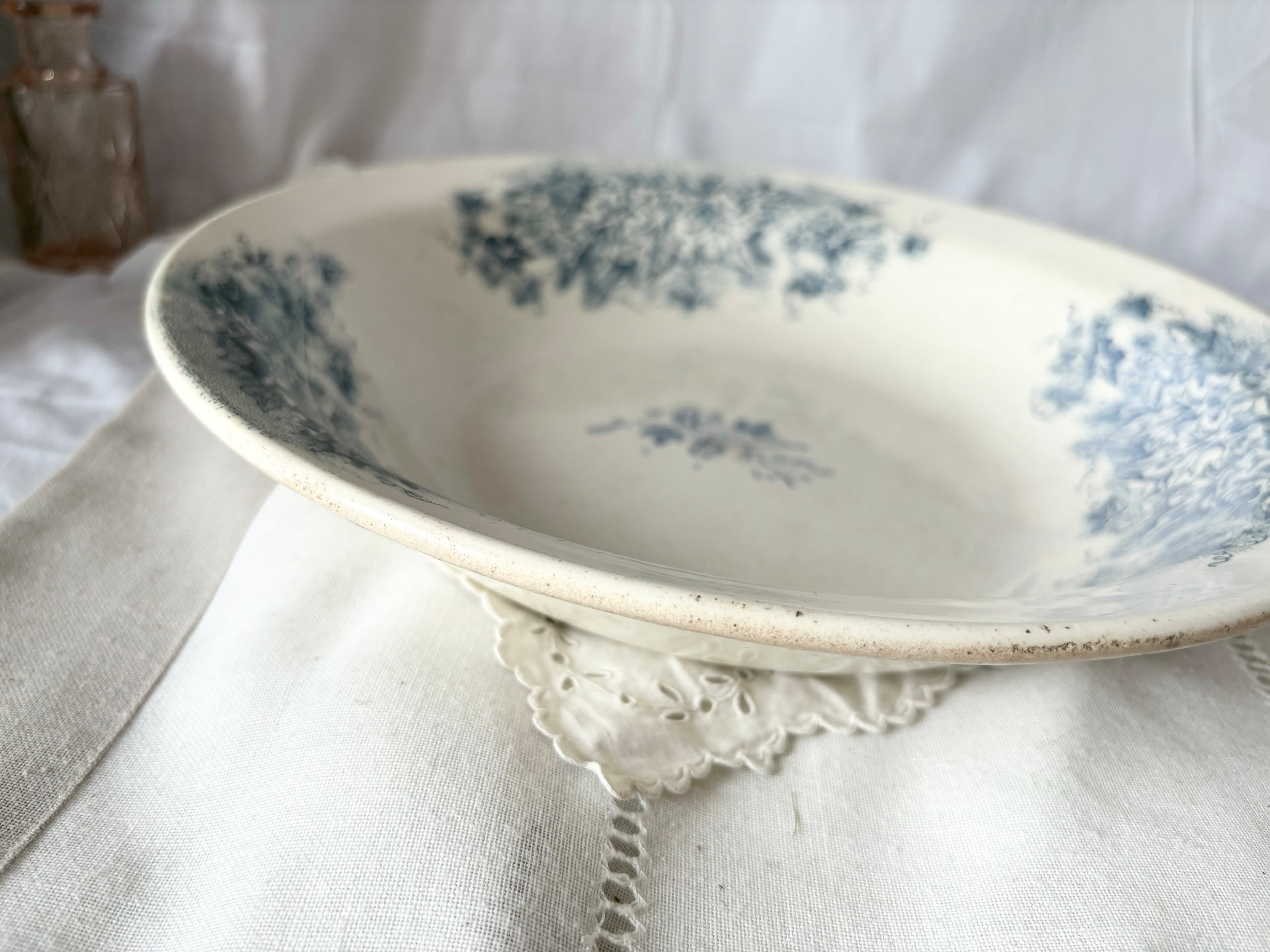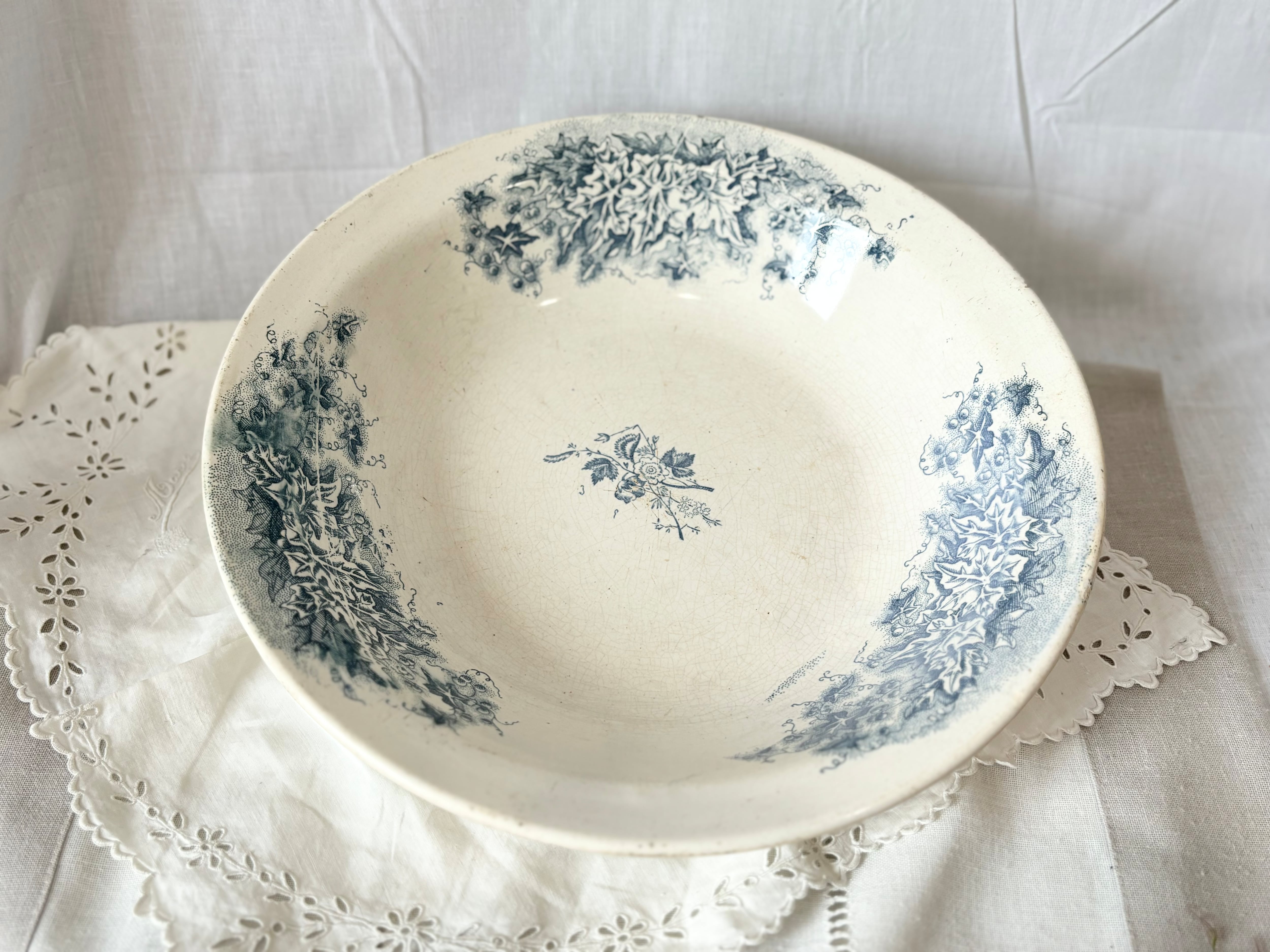 29cm large bowl / Terre de feu de Grigny / Blue / grapes / art nouveau France / Antique / Vintage / テールドフー / ボウル / 青 / フランス / アンティーク