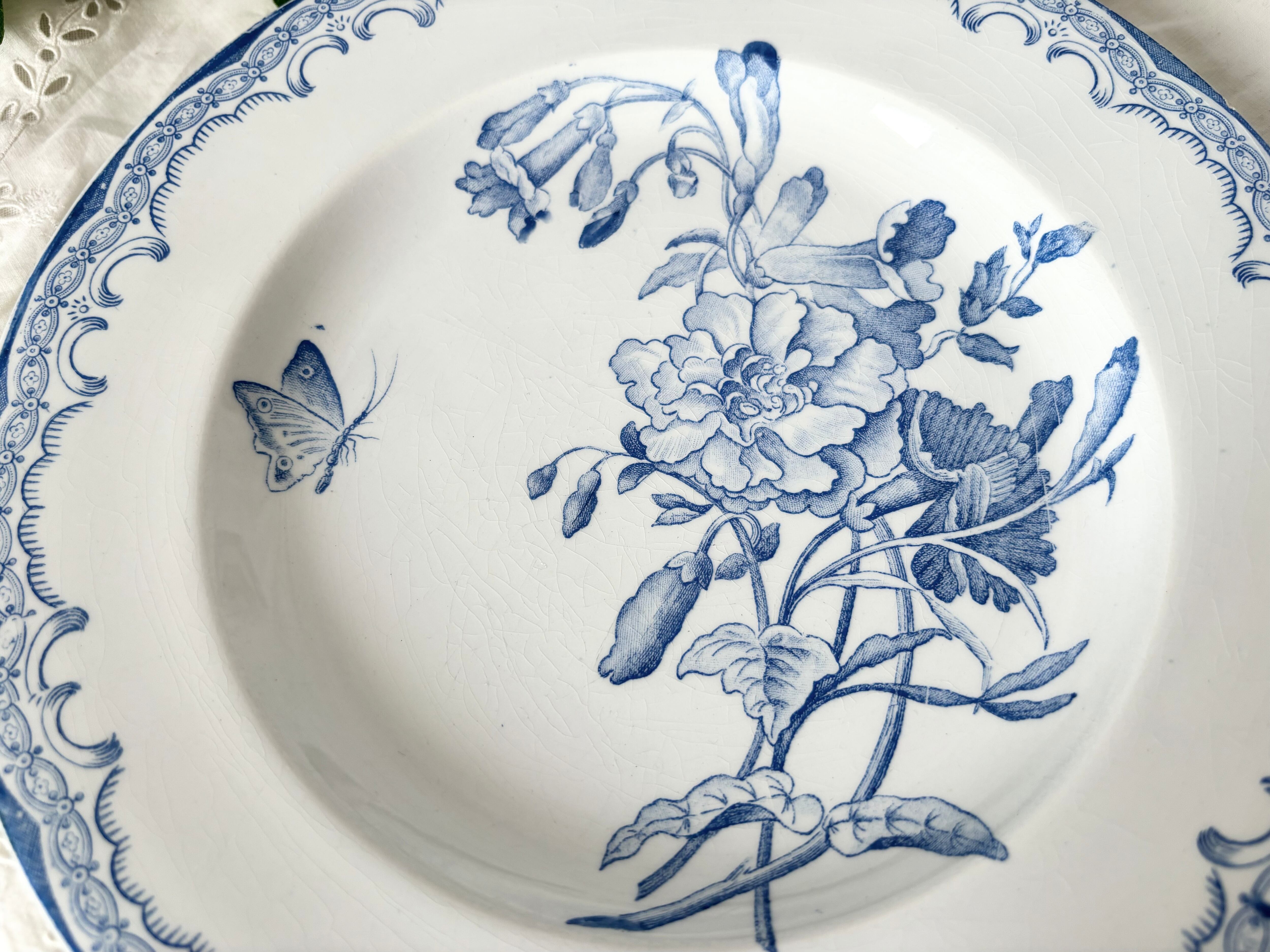 C : GIEN / 19世紀 / 蝶と花 / 青 / プレート / 半深皿 / フランス / アンティーク