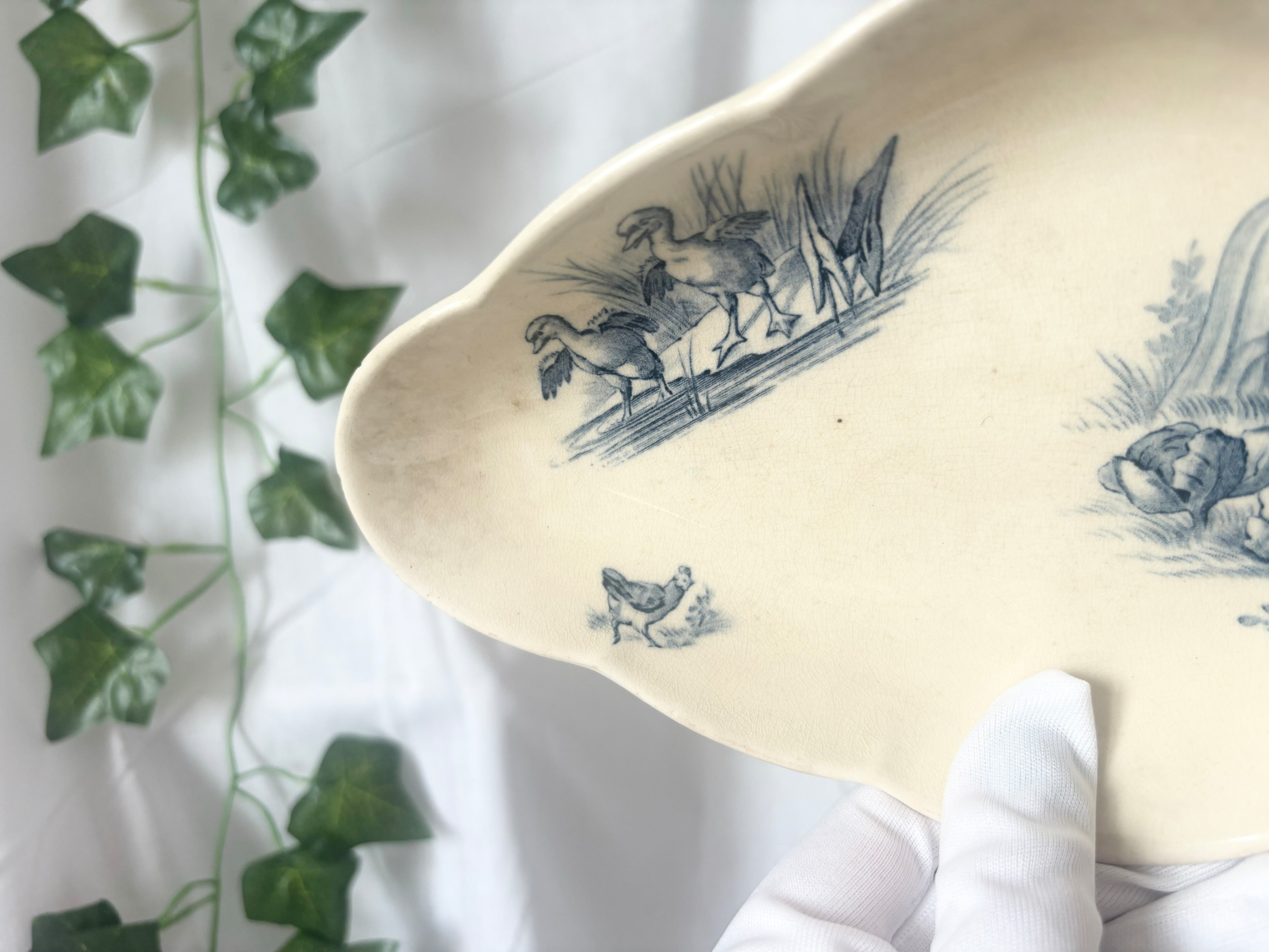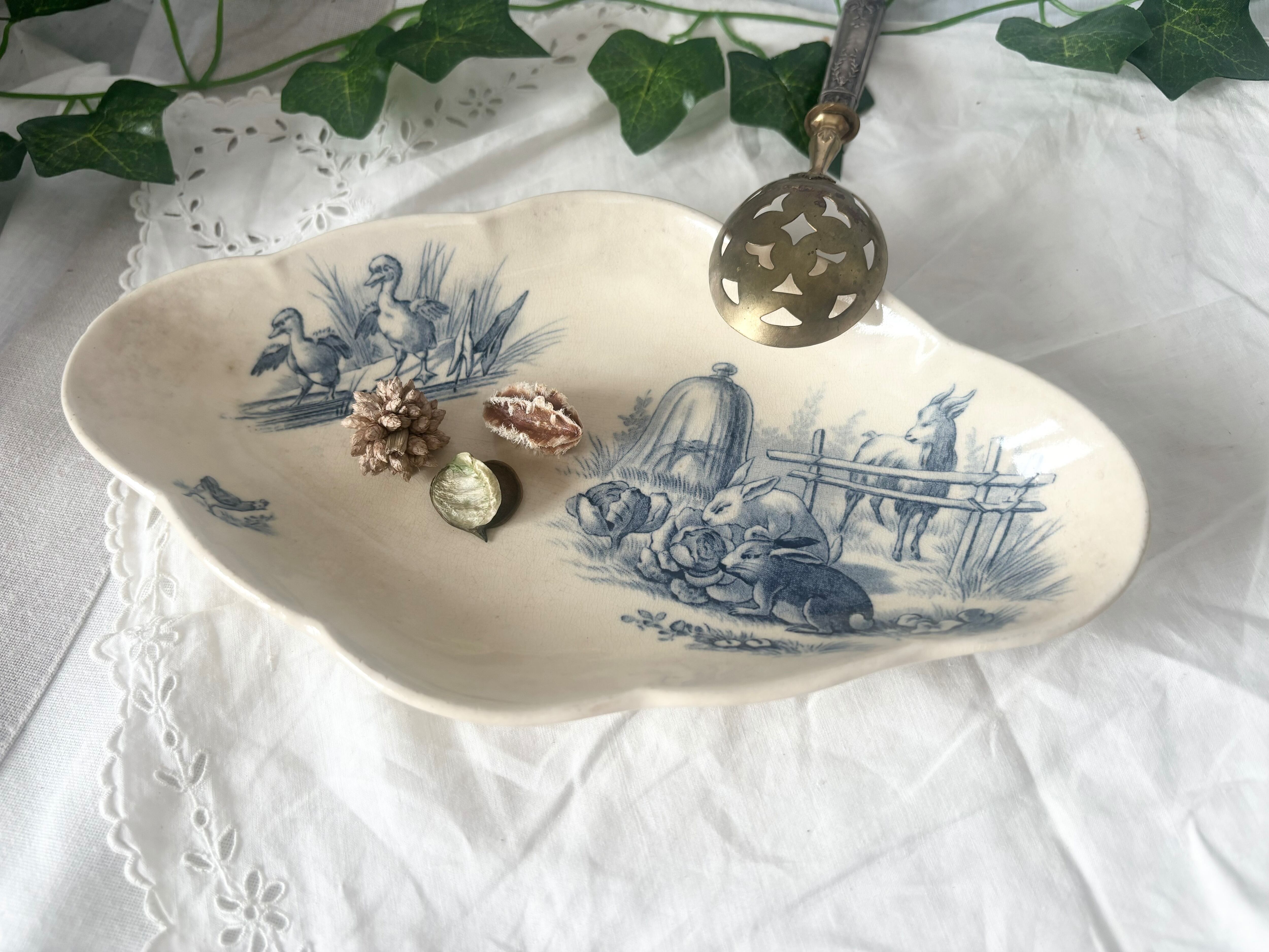 A: Terre de fer / Rustic / ravier / France / 19 Centuries / Antique / vintage / blue / rabbit birds /テールドフェール / ラヴィエ / 青 / フランス/ アンティーク