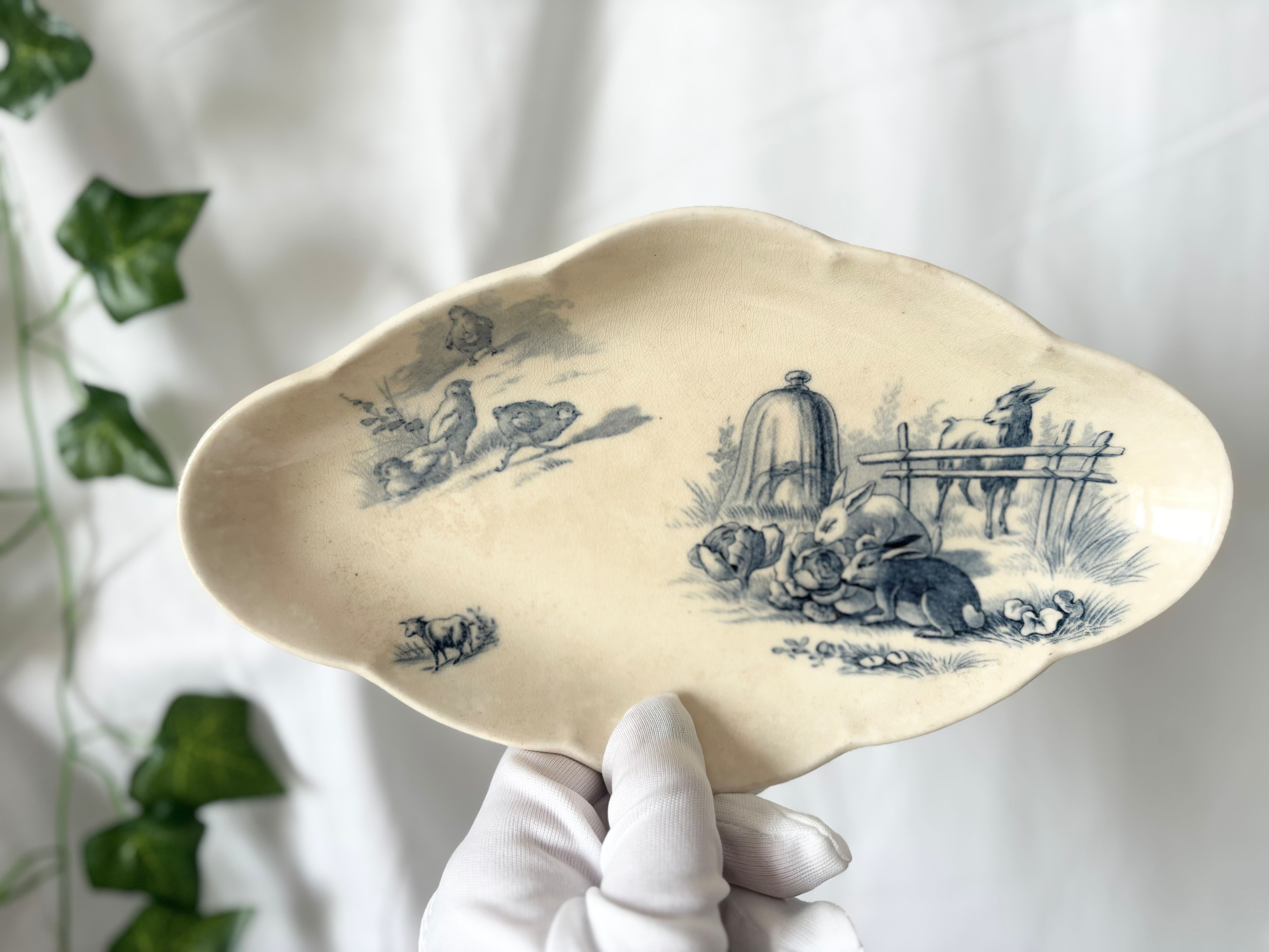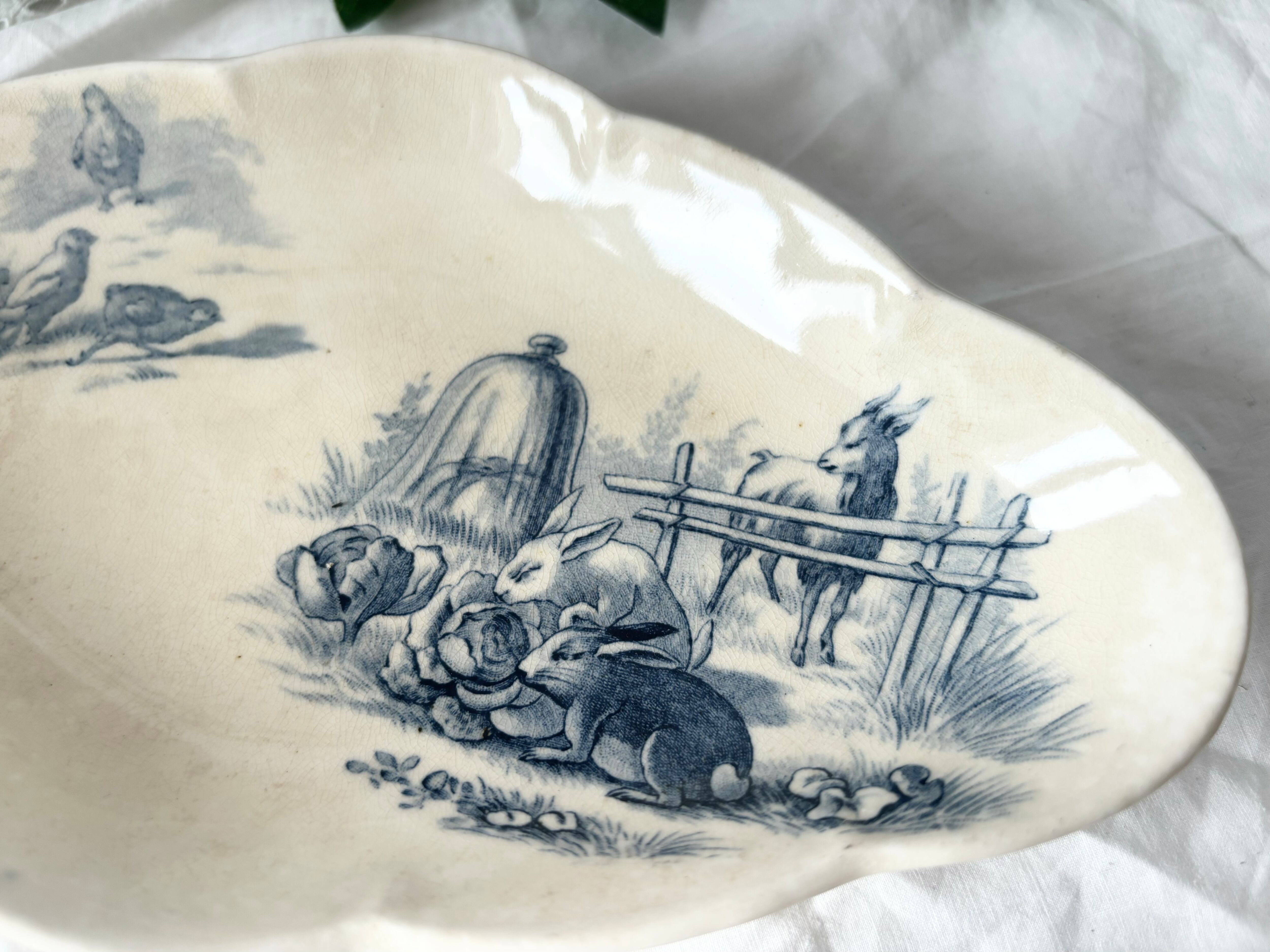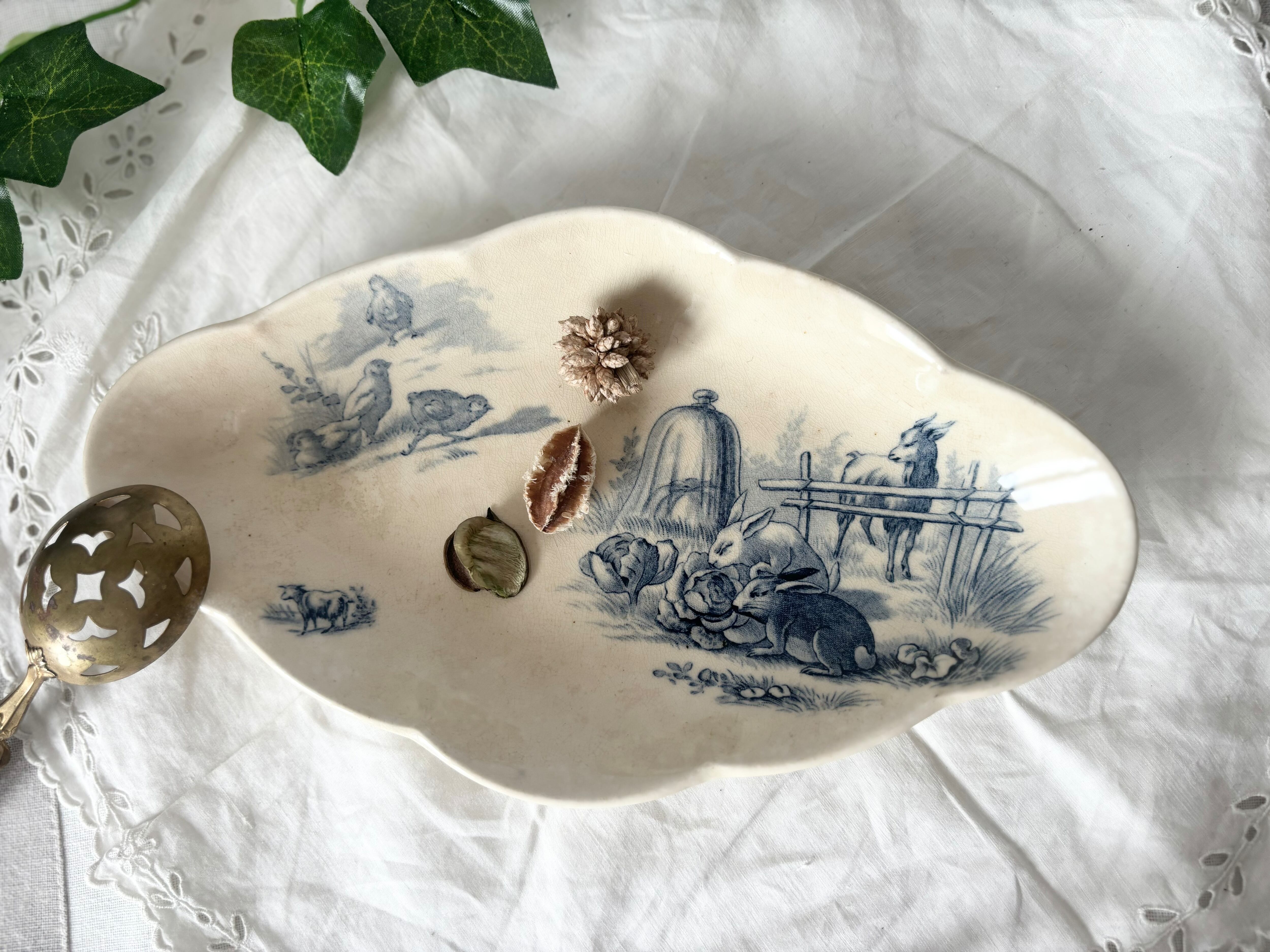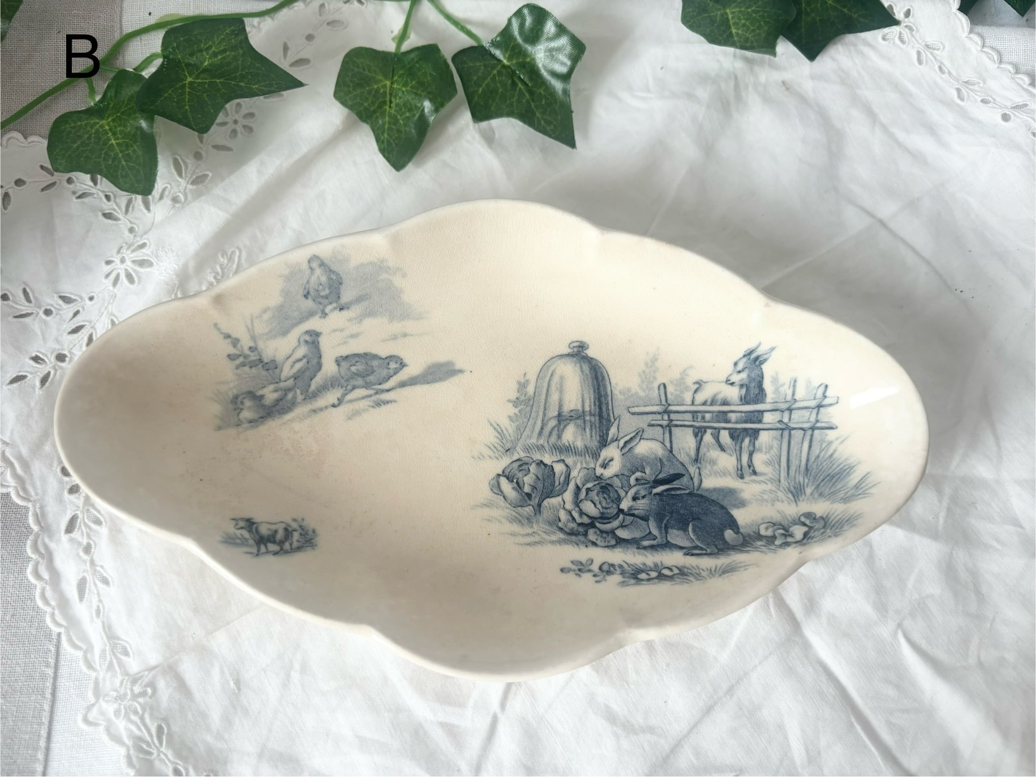 B: Terre de fer / Rustic / ravier / France / 19 Centuries / Antique / vintage / blue / rabbit birds /テールドフェール / ラヴィエ / 青 / フランス/ アンティーク