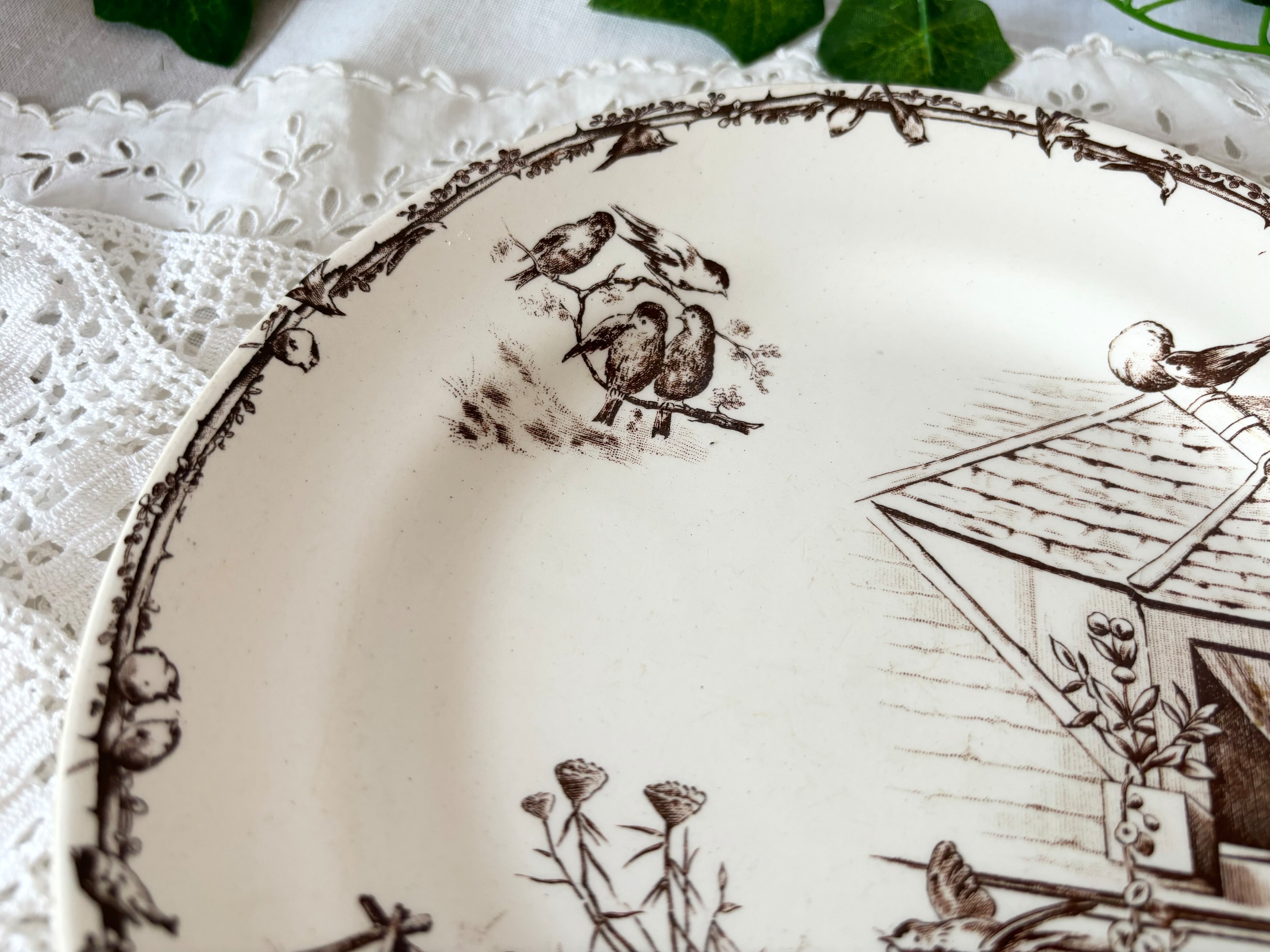 U様お取り置き / D: Terre de Fer / 窓辺のリースと小鳥達 /H.B. & Cie Choisy-le-Roi / Picture plate birds / French antique / シュワジールロワ / 絵皿