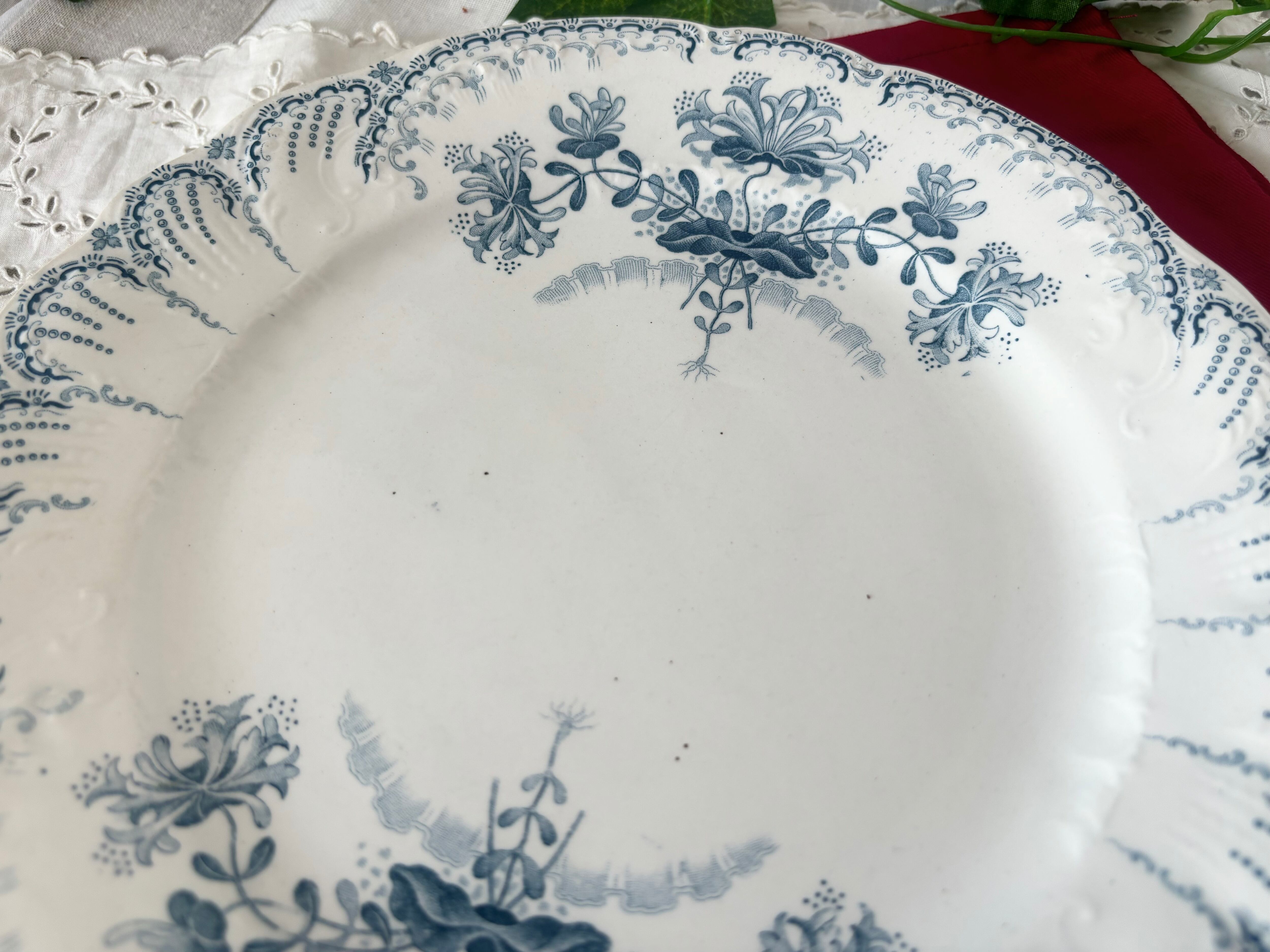 アイテムのコンディションとして、お皿の表面に小さなカトラリー傷と小さな鉄粉のような点々が数カ所確認できます。お皿を横から見ると、縁に小さな傷があり、ザラついた部分もございますが、お色味も綺麗で、アンティークとして、状態の良いお品です。