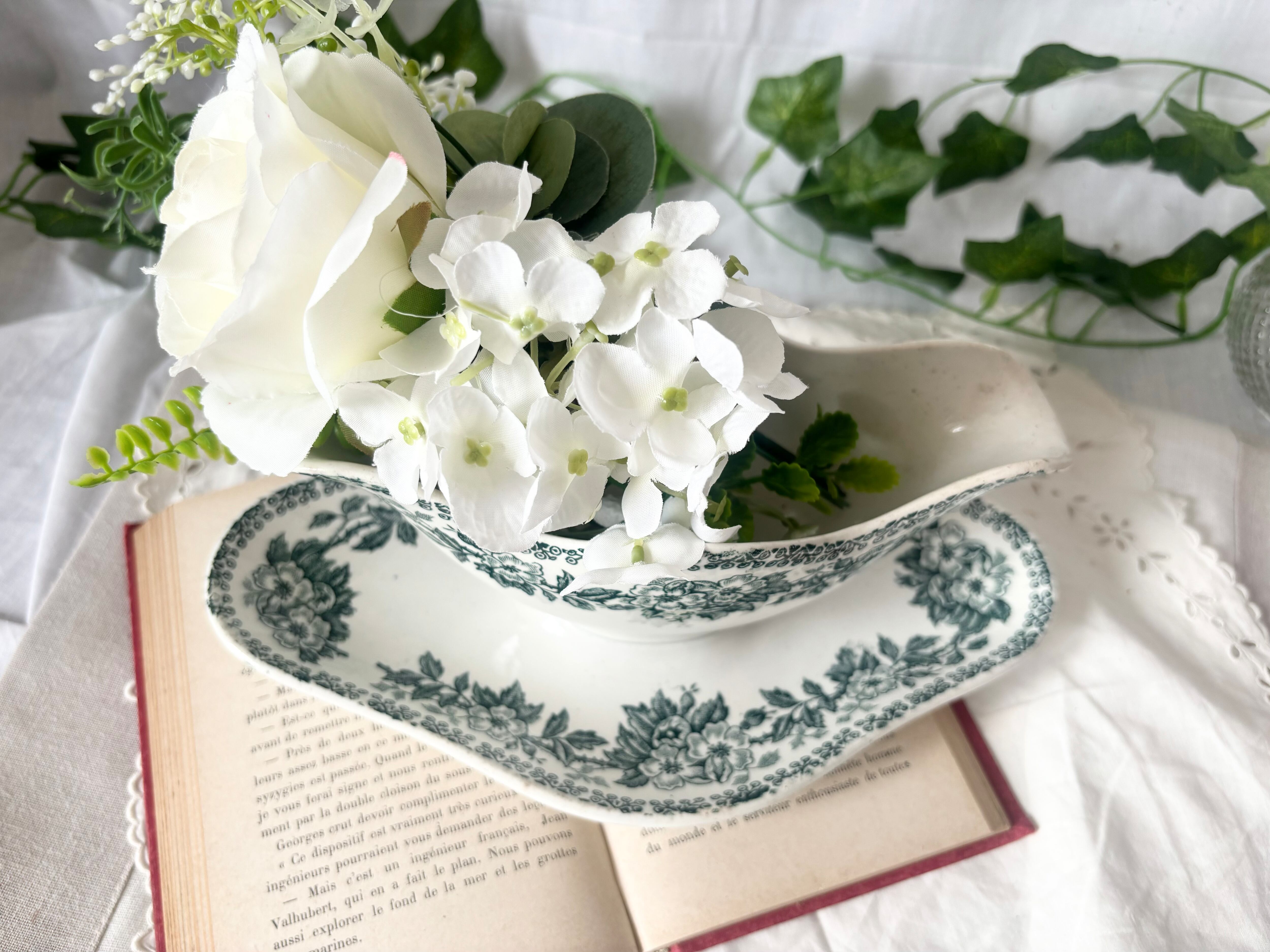 20世紀初頭、フランスのSaint Amand(サンタマン)より、緑のグレービーボートをご紹介いたします。