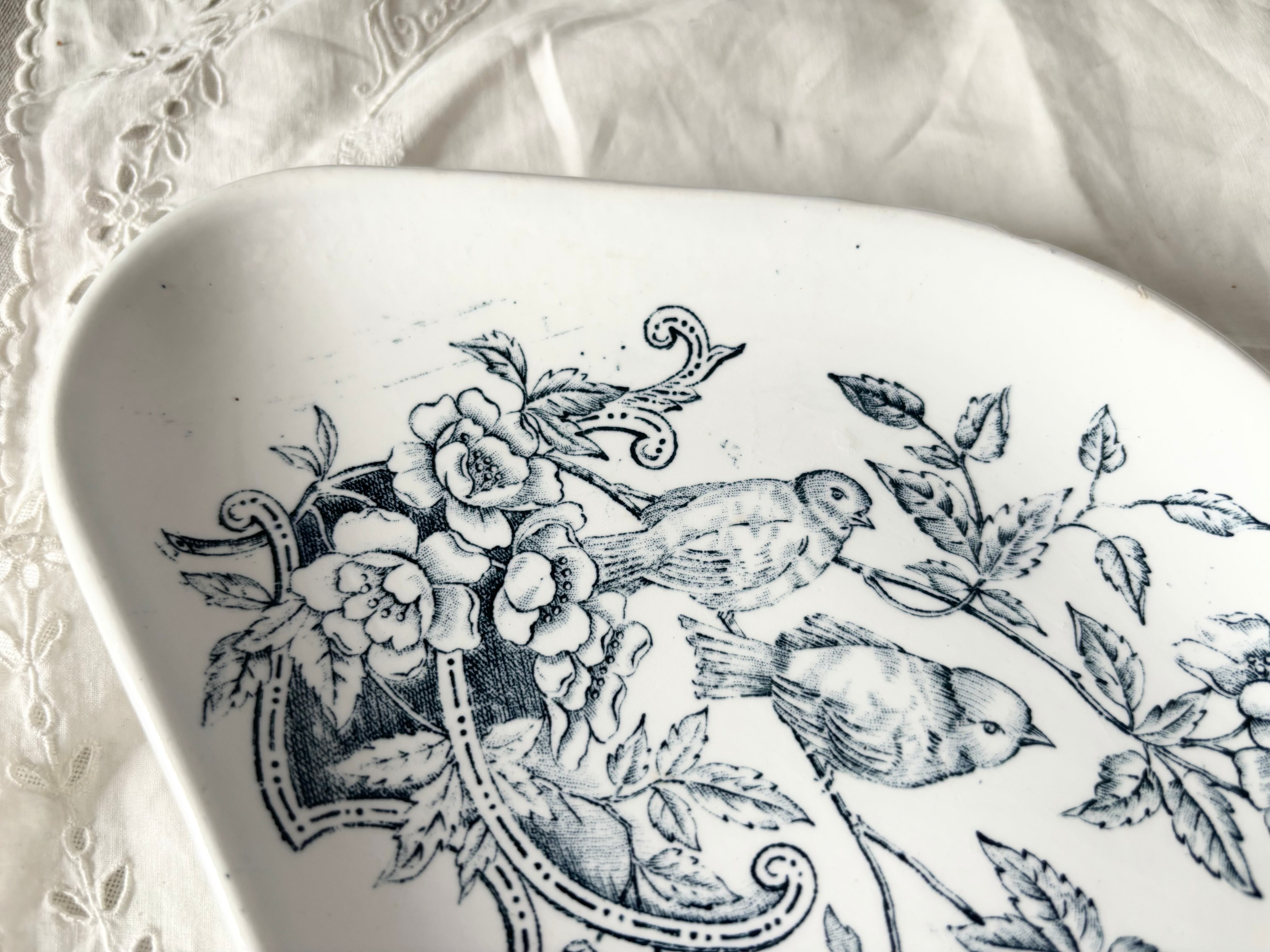B: サンタマン / Saint Amand / ravier / 2birds and flowers /blue / France / Antique / vintage / ラヴィエ / 鳥と花 / 青 / フランス/ アンティーク