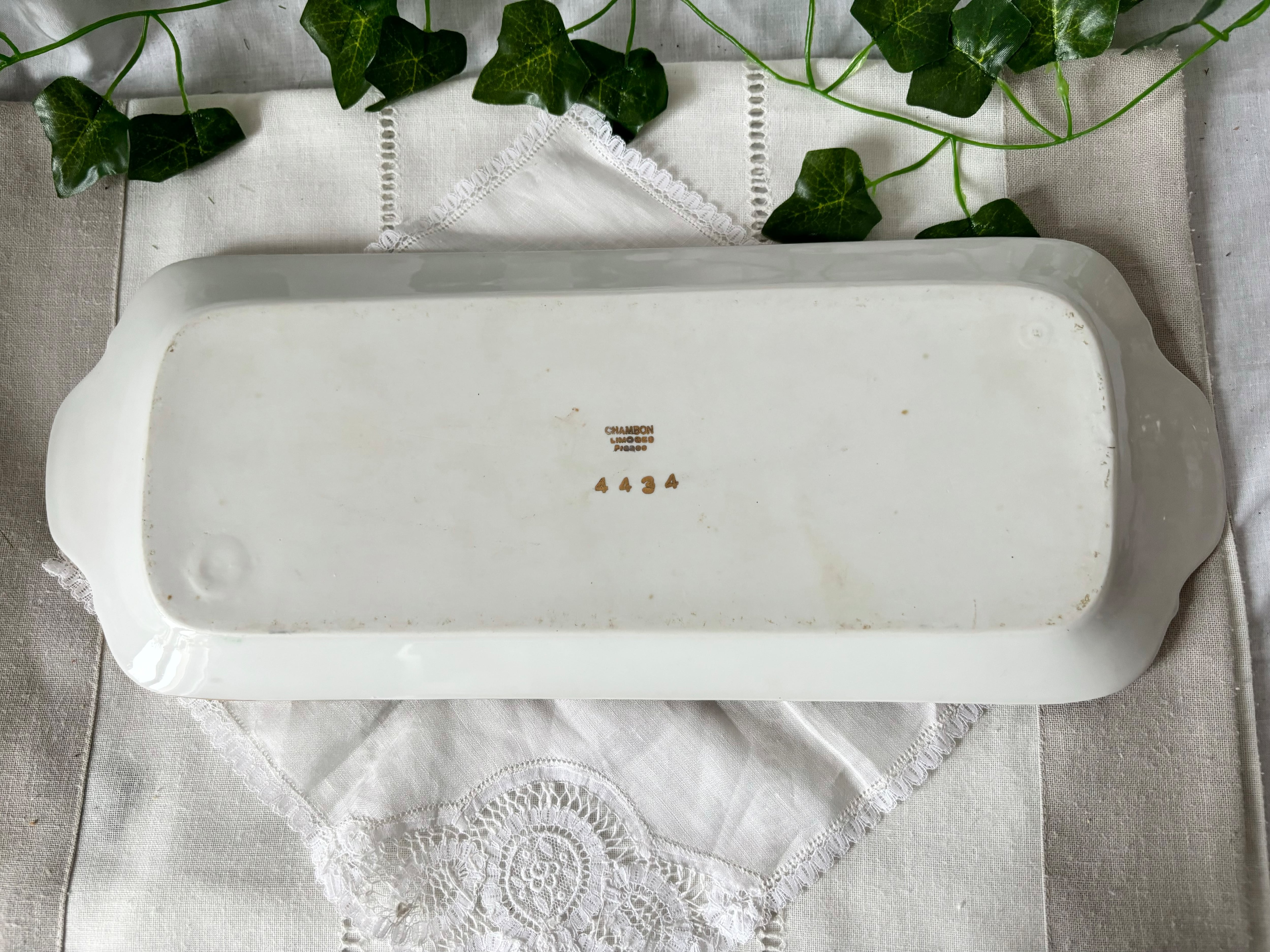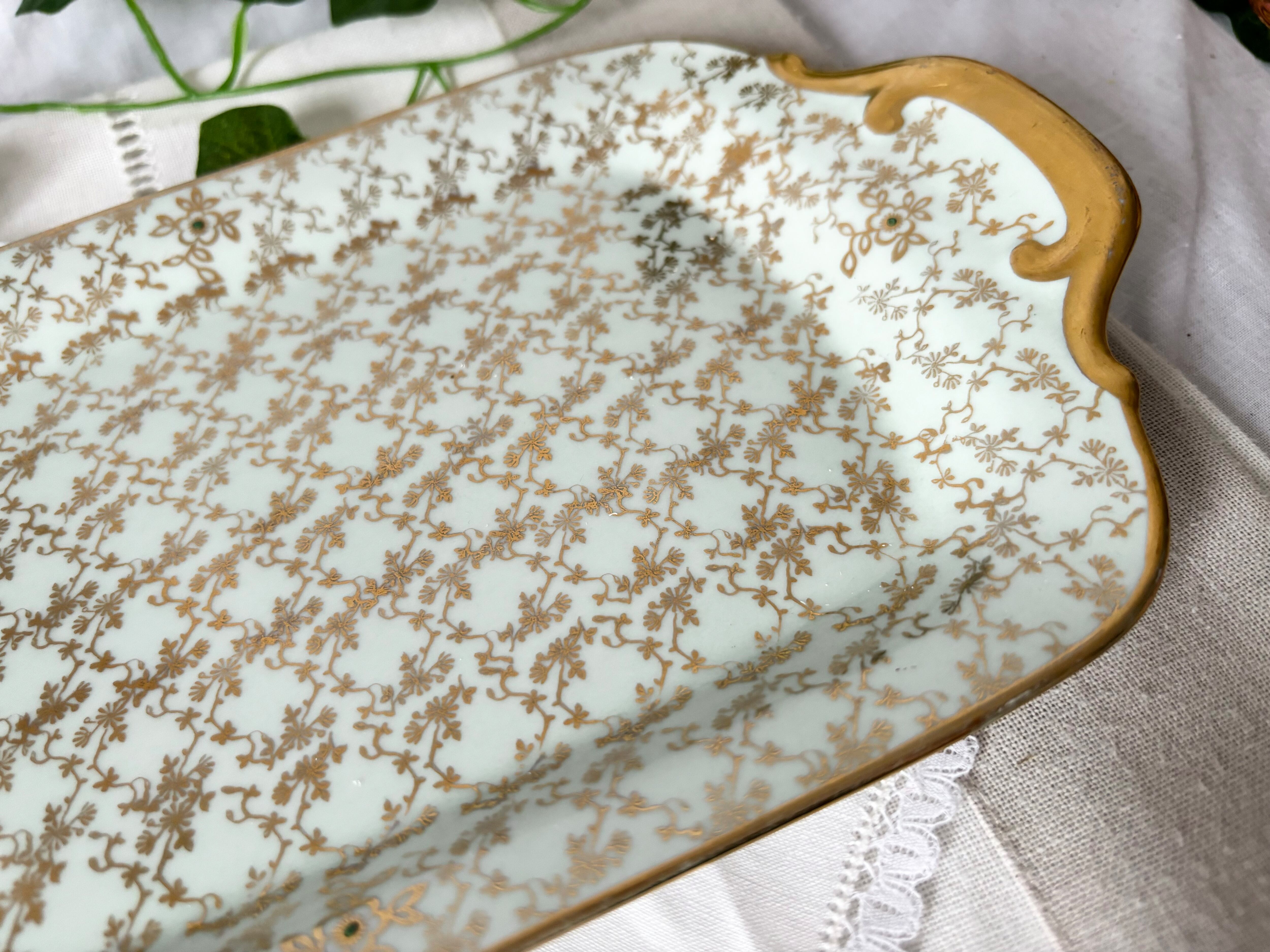 Limoges(リモージュ) / セラミックトレイ / ケーキプレート / サンドイッチプレート / Chambon / ペパーミントグリーン / ゴールド / フランス / アンティーク/ ビンテージ / flower pattern /