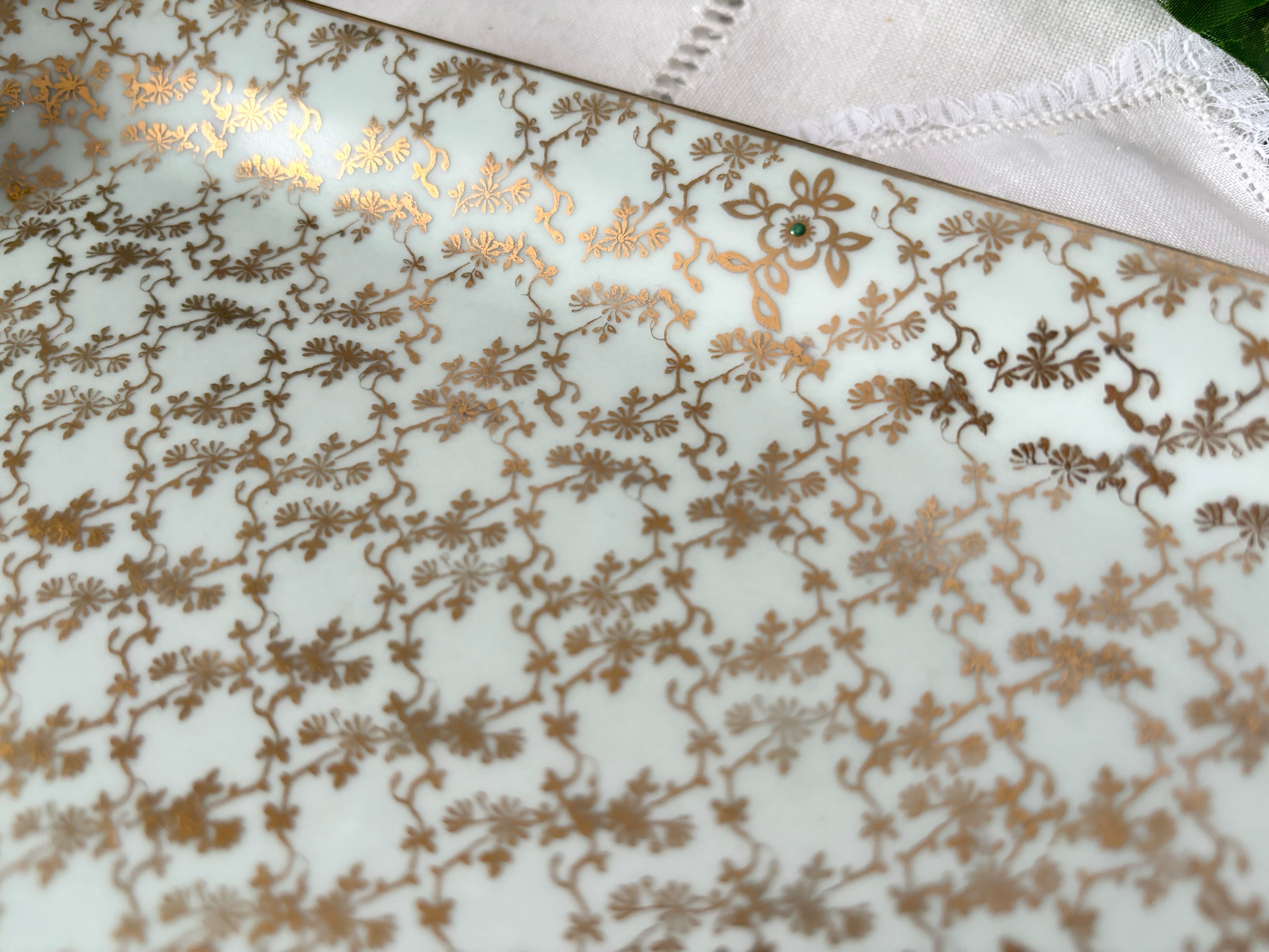 フランス、リモージュより、爽やかなペパーミントグリーンに、ゴールドカラーが散りばめられた、エレガントなセラミックトレイをご紹介いたします。