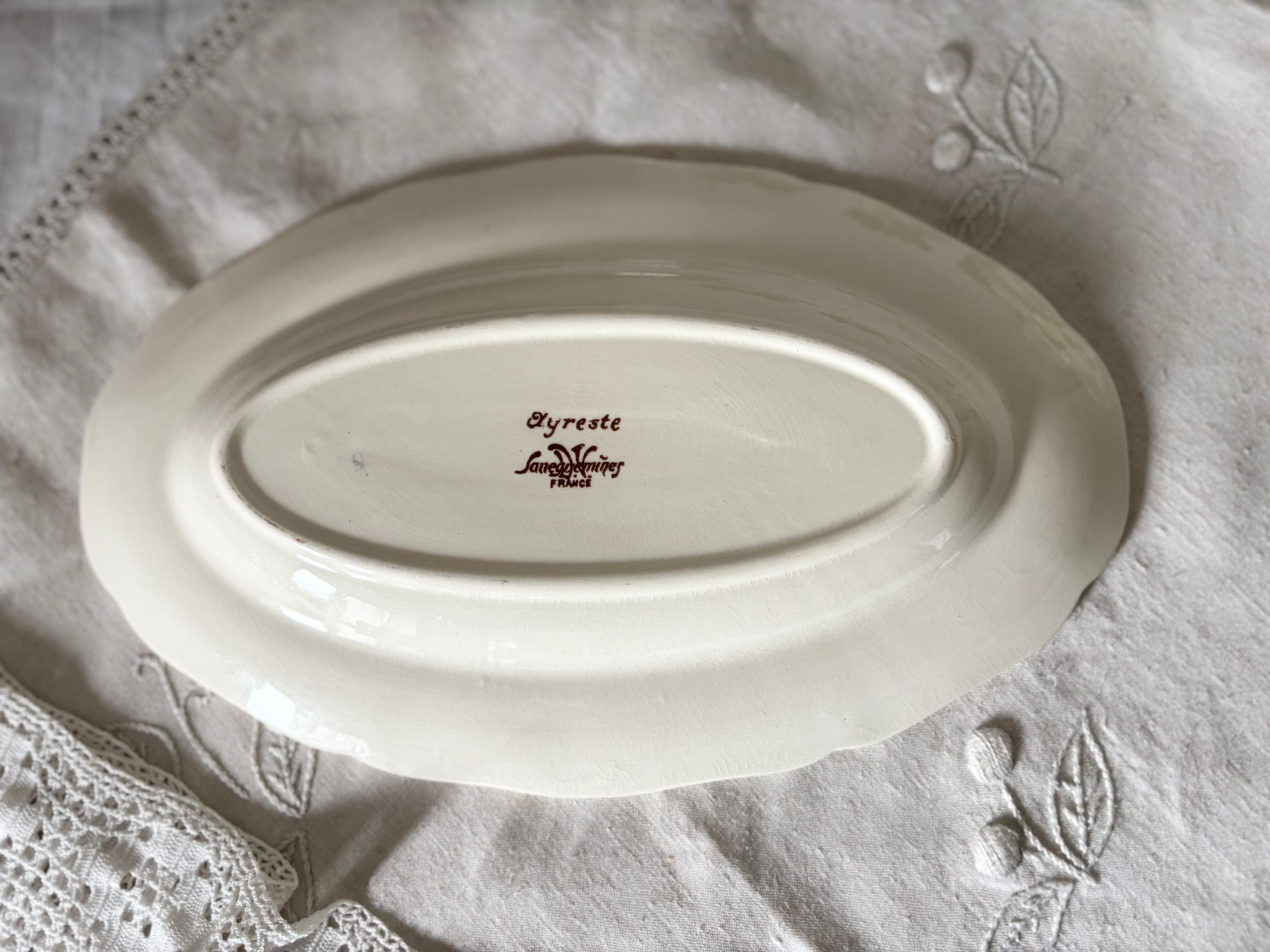 多少のかすれ途切れを伴っていますが、裏面には「Agreste Sarreguemines FRANCE」とモノグラムのバックスタンプが残っており、インクの濃淡は製造時の押印ムラによるものです。