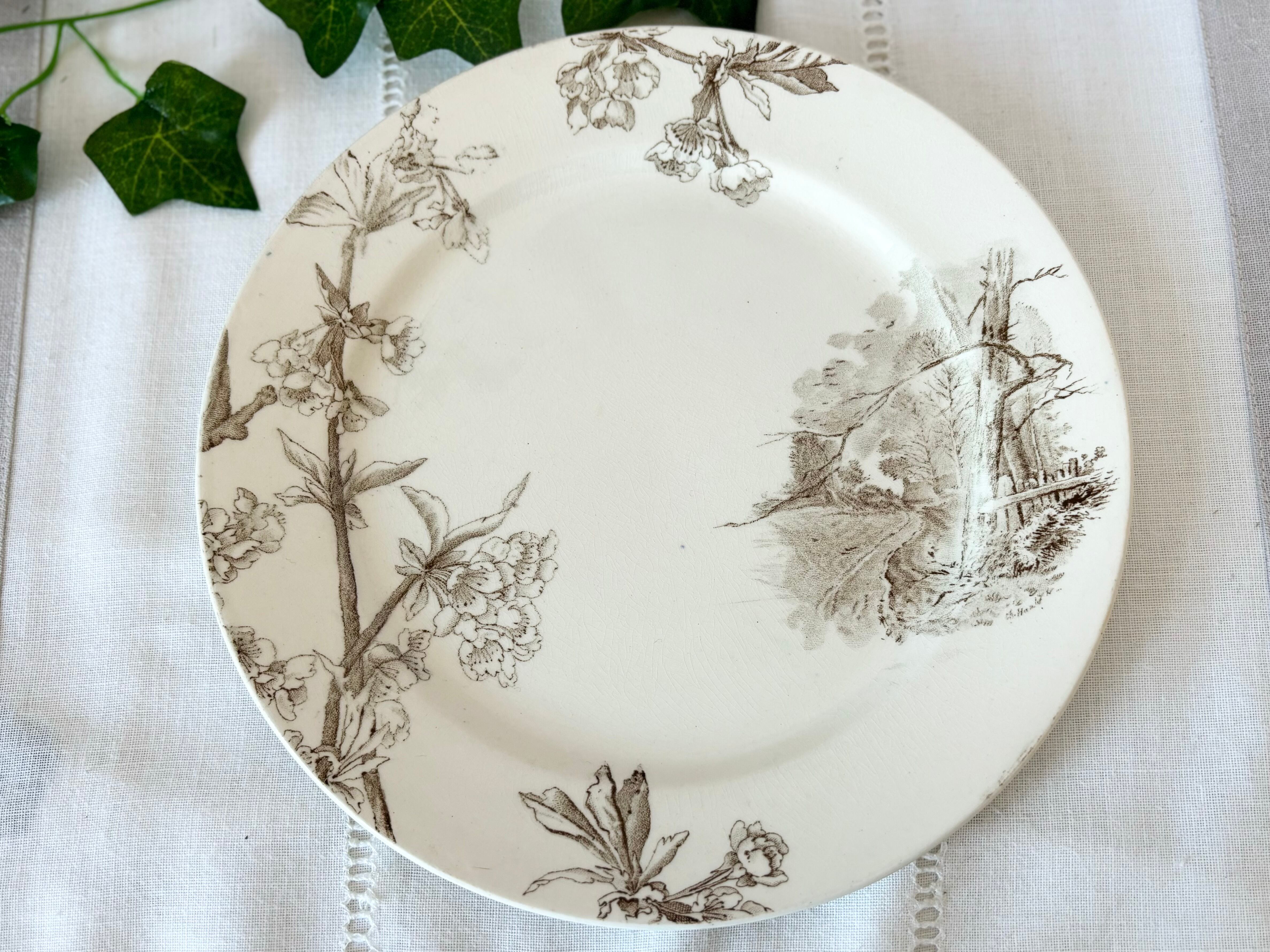 19世紀末のフランス、Creil et MontereauのCERISIER(桜)シリーズより、ブラウンのディナープレートをご紹介いたします。