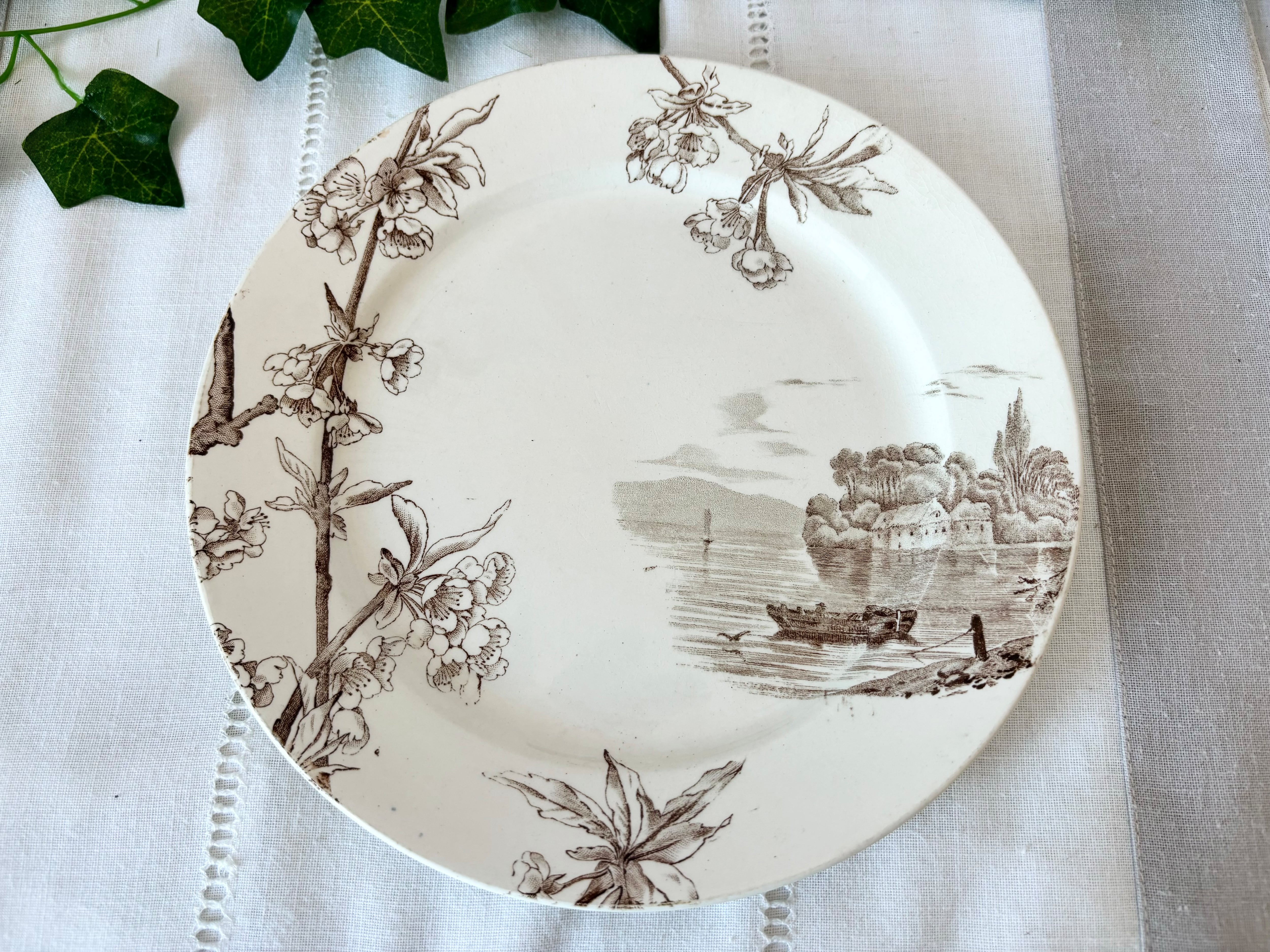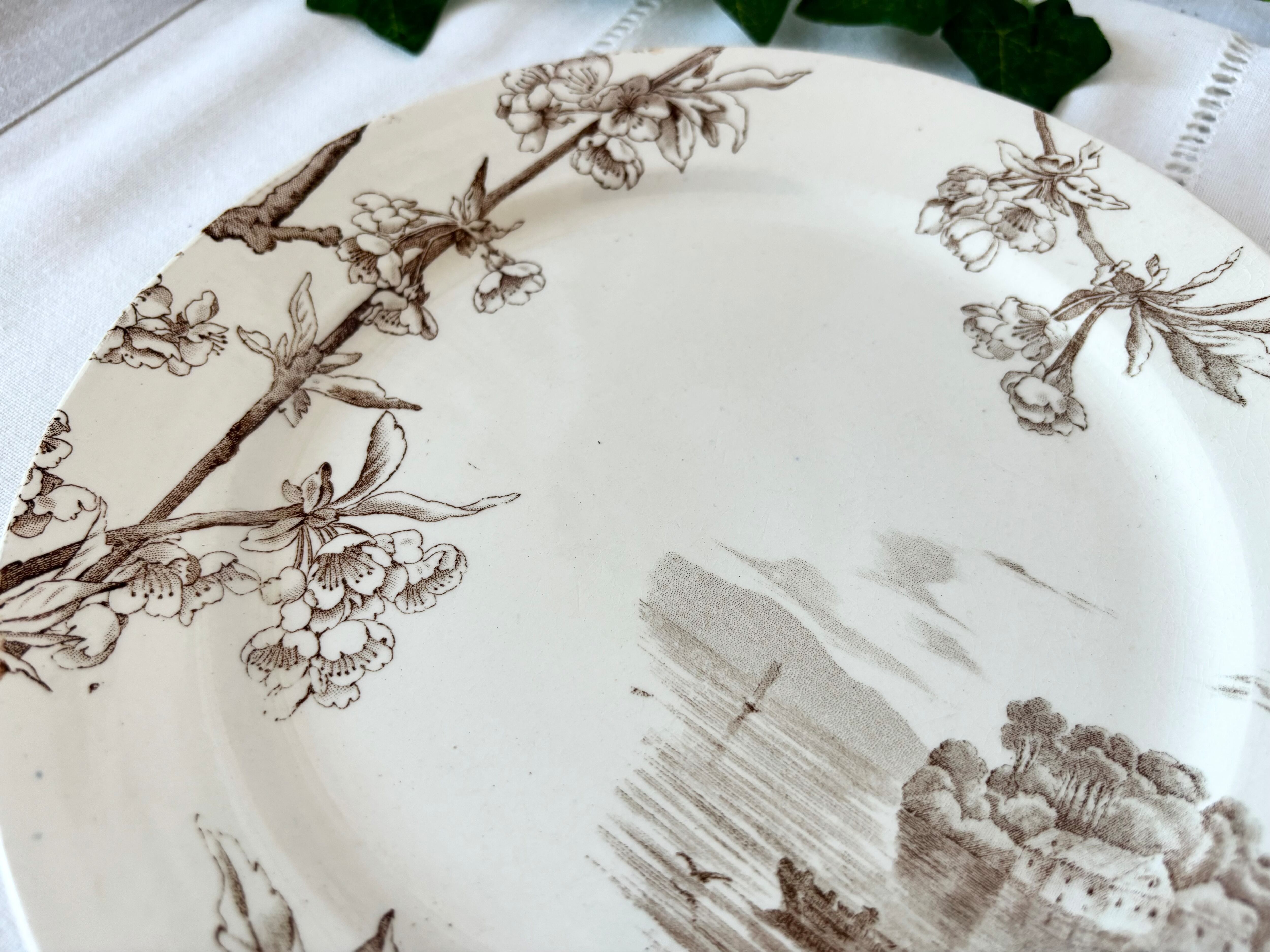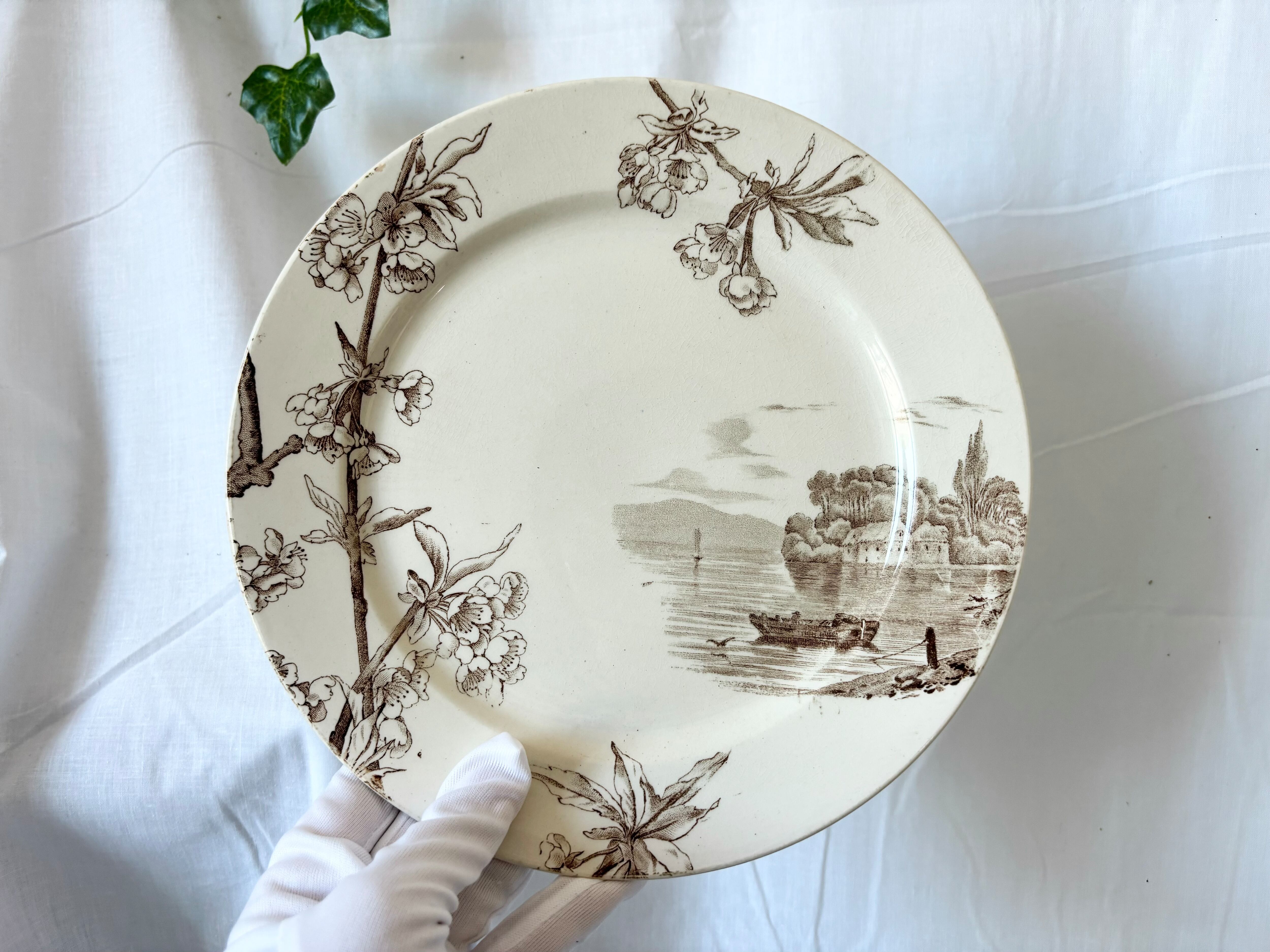 19世紀末のフランス、Creil et MontereauのCERISIER(桜)シリーズより、ブラウンのディナープレートをご紹介いたします。